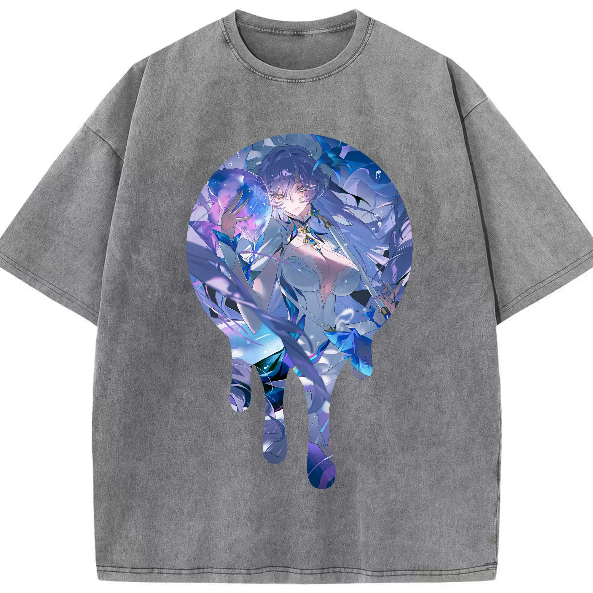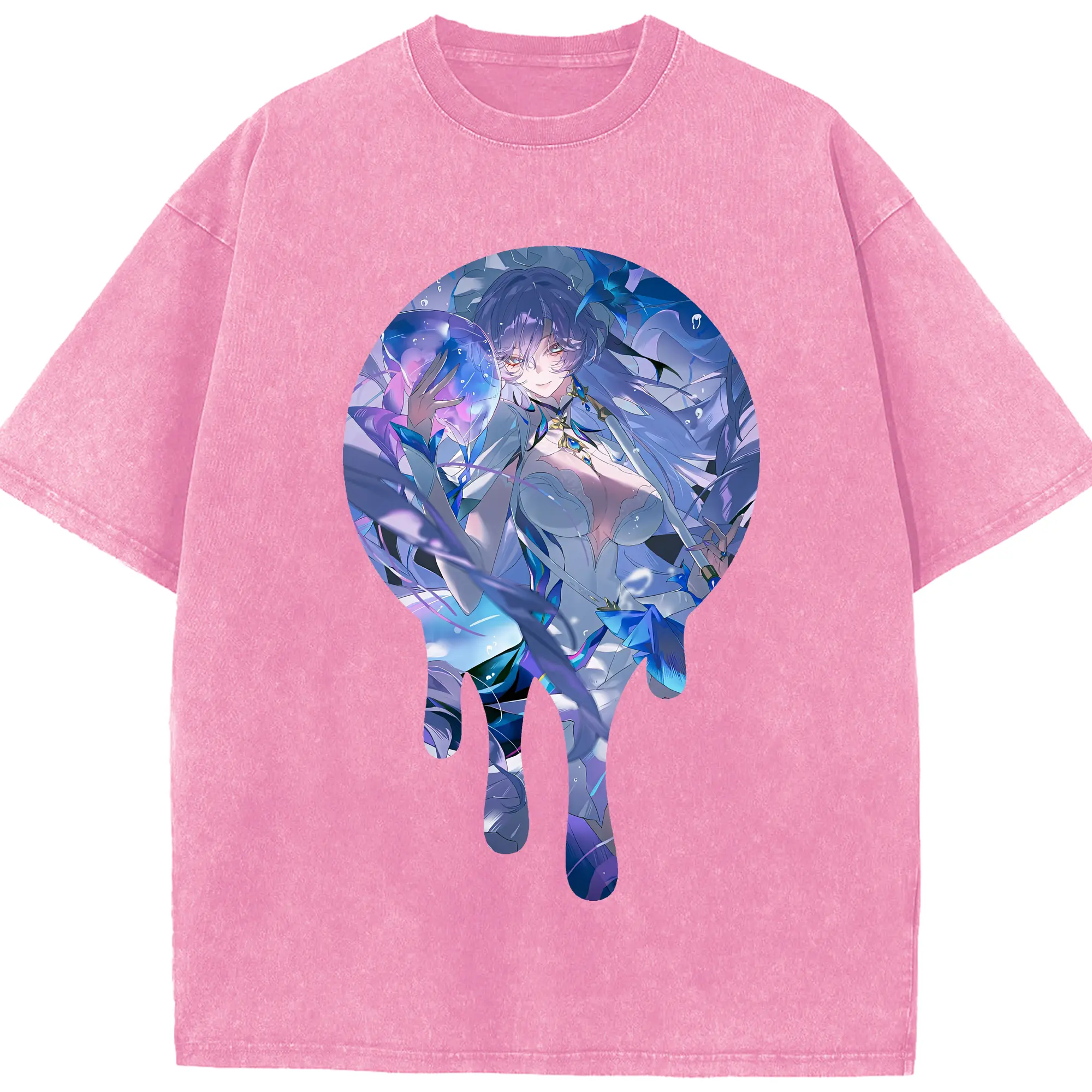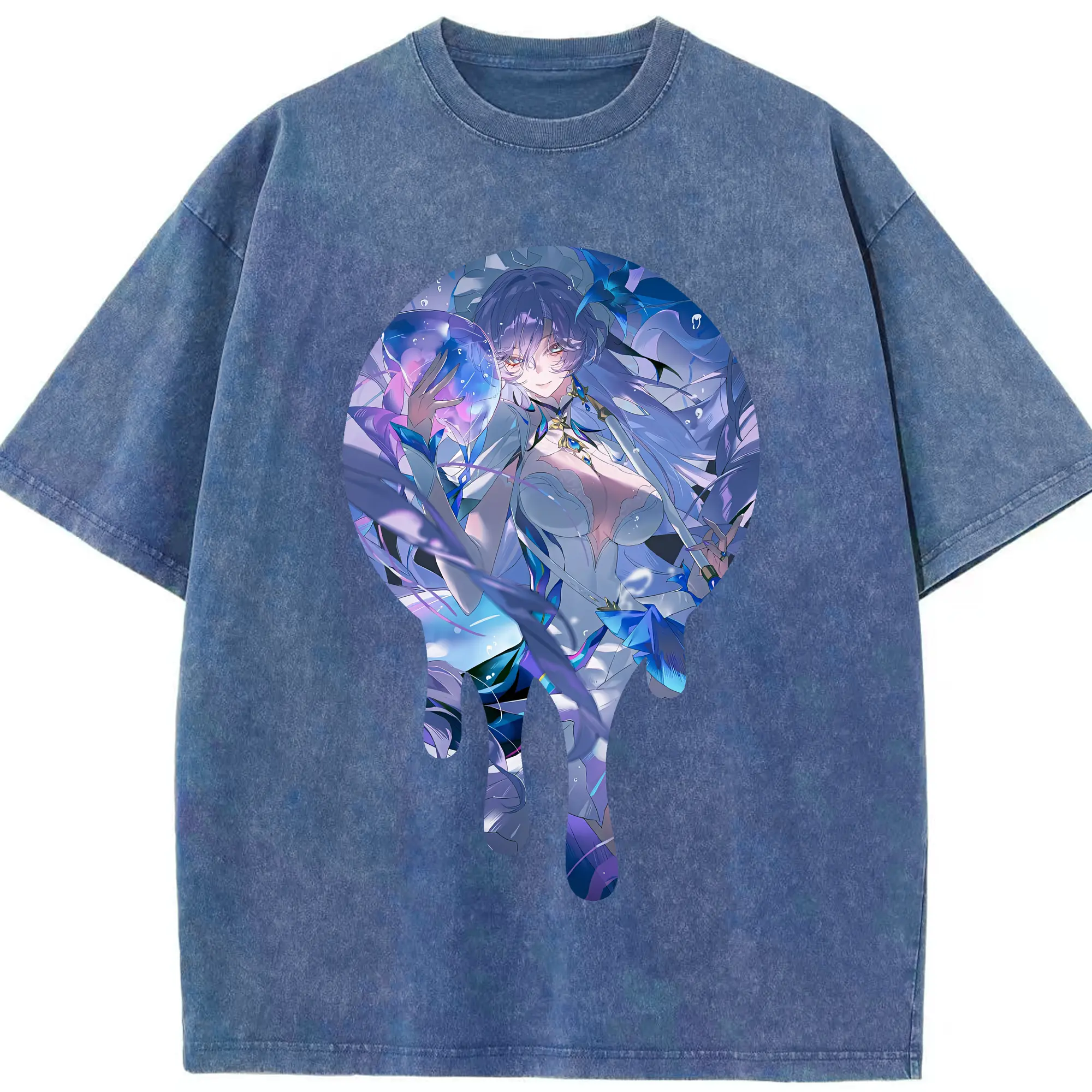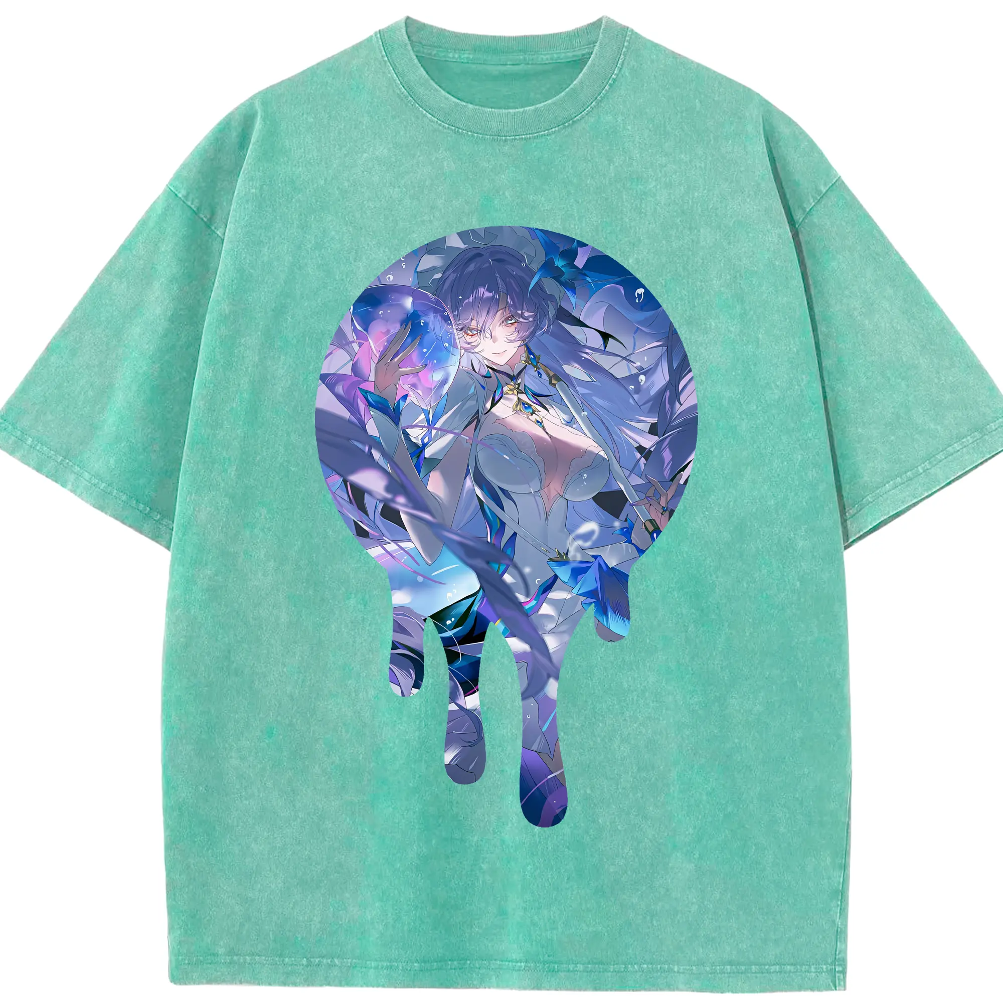 原 神 グッズ フリーナ - 綿100% ヴィンテージ風 半袖Tシャツ ・ フロントプリント ・ 柔らか肌触り ・ 通気性 快適 ・ スポーツ カジュアル 外出用