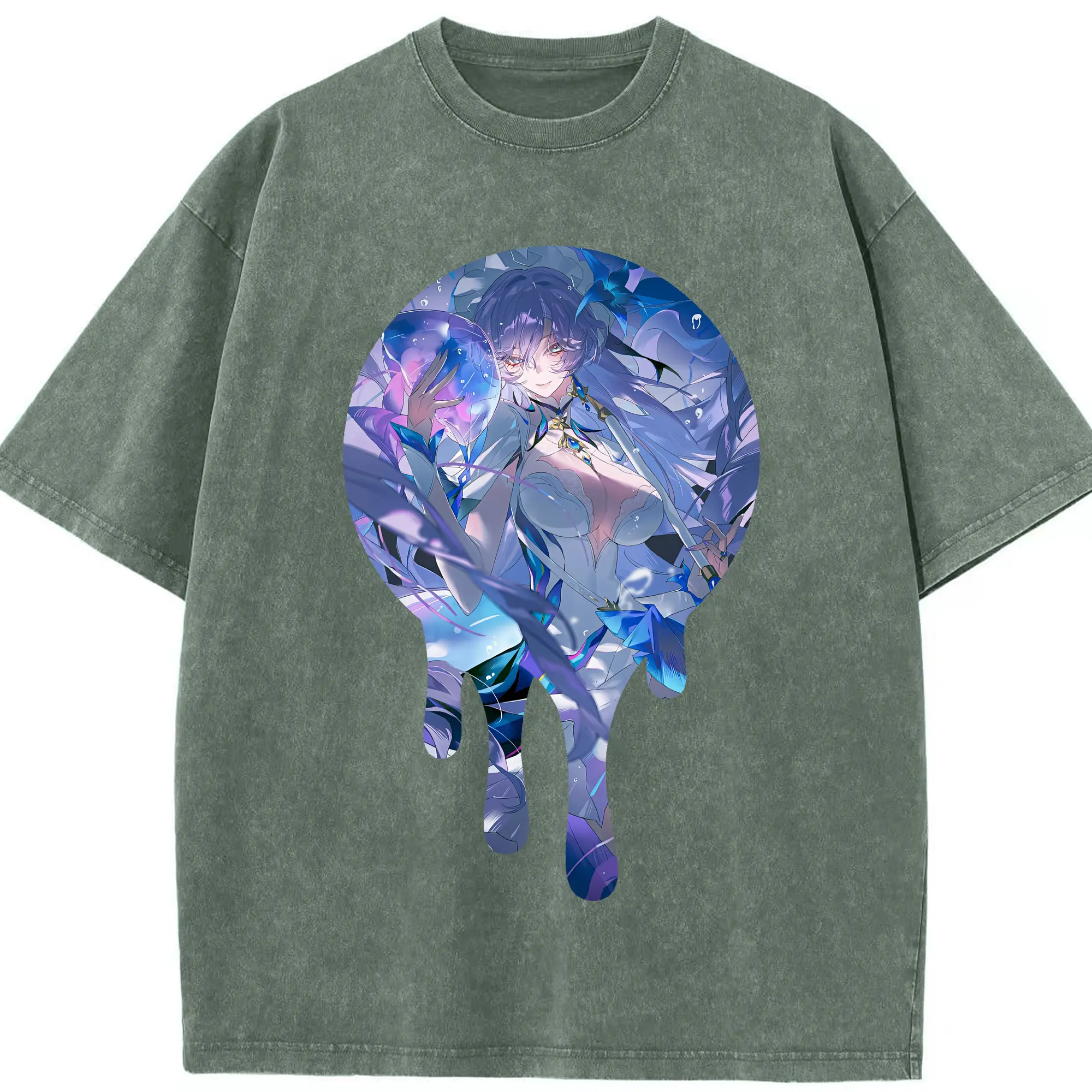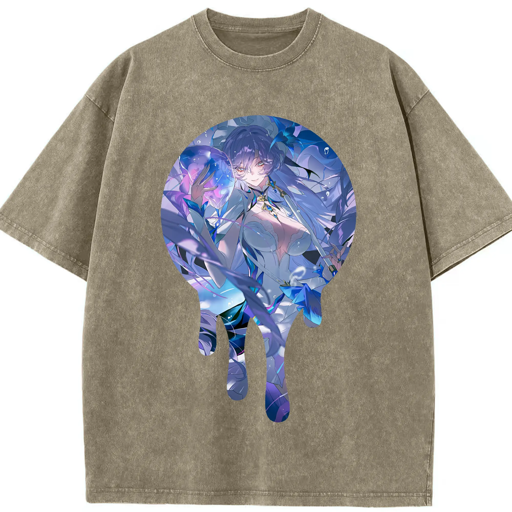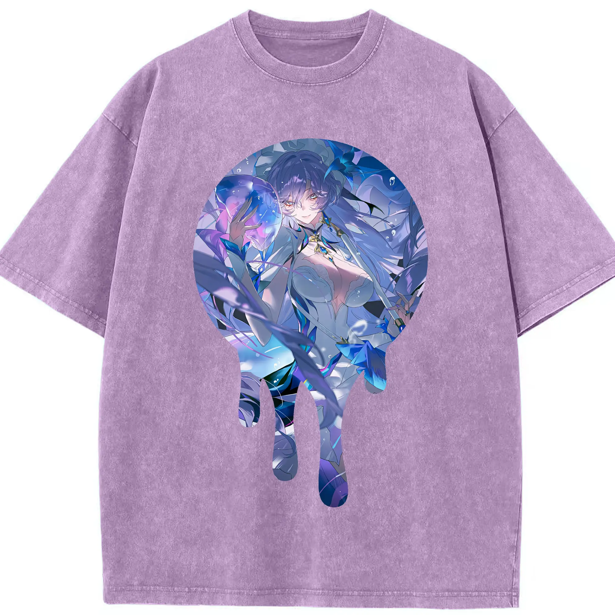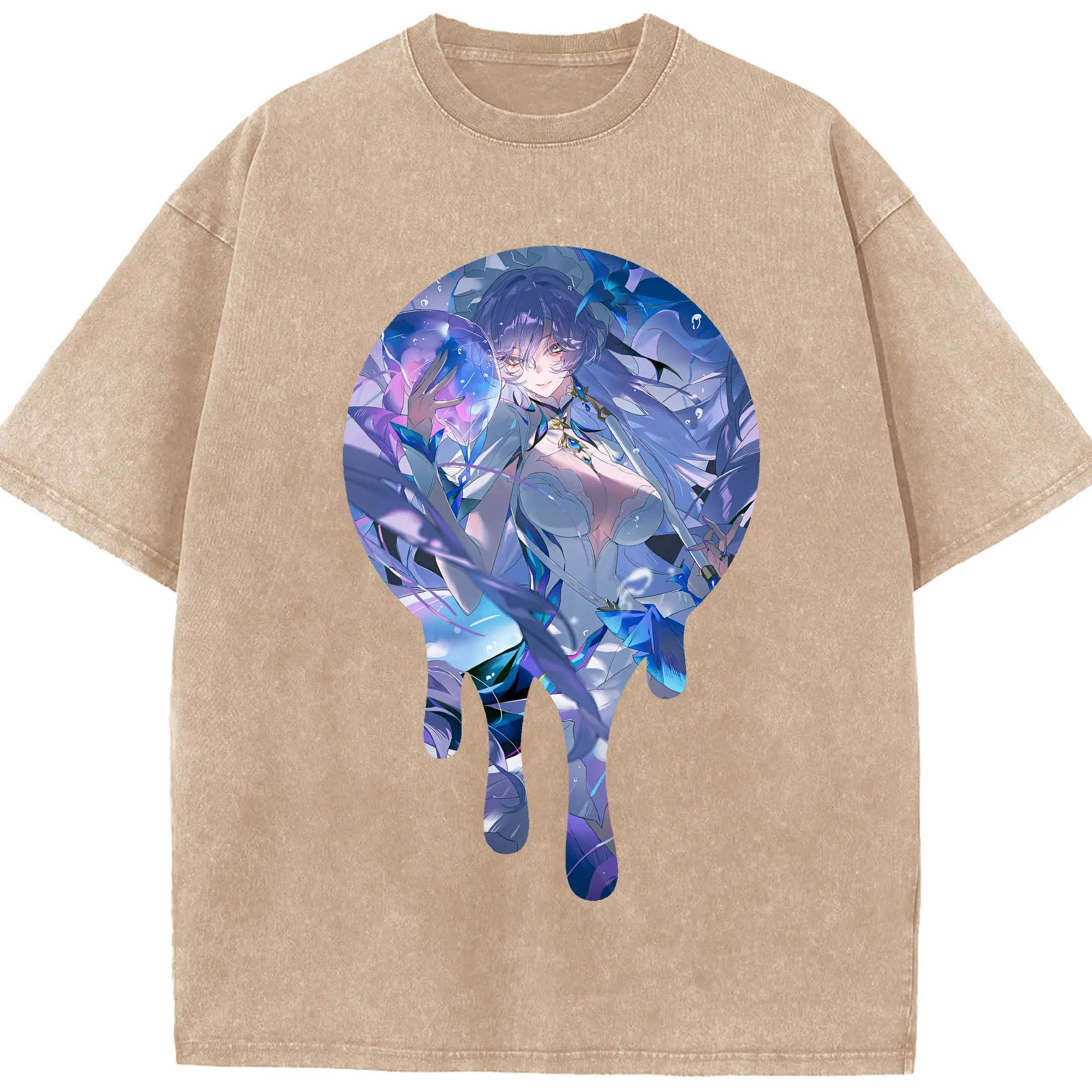 原 神 グッズ フリーナ - 綿100% ヴィンテージ風 半袖Tシャツ ・ フロントプリント ・ 柔らか肌触り ・ 通気性 快適 ・ スポーツ カジュアル 外出用