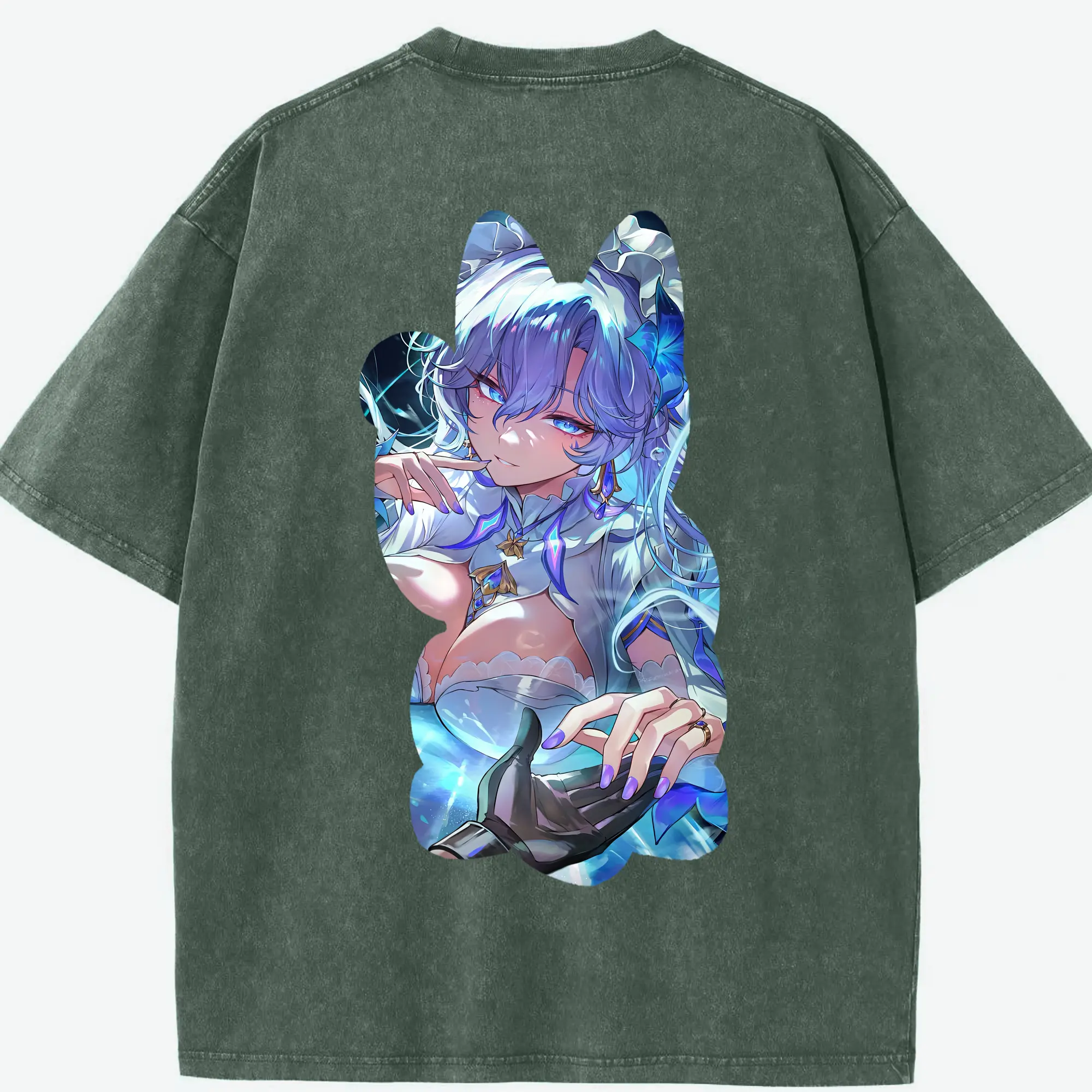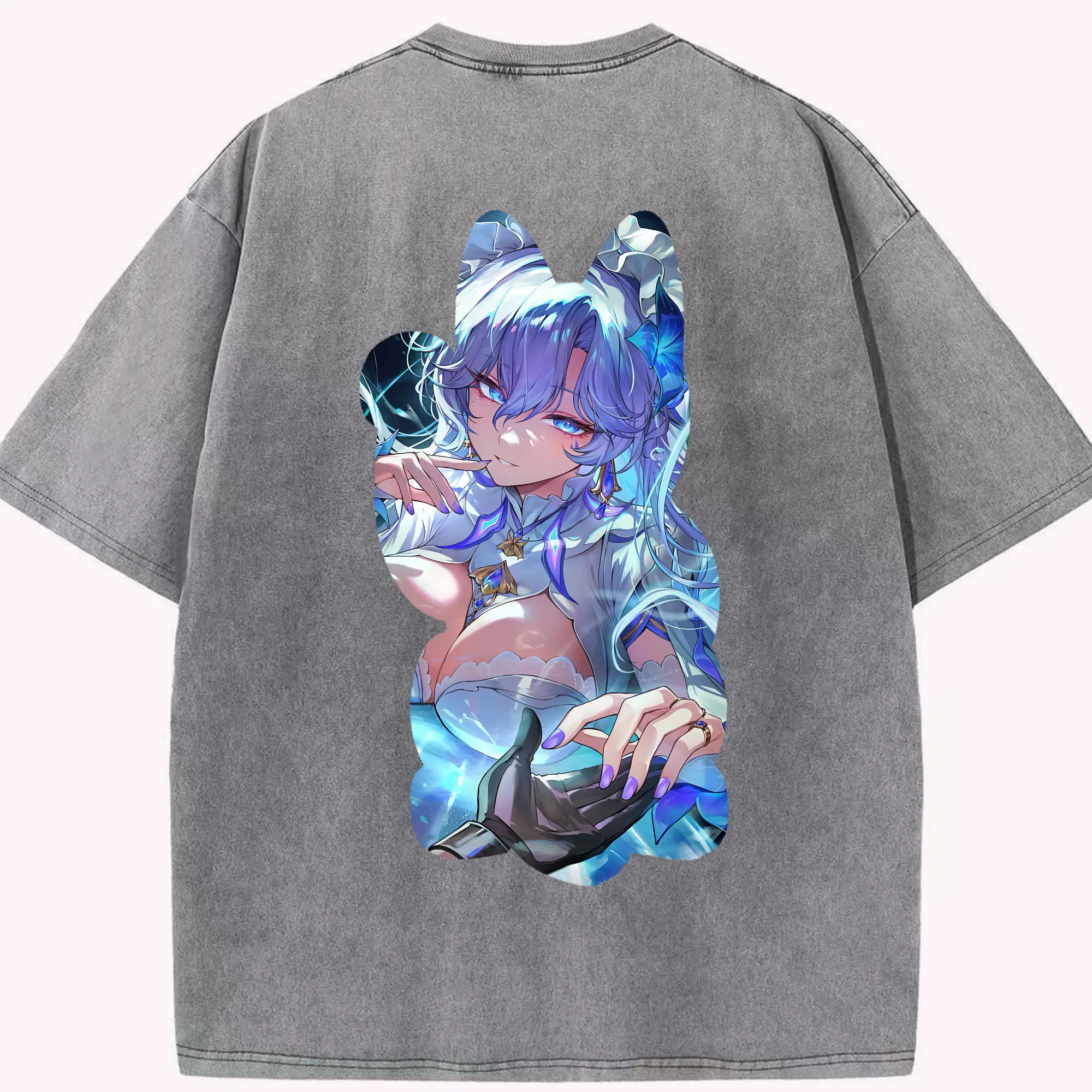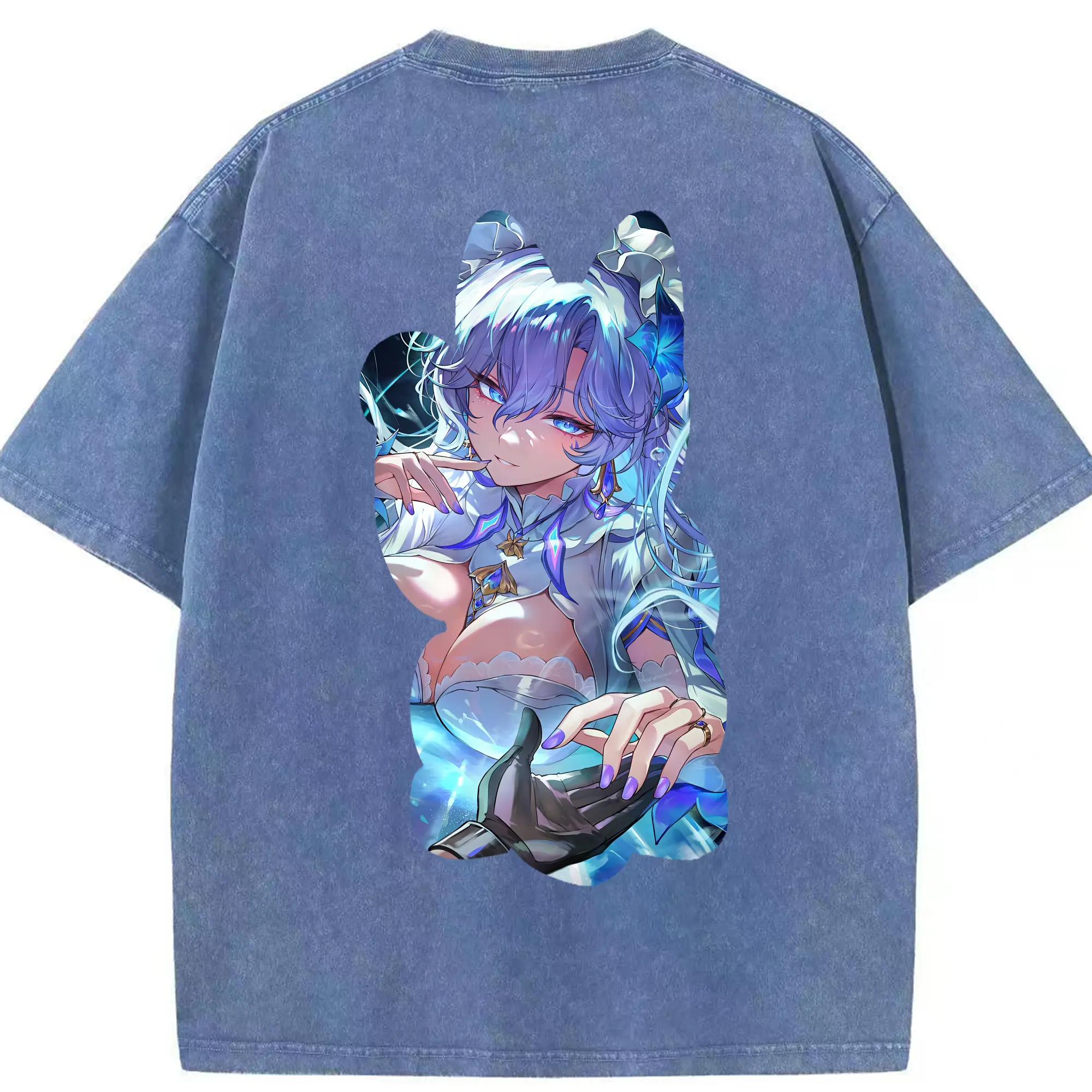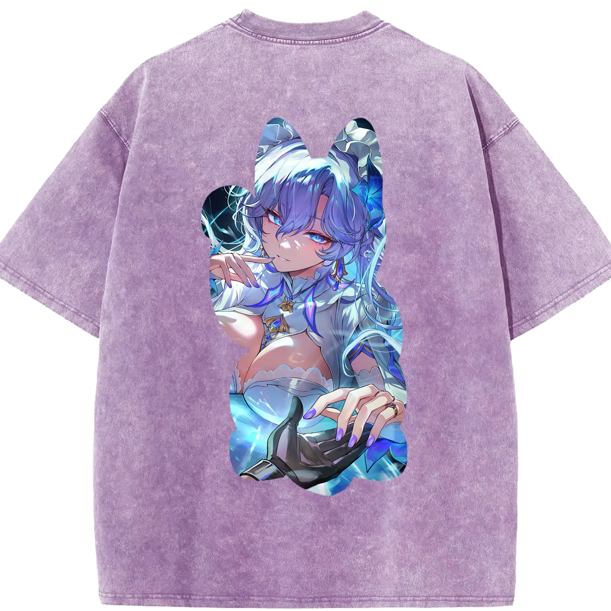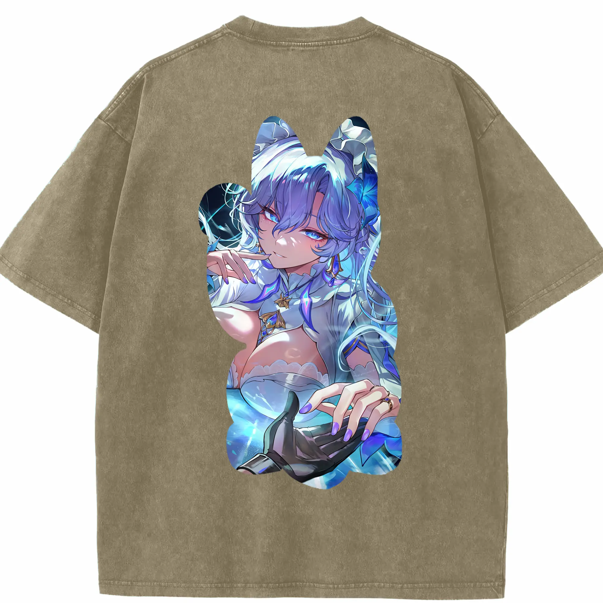 鳴潮 グッズ カンタレラ - 綿100% ヴィンテージ風 半袖Tシャツ ・ フロントプリント ・ 柔らか肌触り ・ 通気性 快適 ・ スポーツ カジュアル 外出用