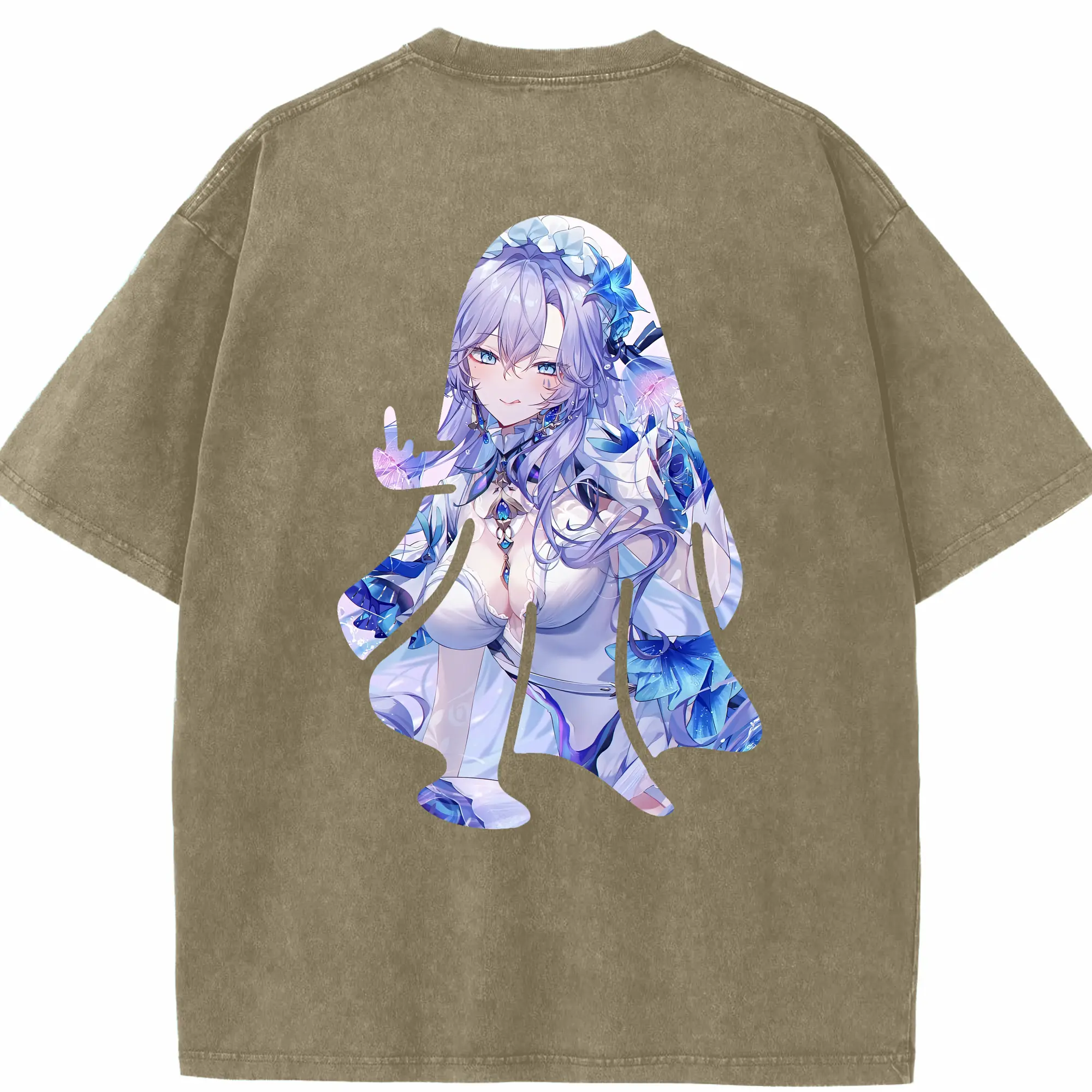 鳴潮 グッズ カンタレラ - 綿100% ヴィンテージ風 半袖Tシャツ ・ フロントプリント ・ 柔らか肌触り ・ 通気性 快適 ・ スポーツ カジュアル 外出用
