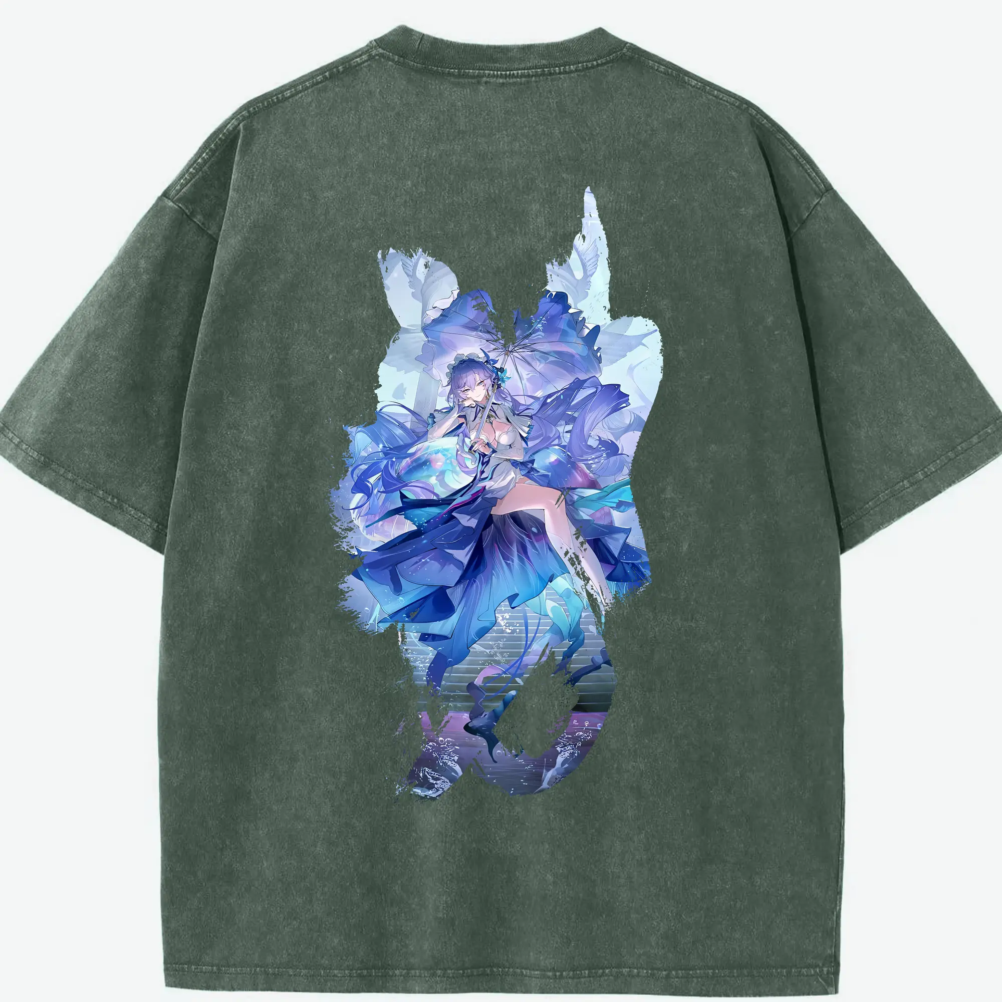鳴潮 グッズ カンタレラ - 綿100% ヴィンテージ風 半袖Tシャツ ・ フロントプリント ・ 柔らか肌触り ・ 通気性 快適 ・ スポーツ カジュアル 外出用