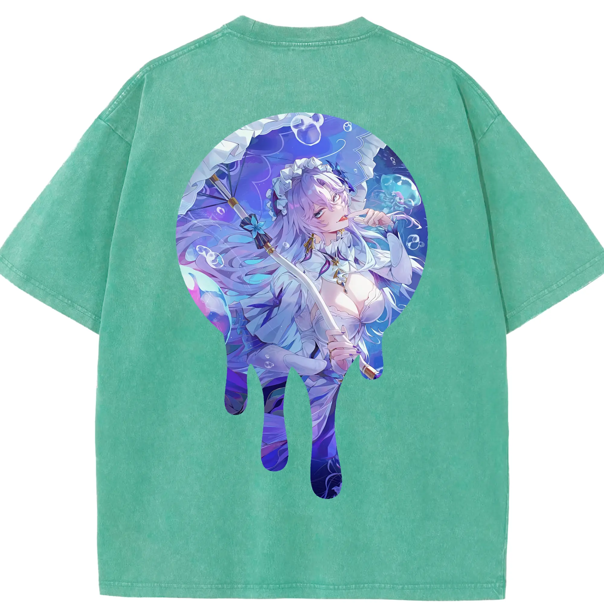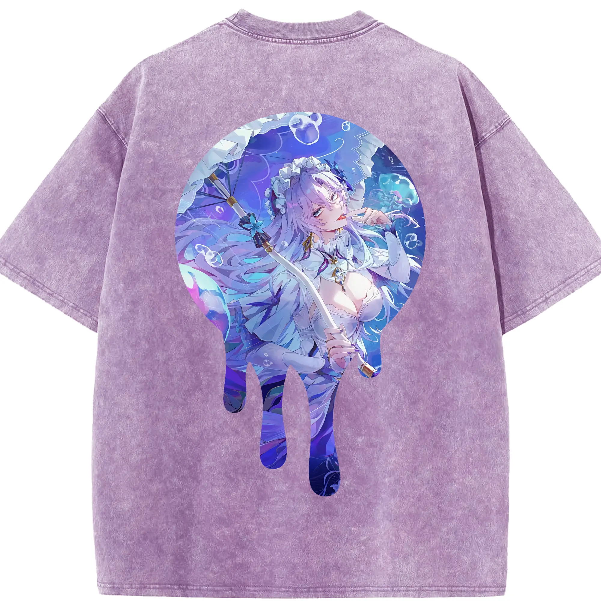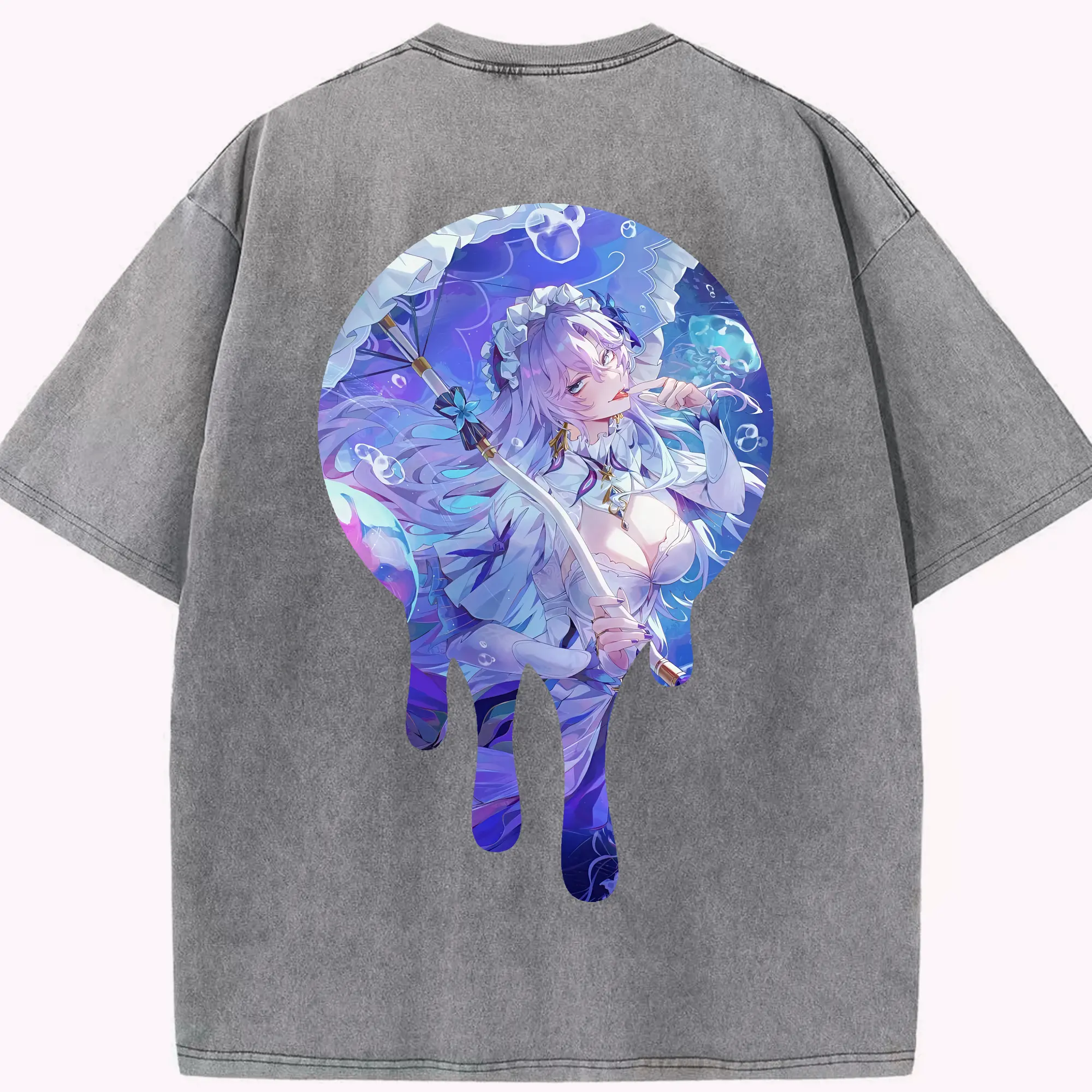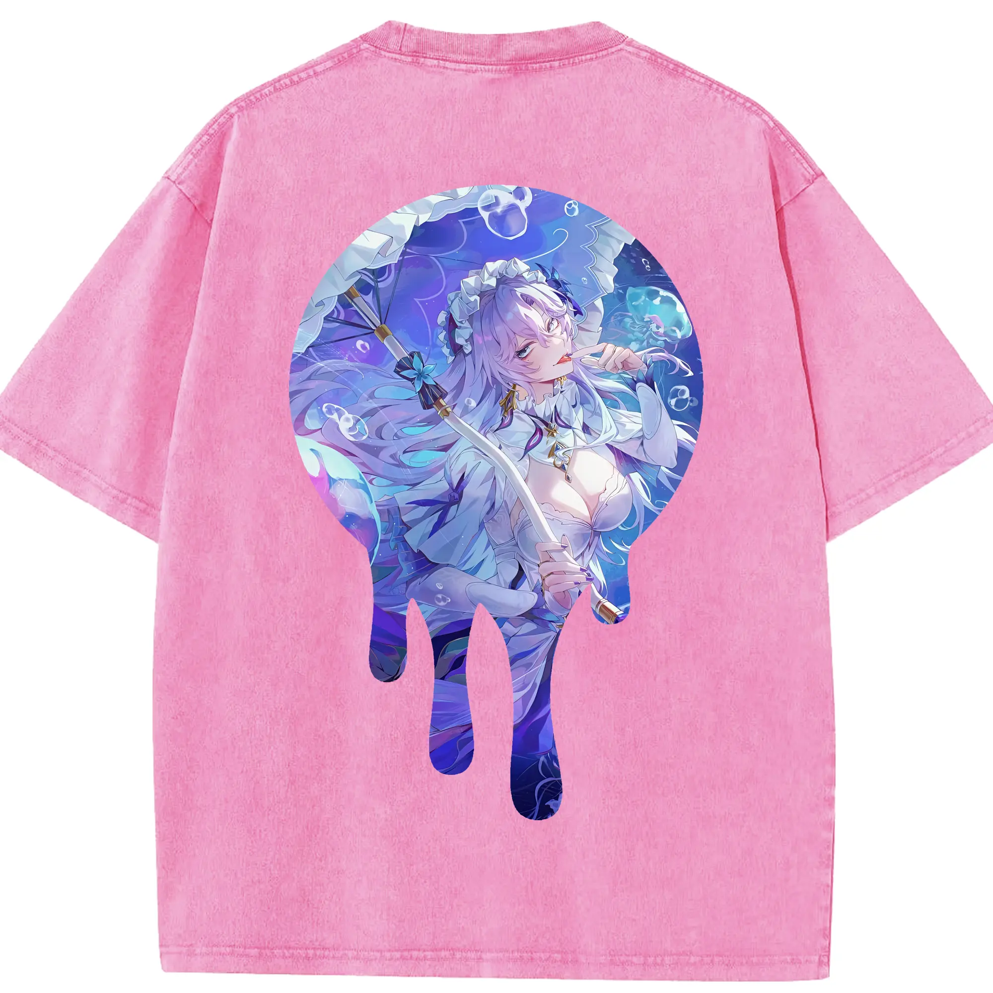 原 神 グッズ フリーナ - 綿100% ヴィンテージ風 半袖Tシャツ ・ 背面プリント ・ 柔らか肌触り ・ 通気性 快適 ・ スポーツ カジュアル 外出用