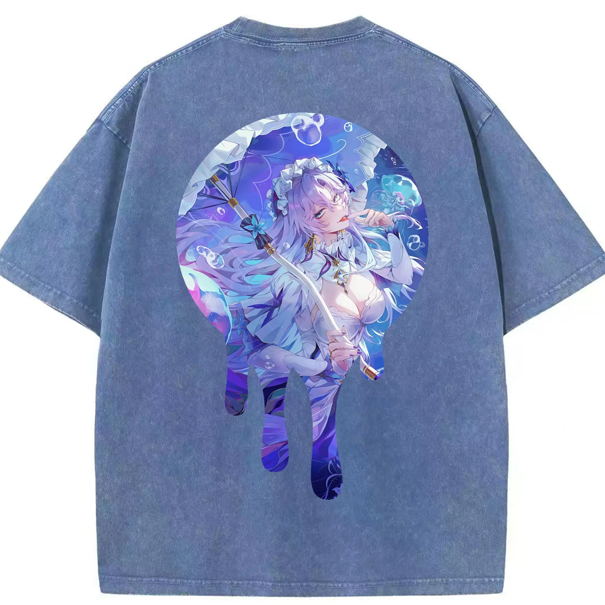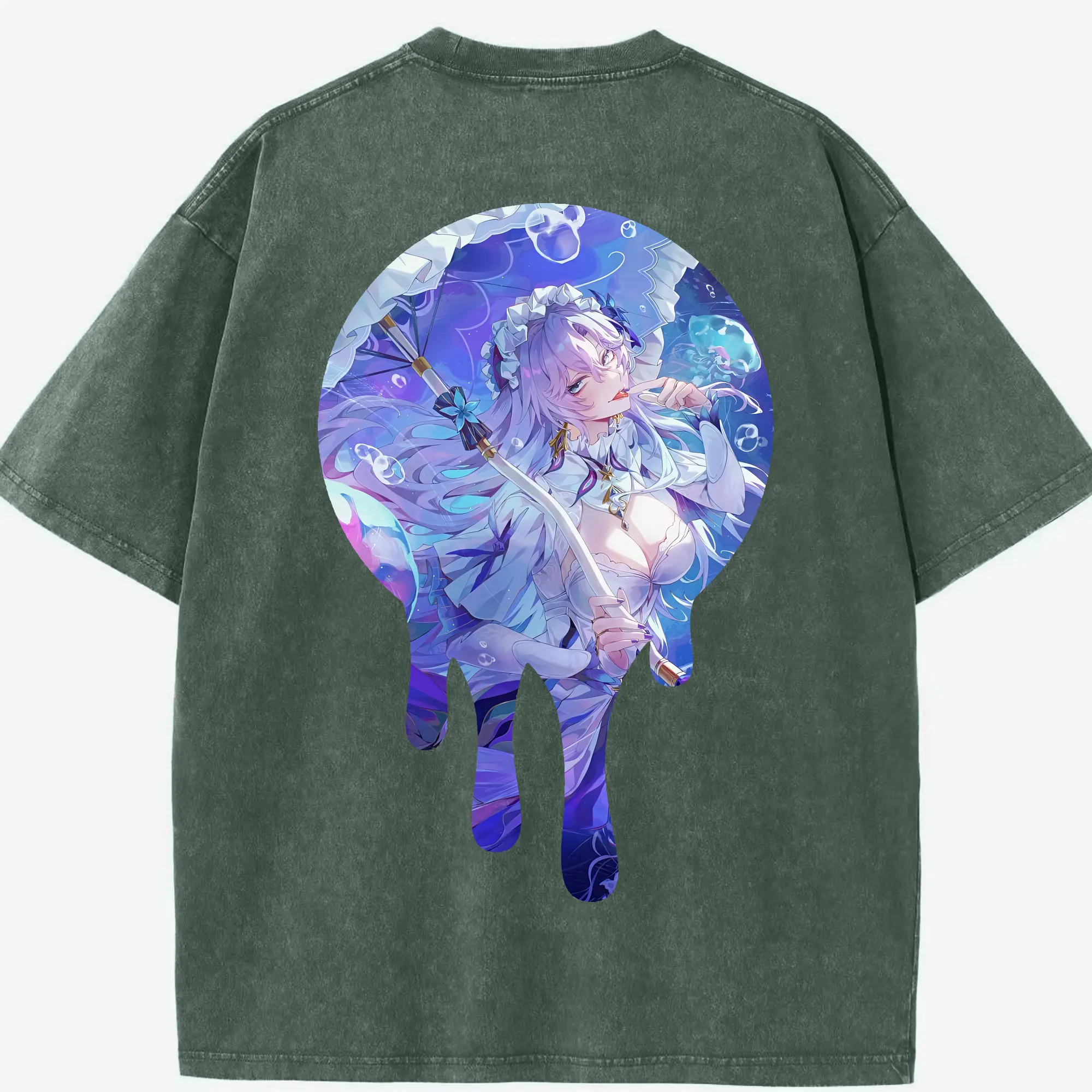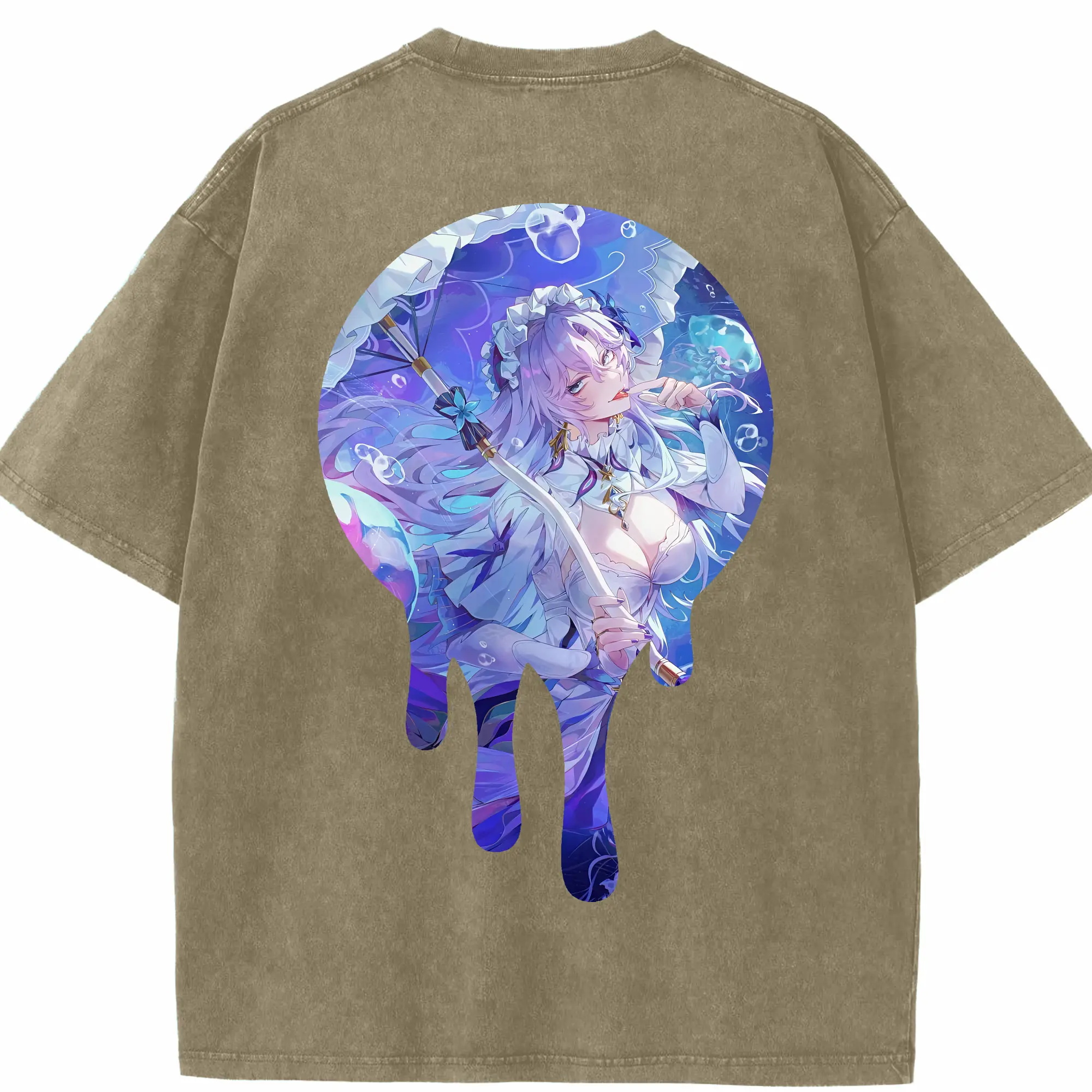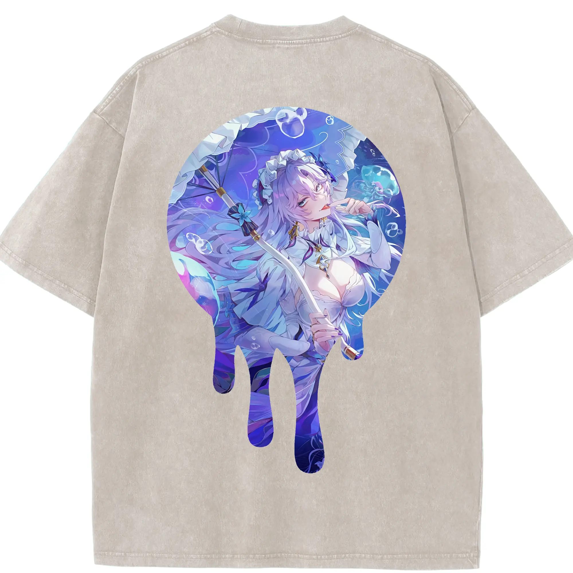 原 神 グッズ フリーナ - 綿100% ヴィンテージ風 半袖Tシャツ ・ 背面プリント ・ 柔らか肌触り ・ 通気性 快適 ・ スポーツ カジュアル 外出用