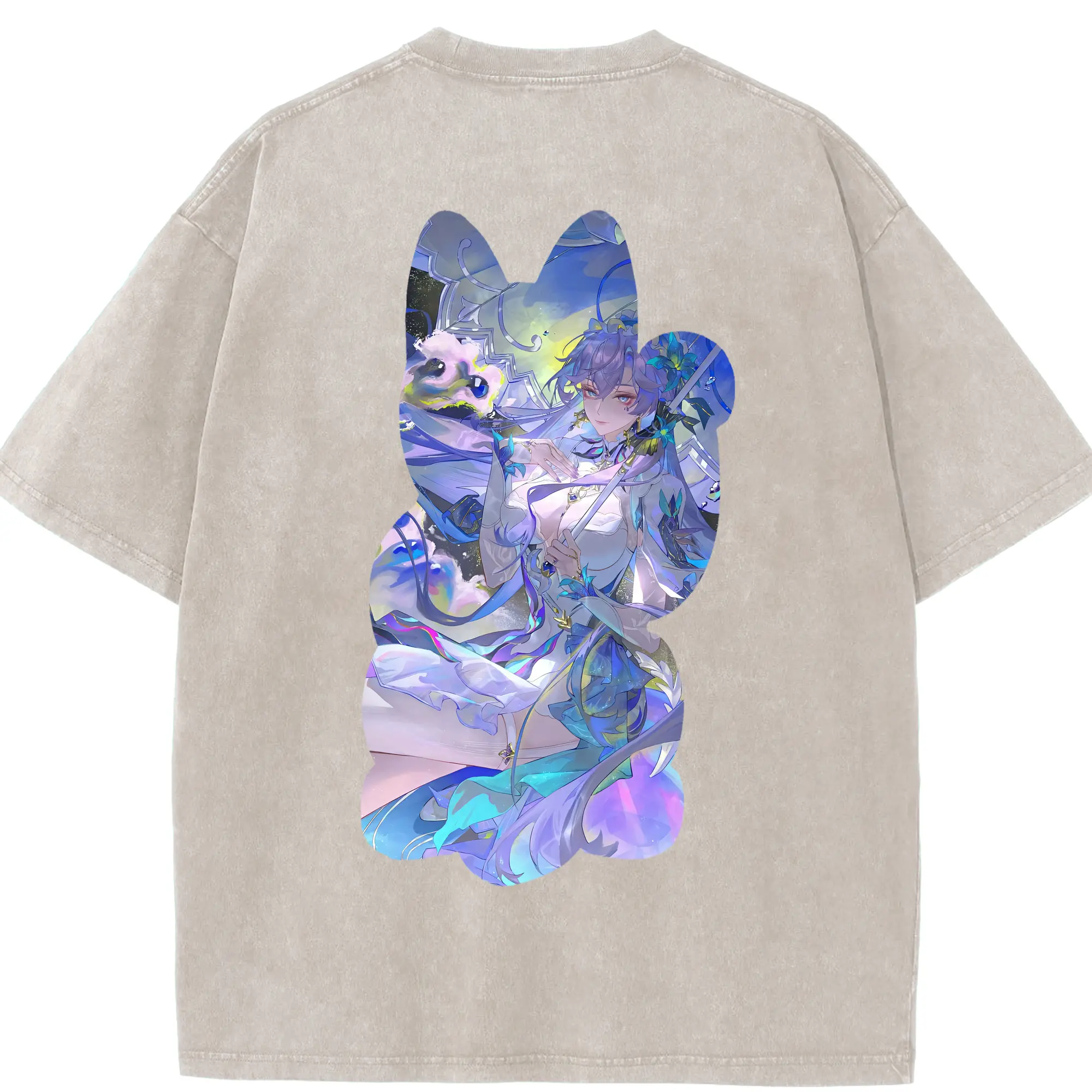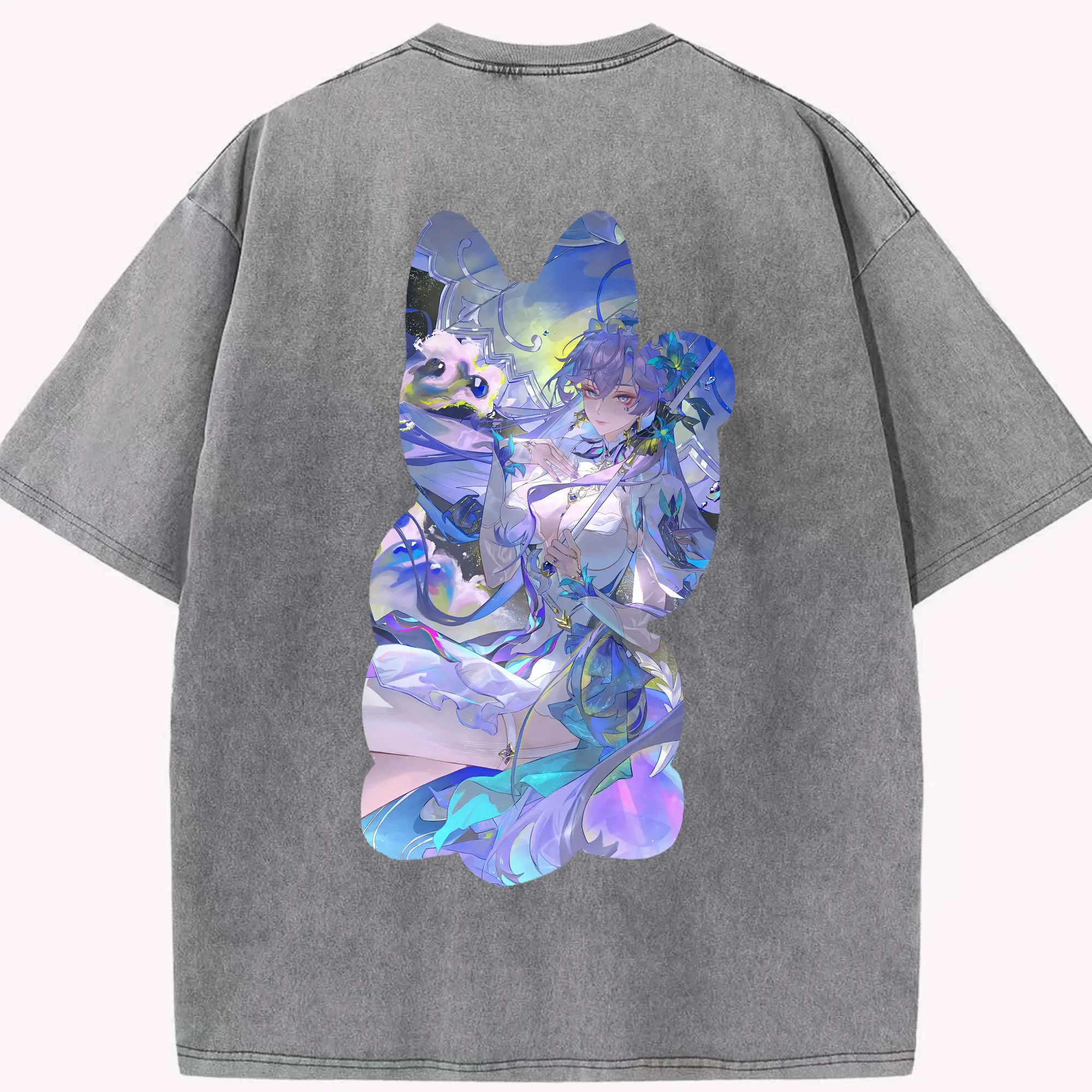 鳴潮 グッズ アンコ - 綿100% ヴィンテージ風 半袖Tシャツ ・ 背面プリント ・ 柔らか肌触り ・ 通気性 快適 ・ スポーツ カジュアル 外出用