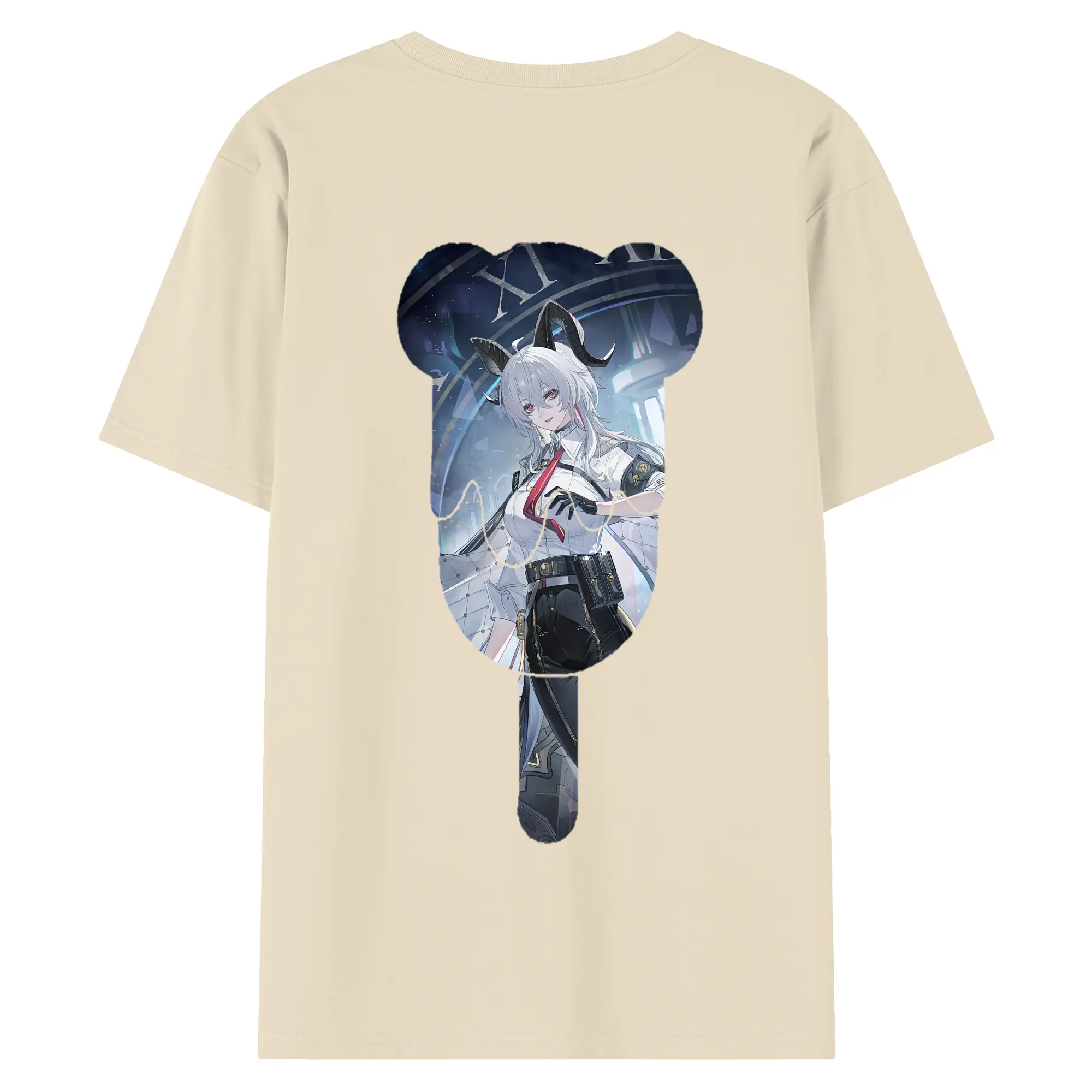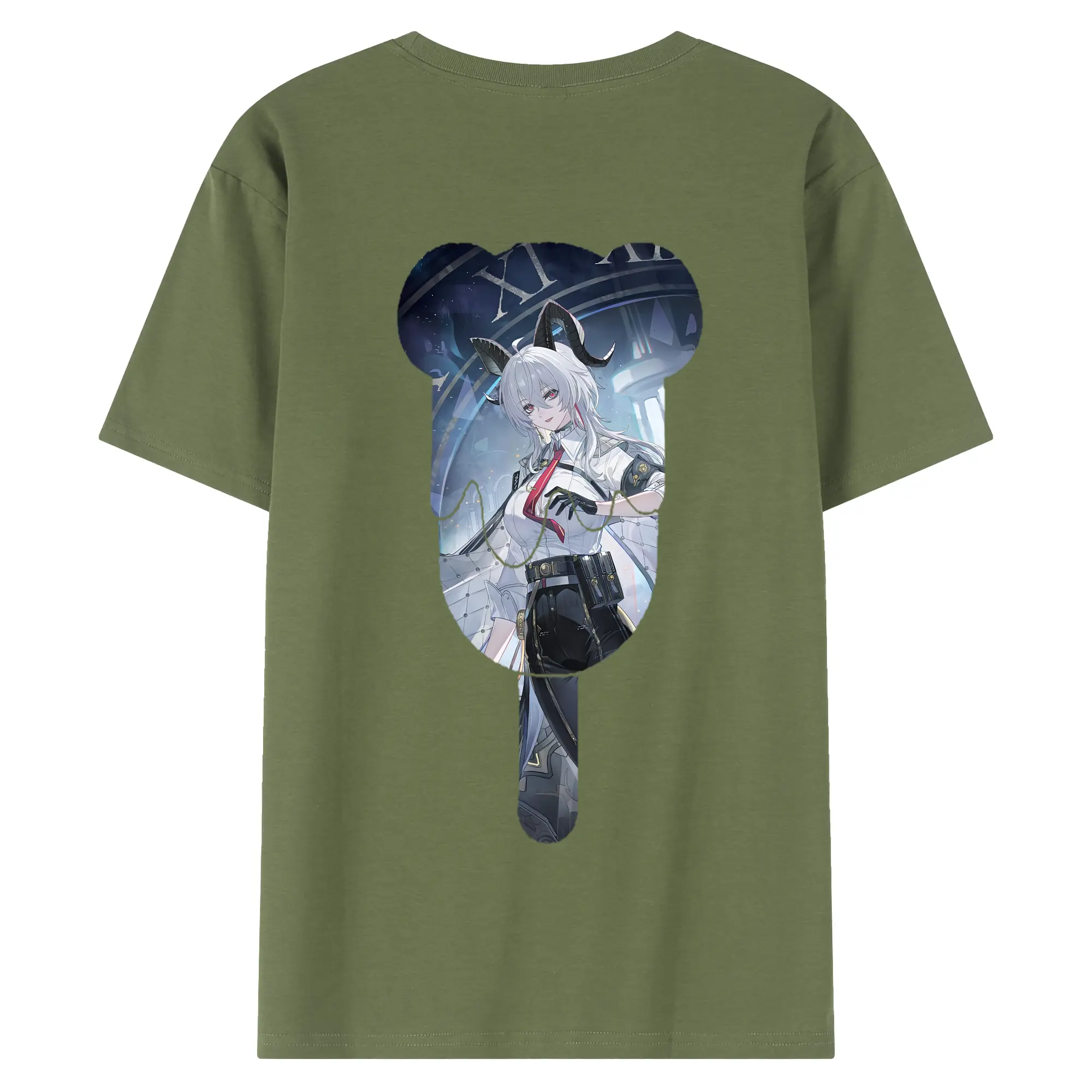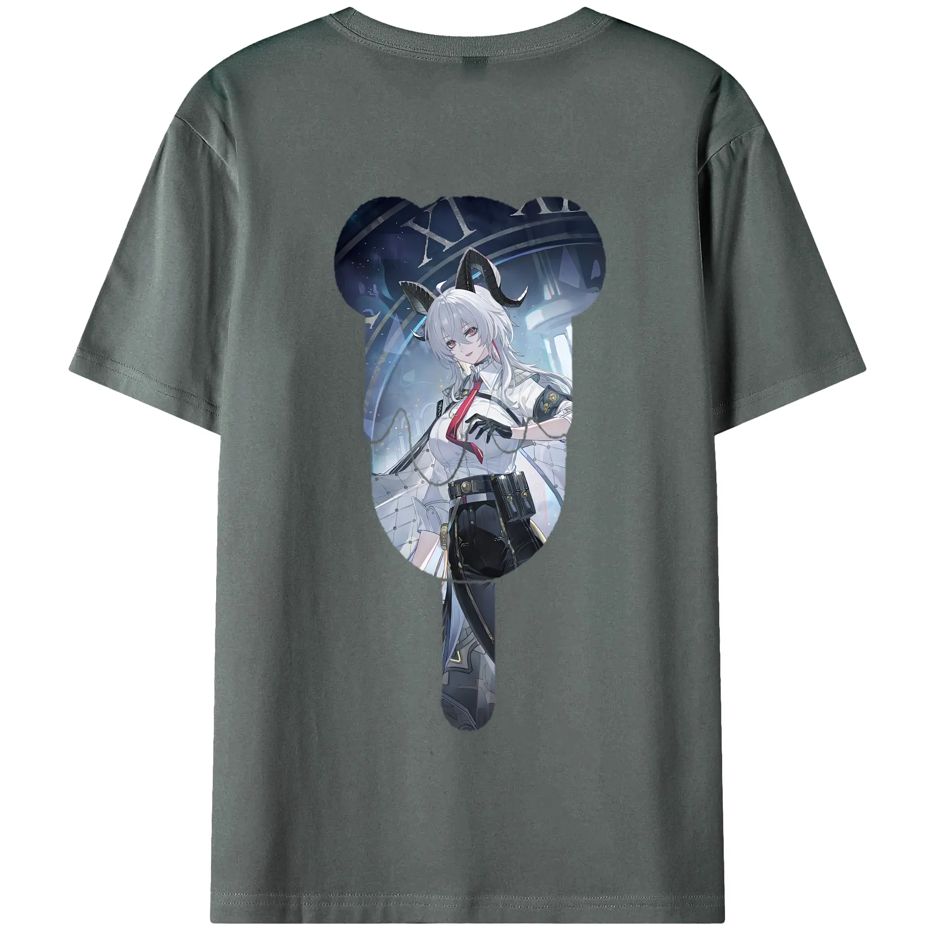 鳴潮 グッズ ザンニー - 綿100% ヴィンテージ風 半袖Tシャツ ・ 背面プリント ・ 柔らか肌触り ・ 通気性 快適 ・ スポーツ カジュアル 外出用
