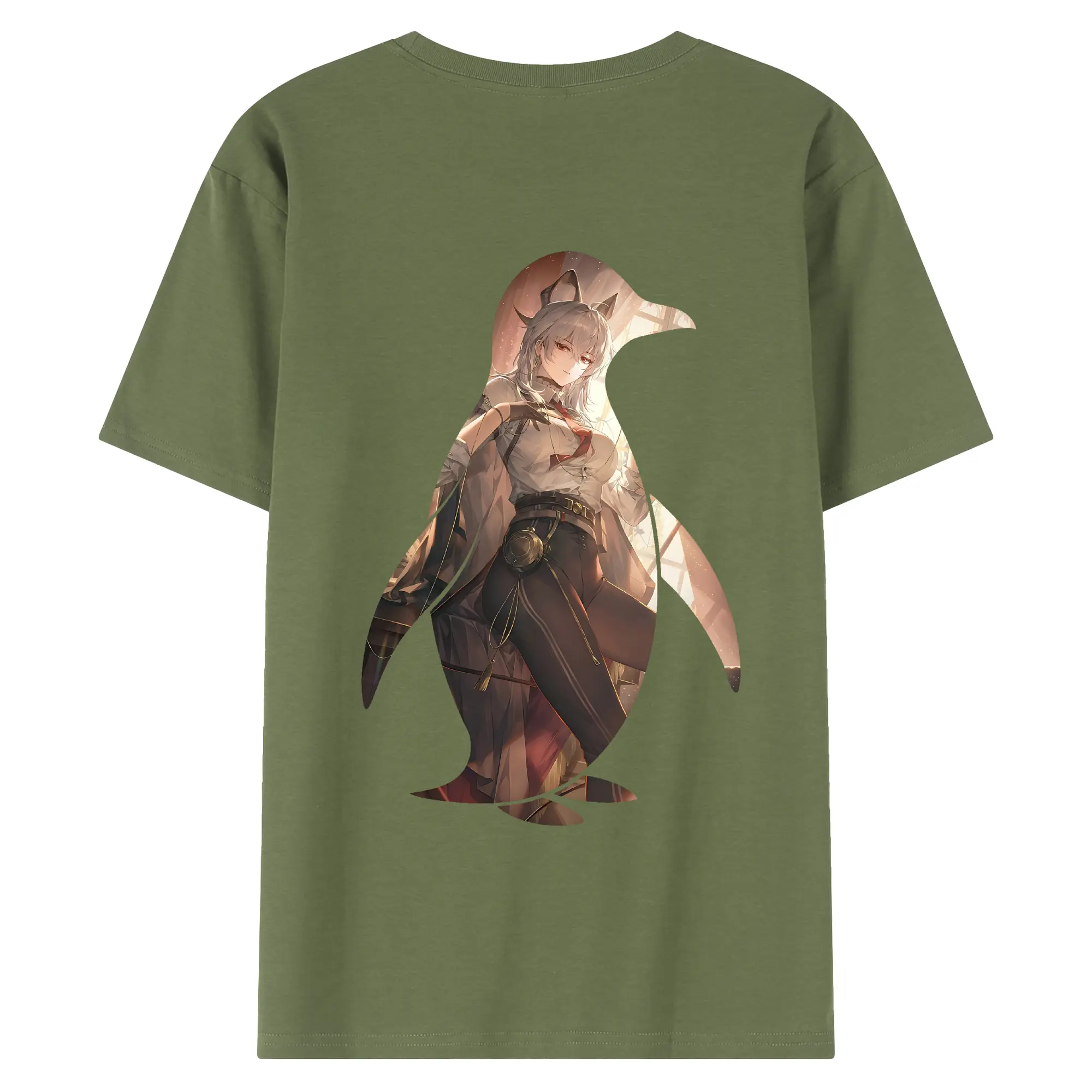 鳴潮 グッズ ザンニー - 綿100% ヴィンテージ風 半袖Tシャツ ・ 背面プリント ・ 柔らか肌触り ・ 通気性 快適 ・ スポーツ カジュアル 外出用