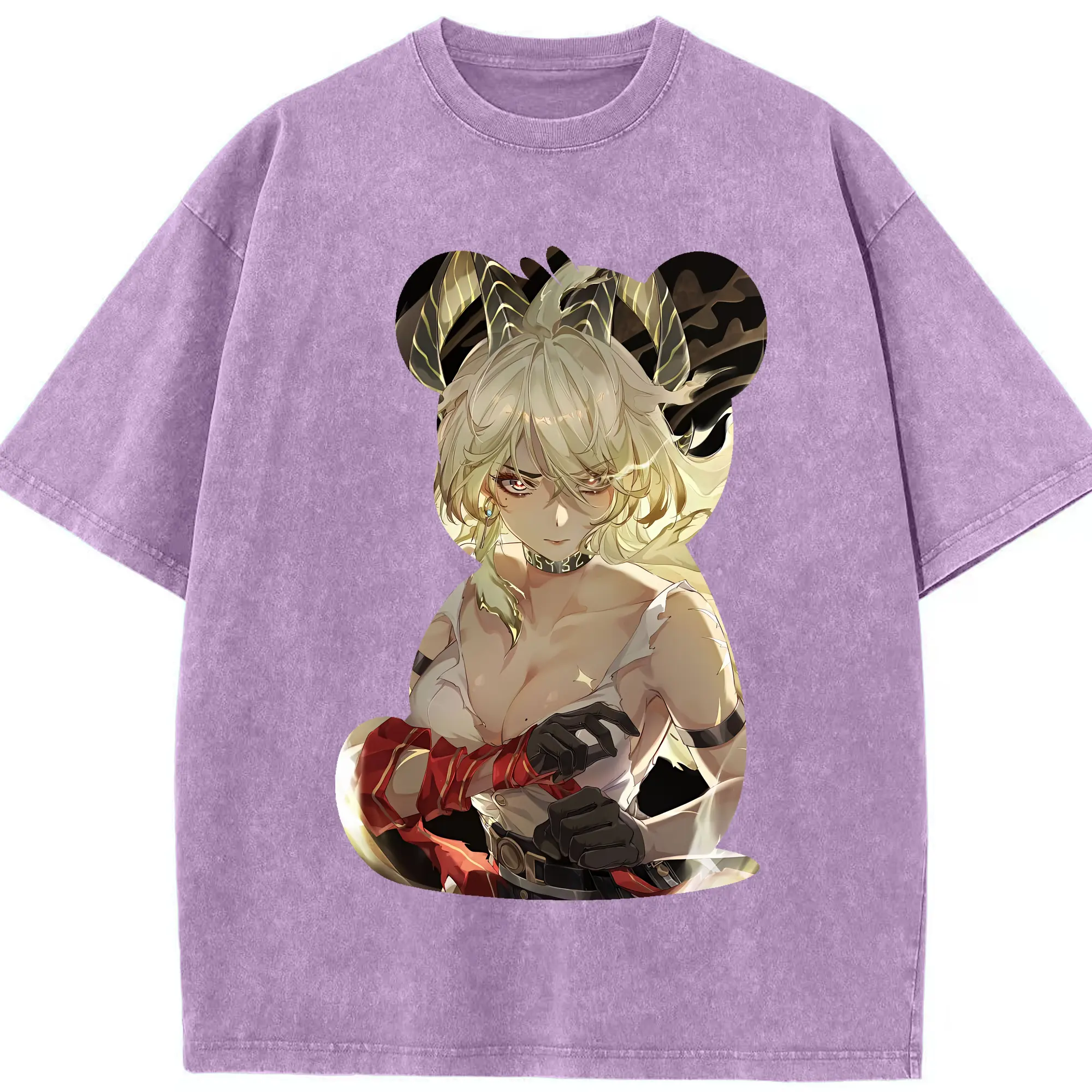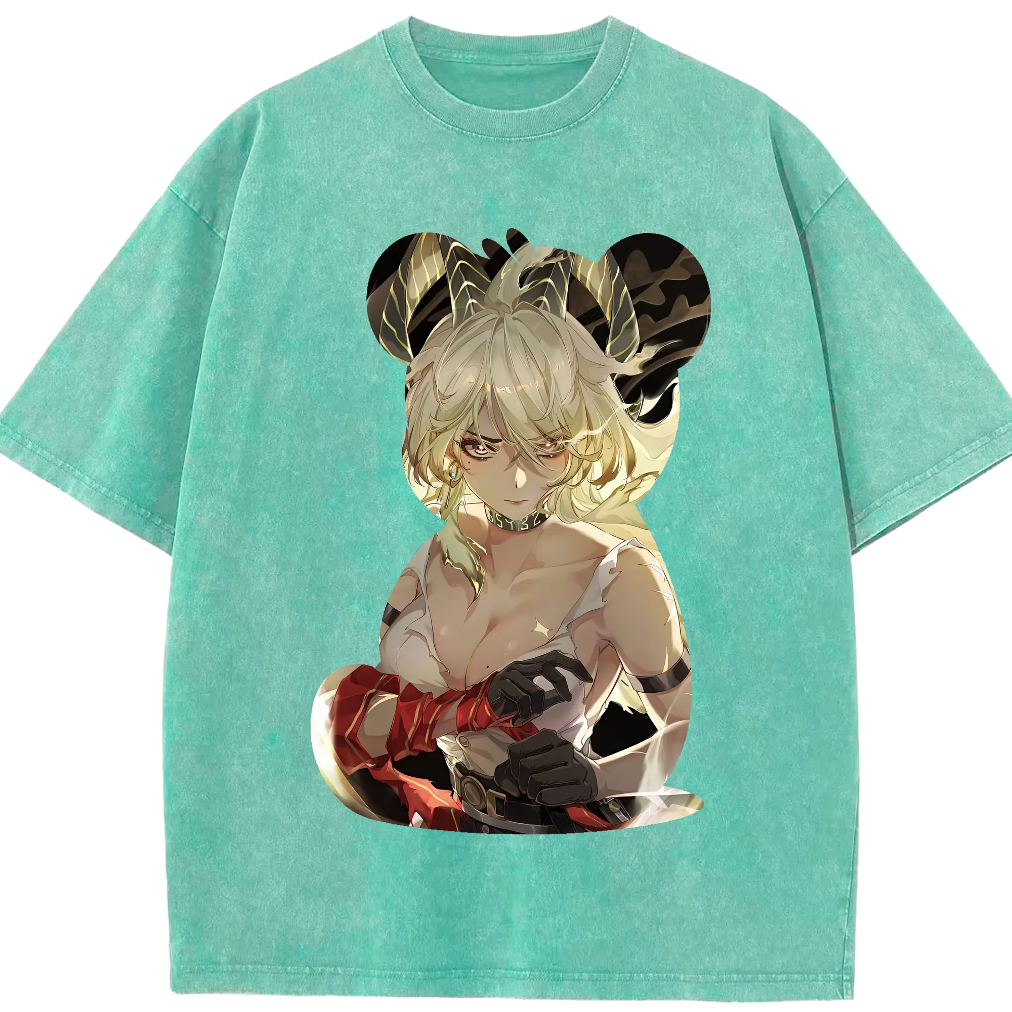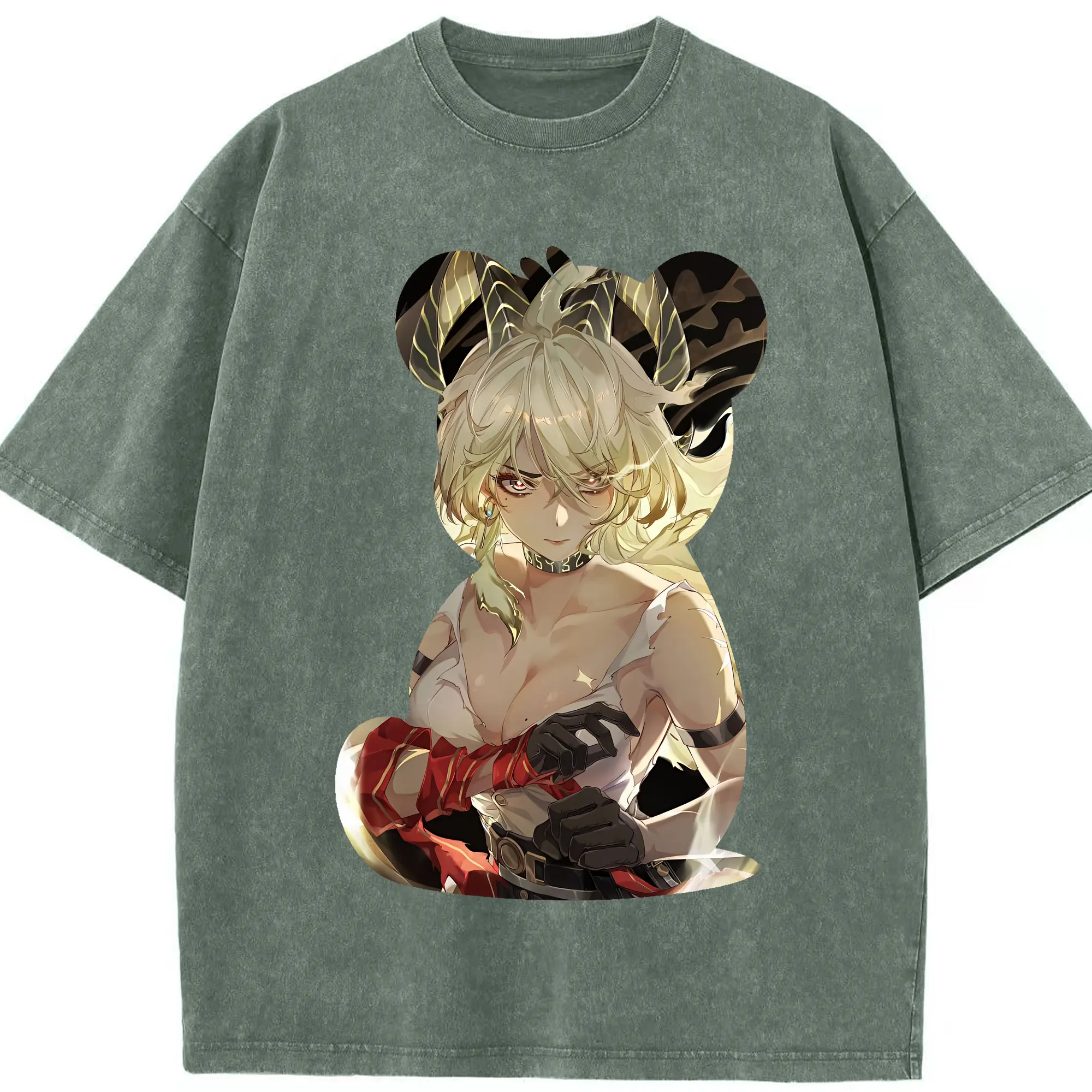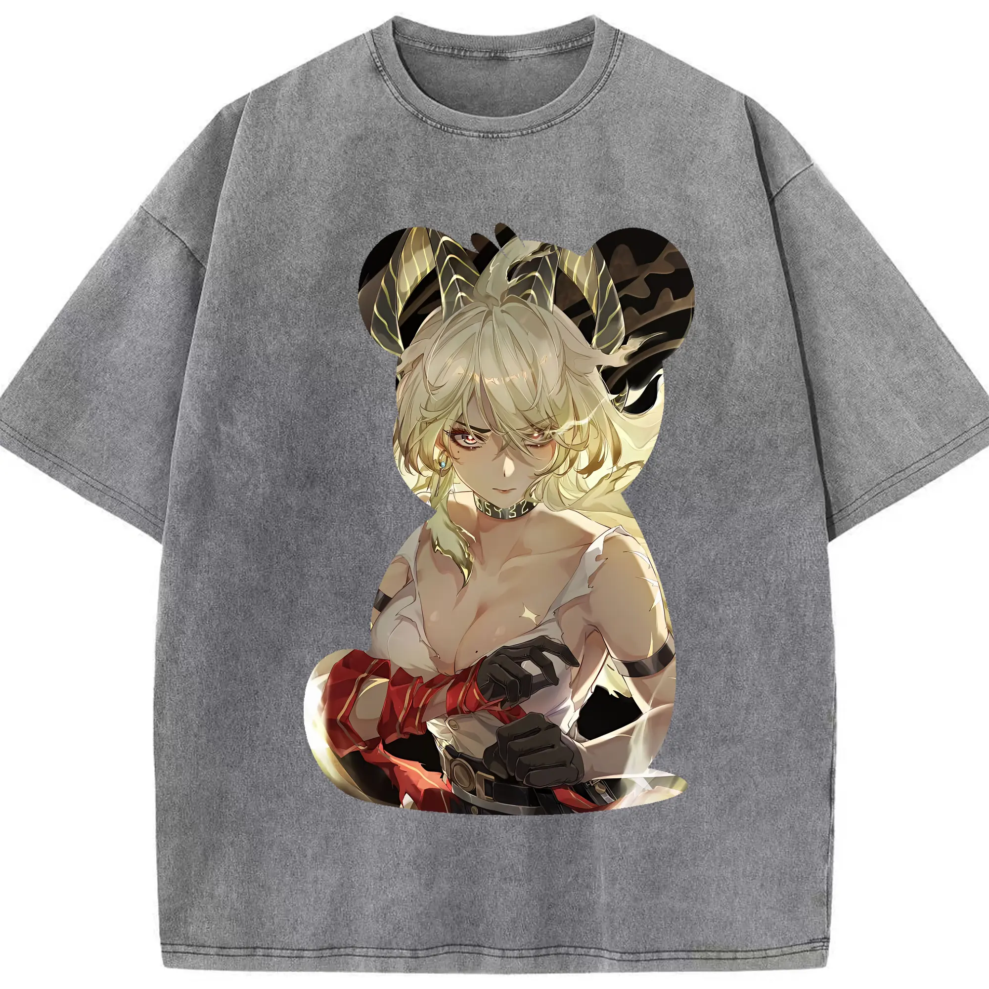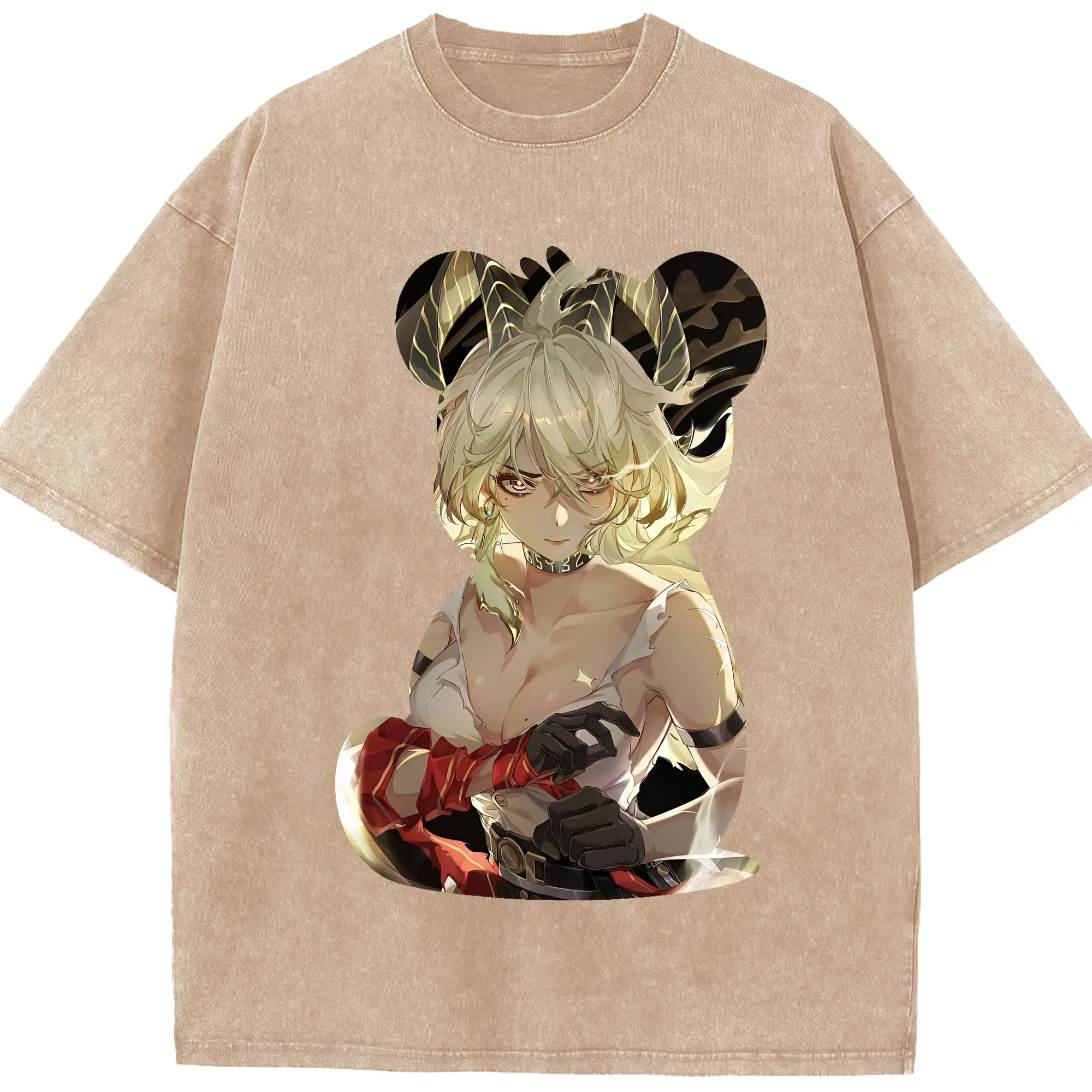 鳴潮 グッズ ザンニー - 綿100% ヴィンテージ風 半袖Tシャツ ・ 背面プリント ・ 柔らか肌触り ・ 通気性 快適 ・ スポーツ カジュアル 外出用