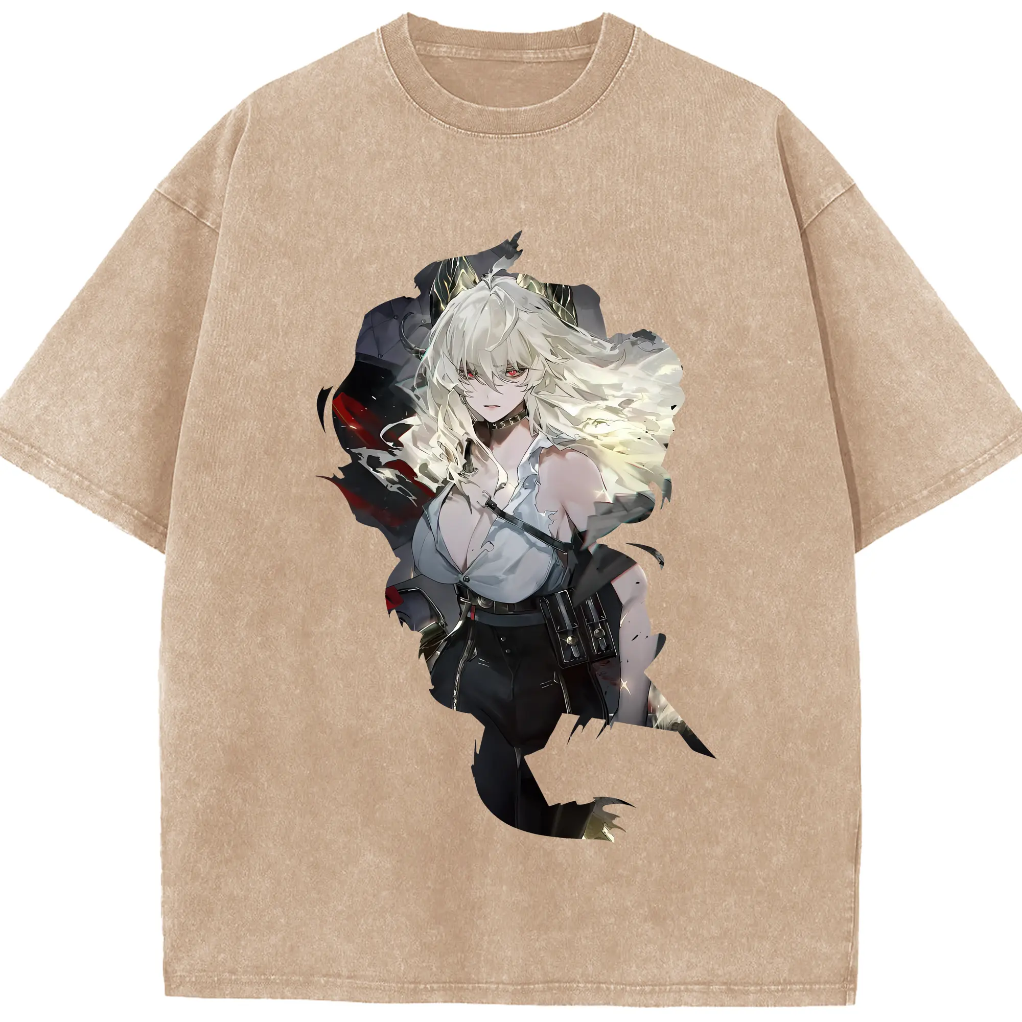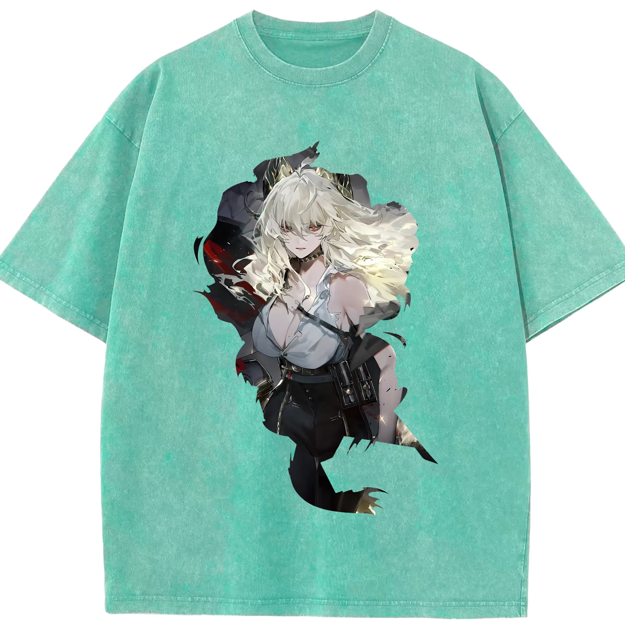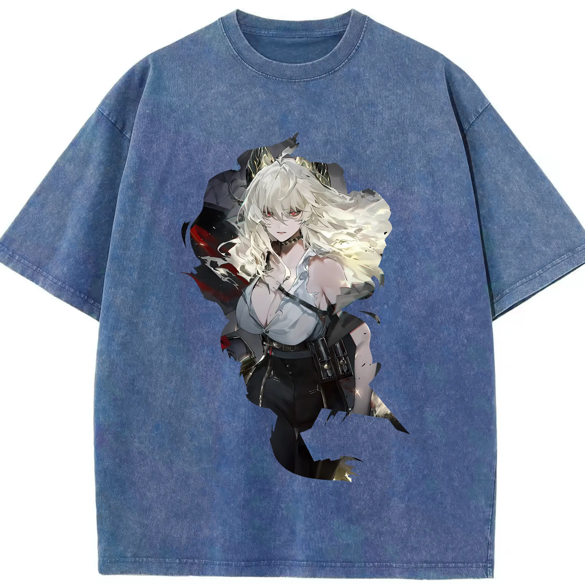 鳴潮 グッズ ザンニー - 綿100% ヴィンテージ風 半袖Tシャツ ・ 背面プリント ・ 柔らか肌触り ・ 通気性 快適 ・ スポーツ カジュアル 外出用