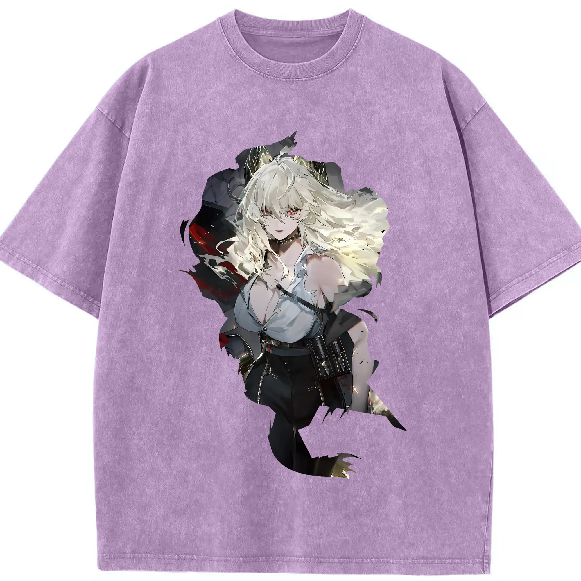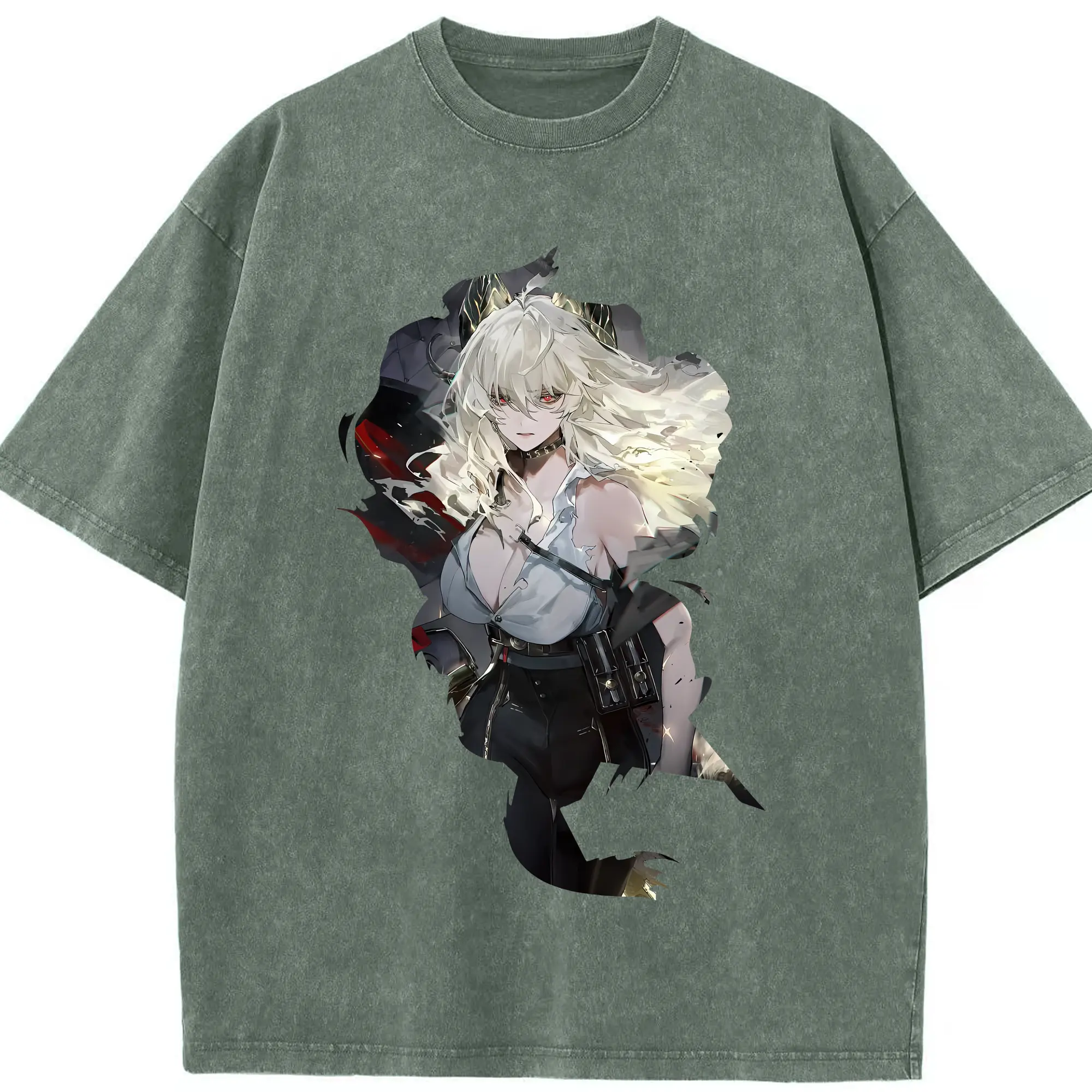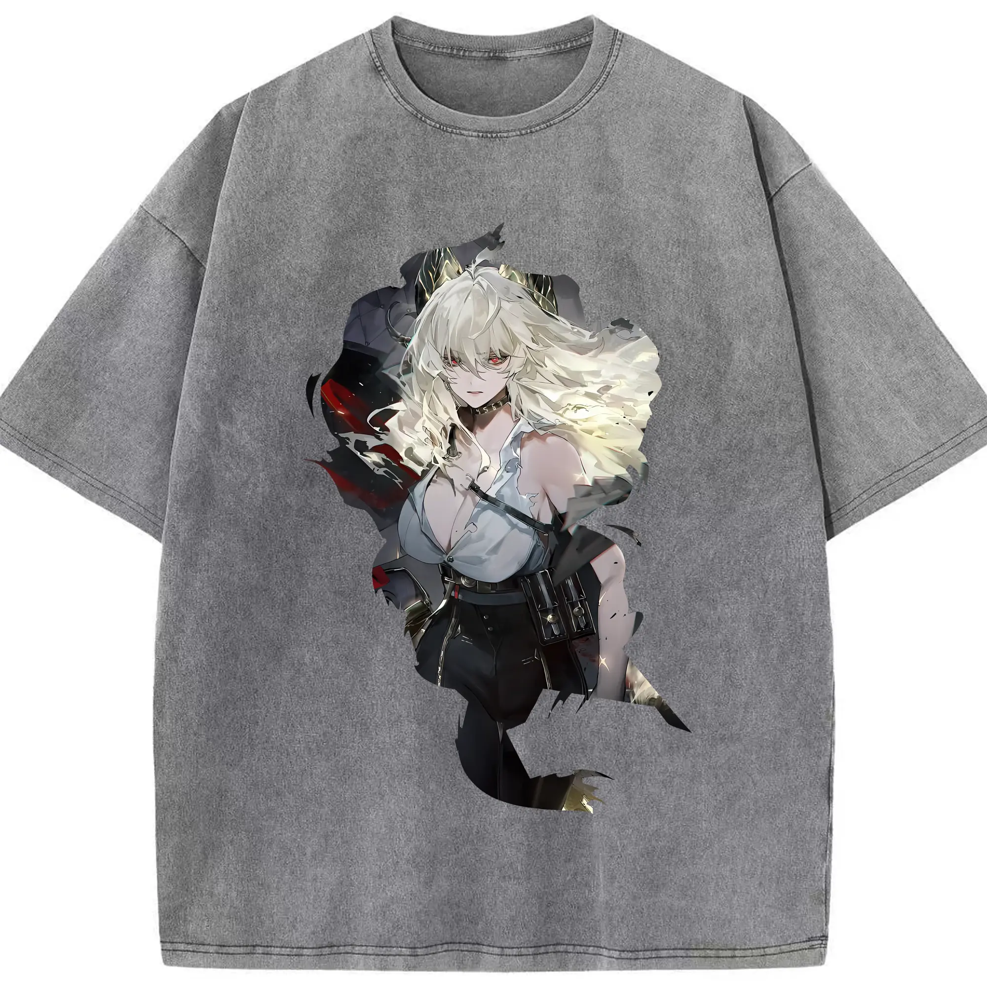 鳴潮 グッズ ザンニー - 綿100% ヴィンテージ風 半袖Tシャツ ・ 背面プリント ・ 柔らか肌触り ・ 通気性 快適 ・ スポーツ カジュアル 外出用