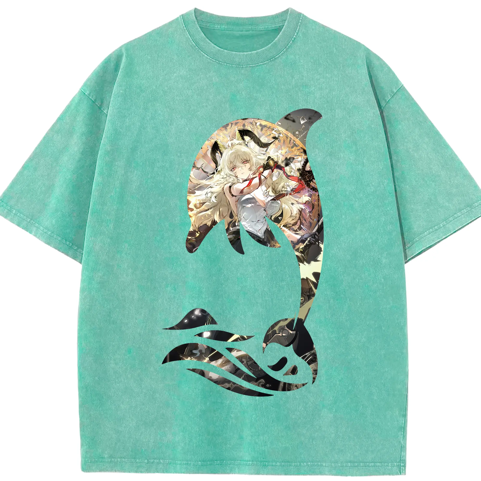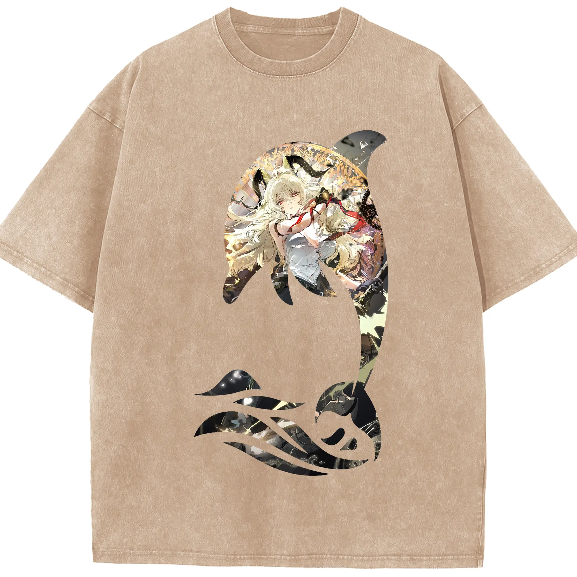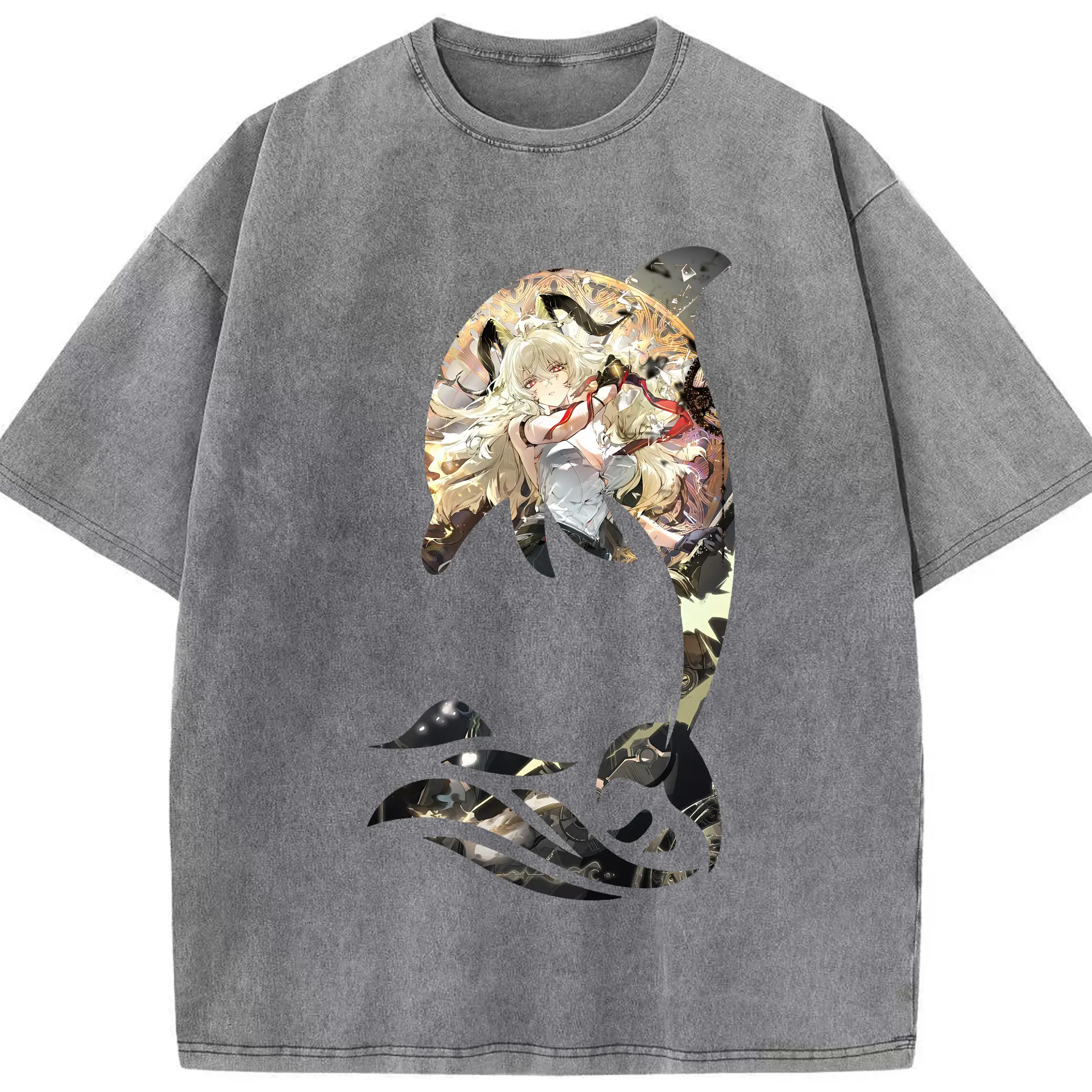 鳴潮 グッズ ザンニー - 綿100% ヴィンテージ風 半袖Tシャツ ・ 背面プリント ・ 柔らか肌触り ・ 通気性 快適 ・ スポーツ カジュアル 外出用
