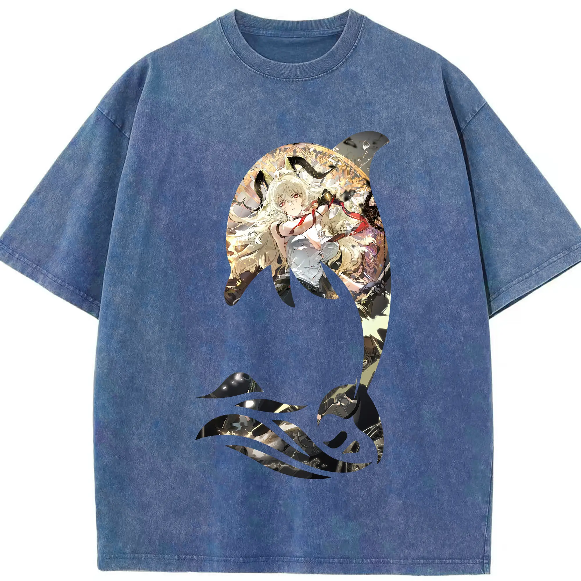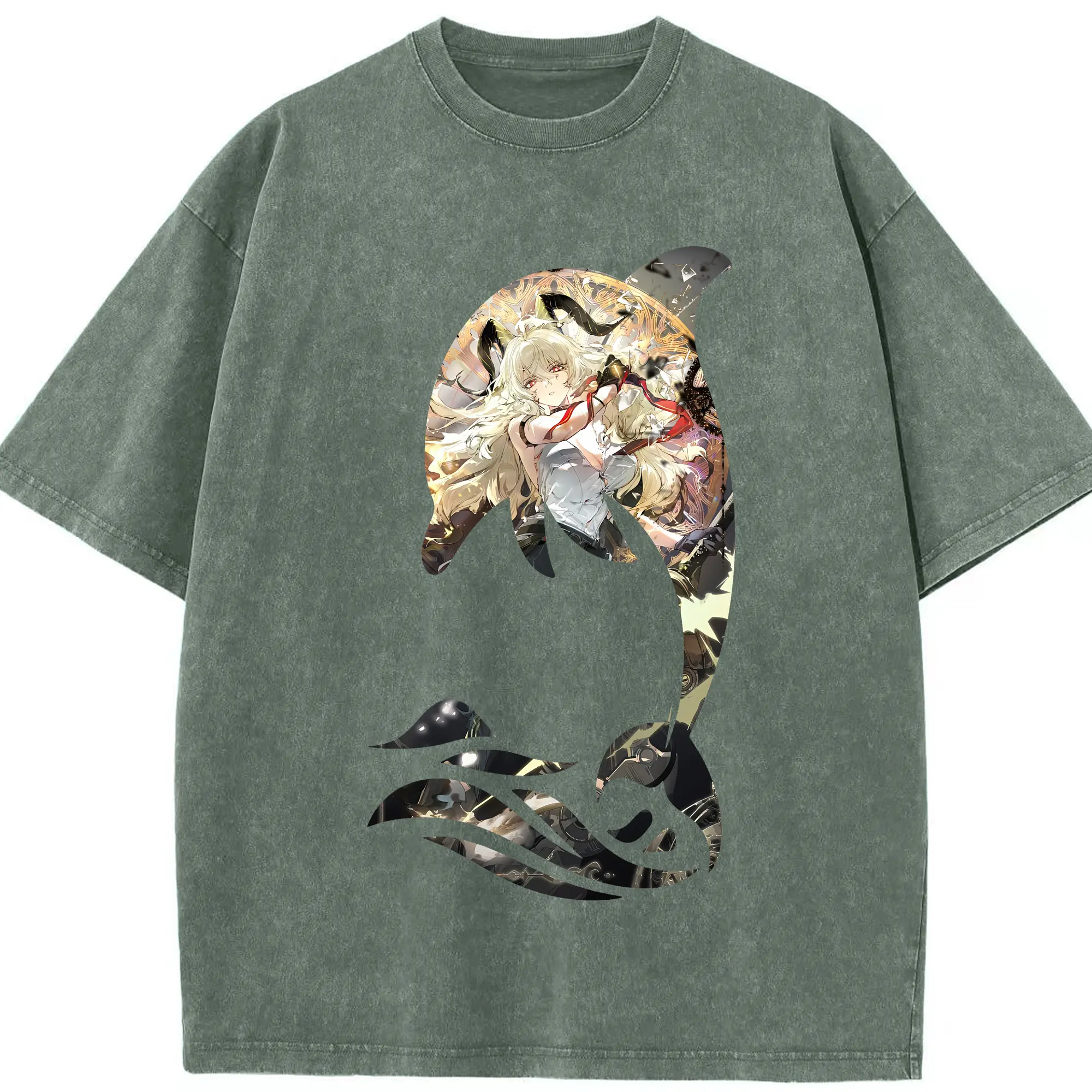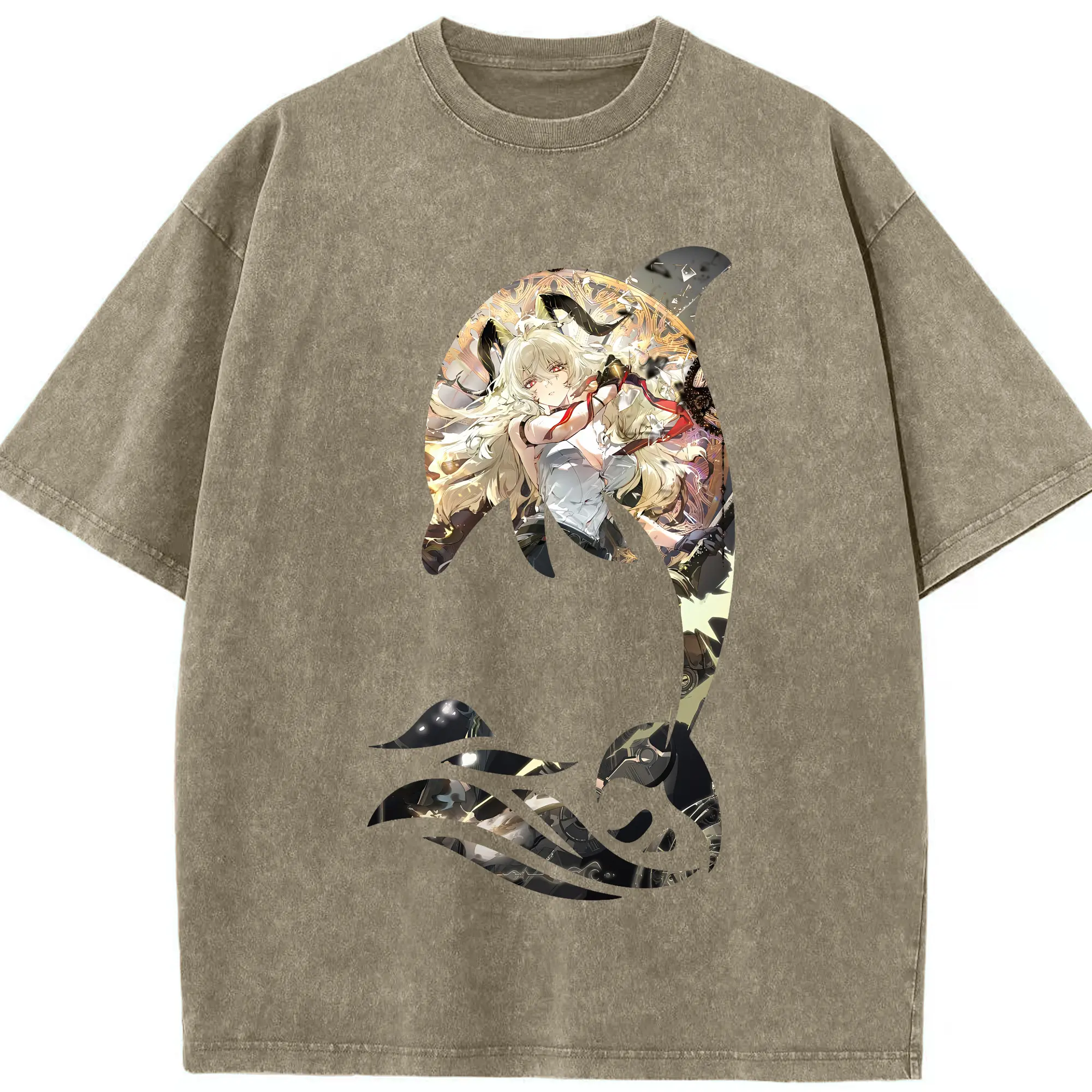鳴潮 グッズ ザンニー - 綿100% ヴィンテージ風 半袖Tシャツ ・ 背面プリント ・ 柔らか肌触り ・ 通気性 快適 ・ スポーツ カジュアル 外出用