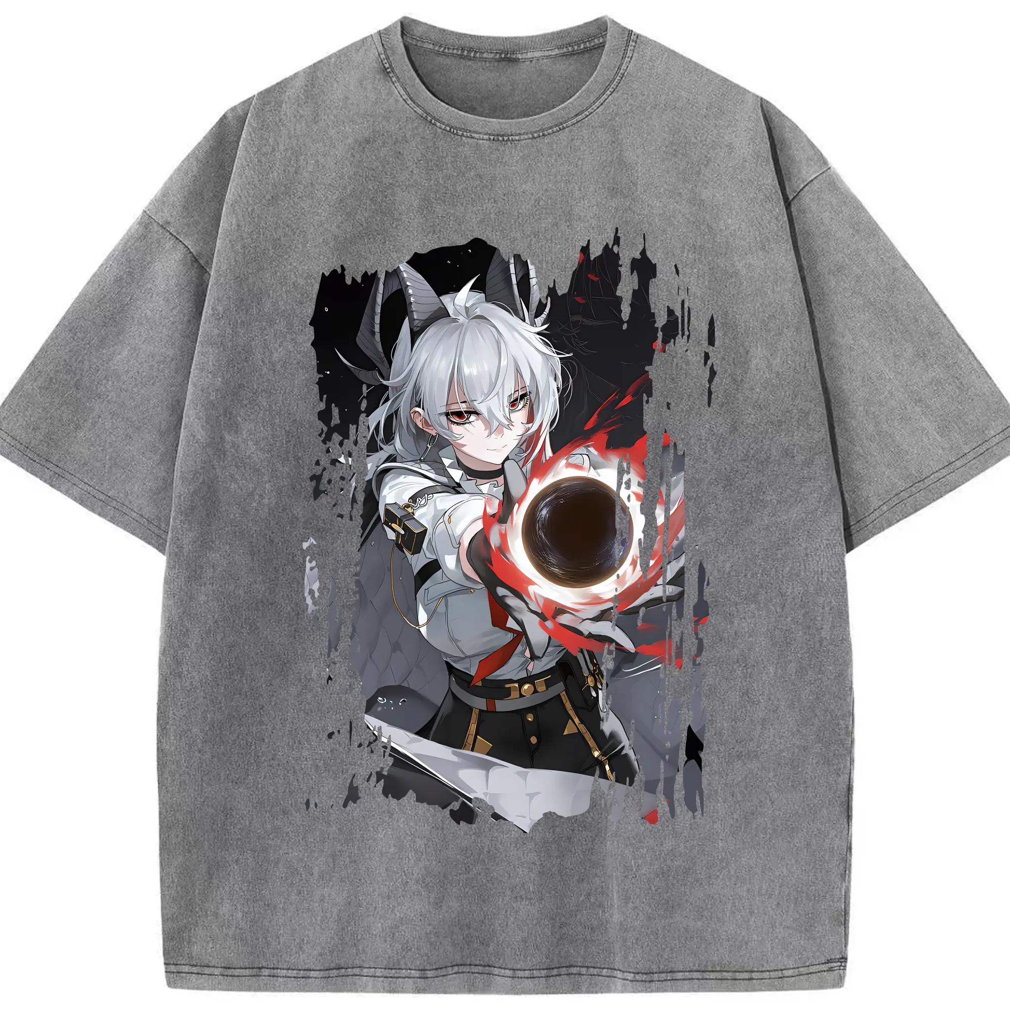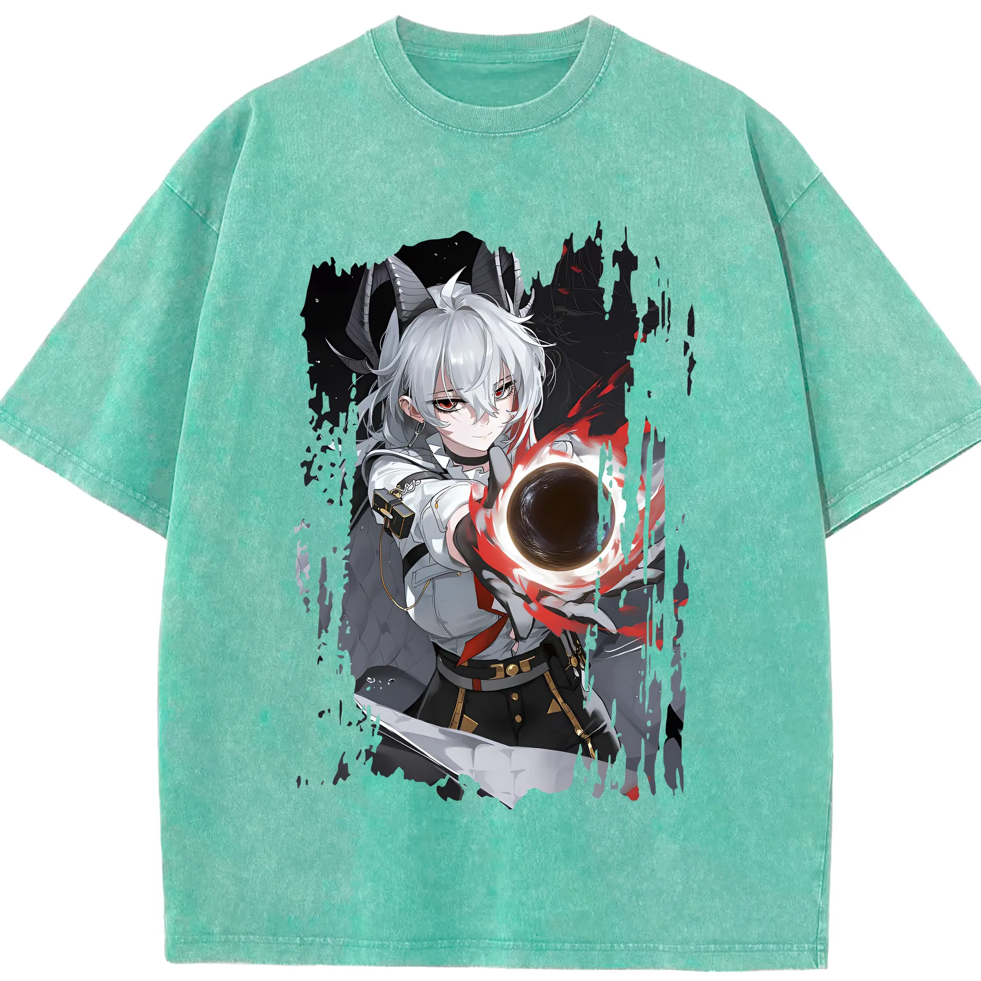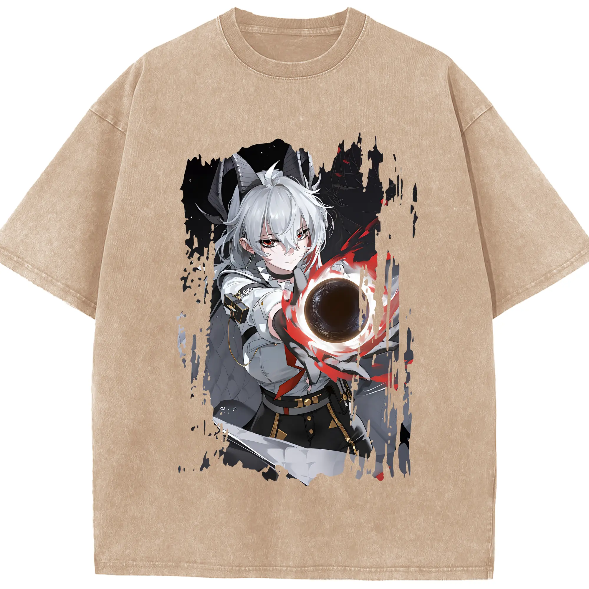 鳴潮 グッズ ザンニー - 綿100% ヴィンテージ風 半袖Tシャツ ・ 背面プリント ・ 柔らか肌触り ・ 通気性 快適 ・ スポーツ カジュアル 外出用