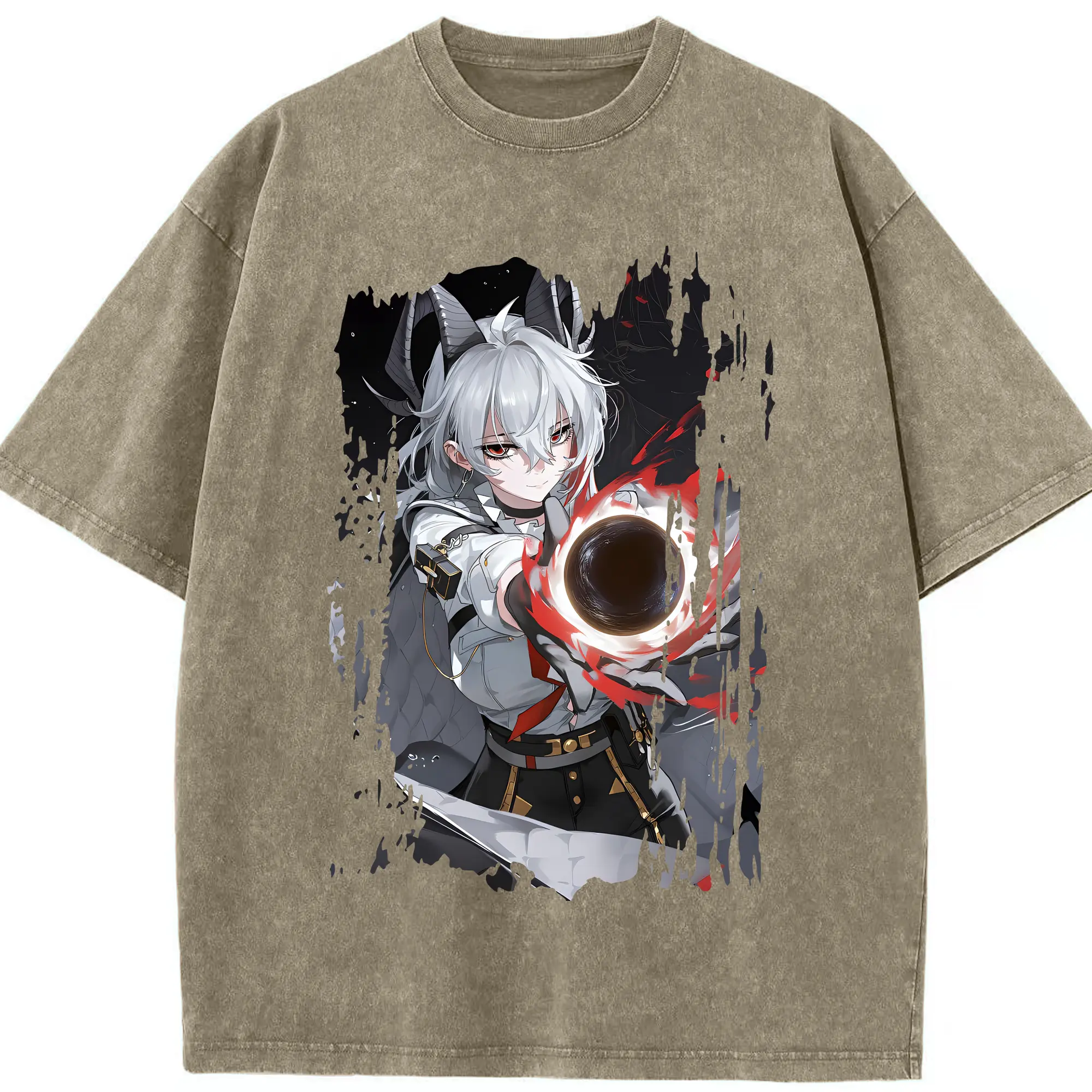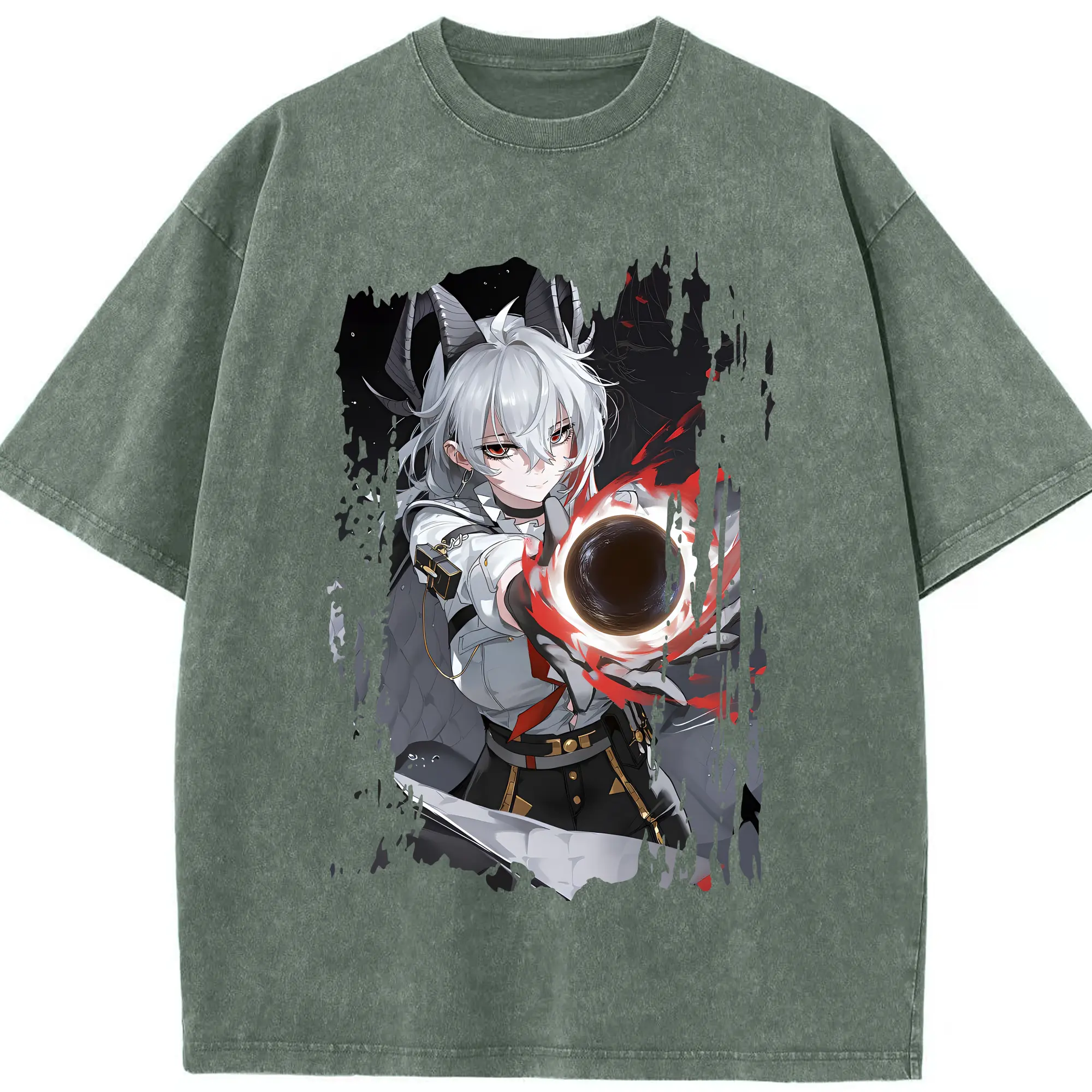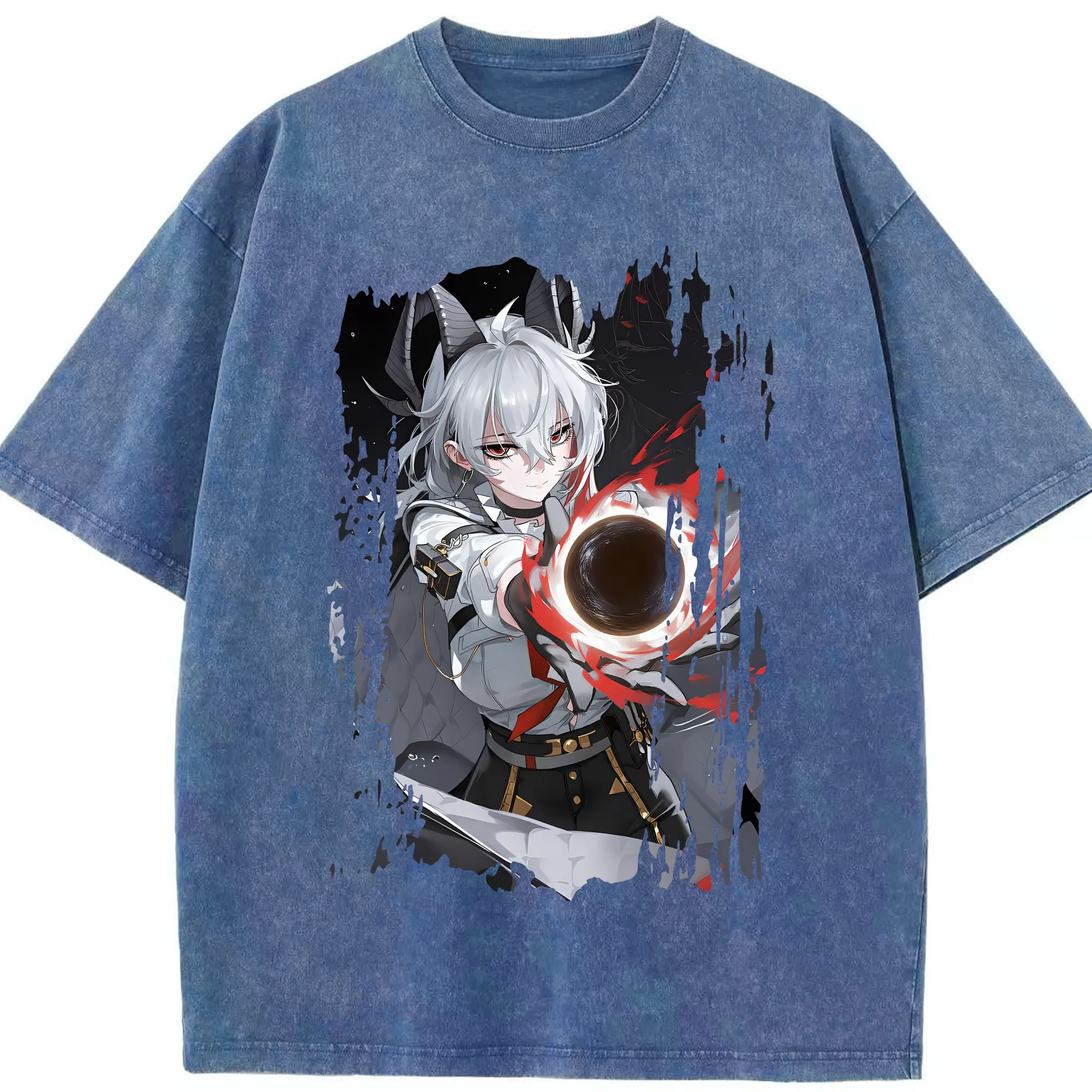 鳴潮 グッズ ザンニー - 綿100% ヴィンテージ風 半袖Tシャツ ・ 背面プリント ・ 柔らか肌触り ・ 通気性 快適 ・ スポーツ カジュアル 外出用
