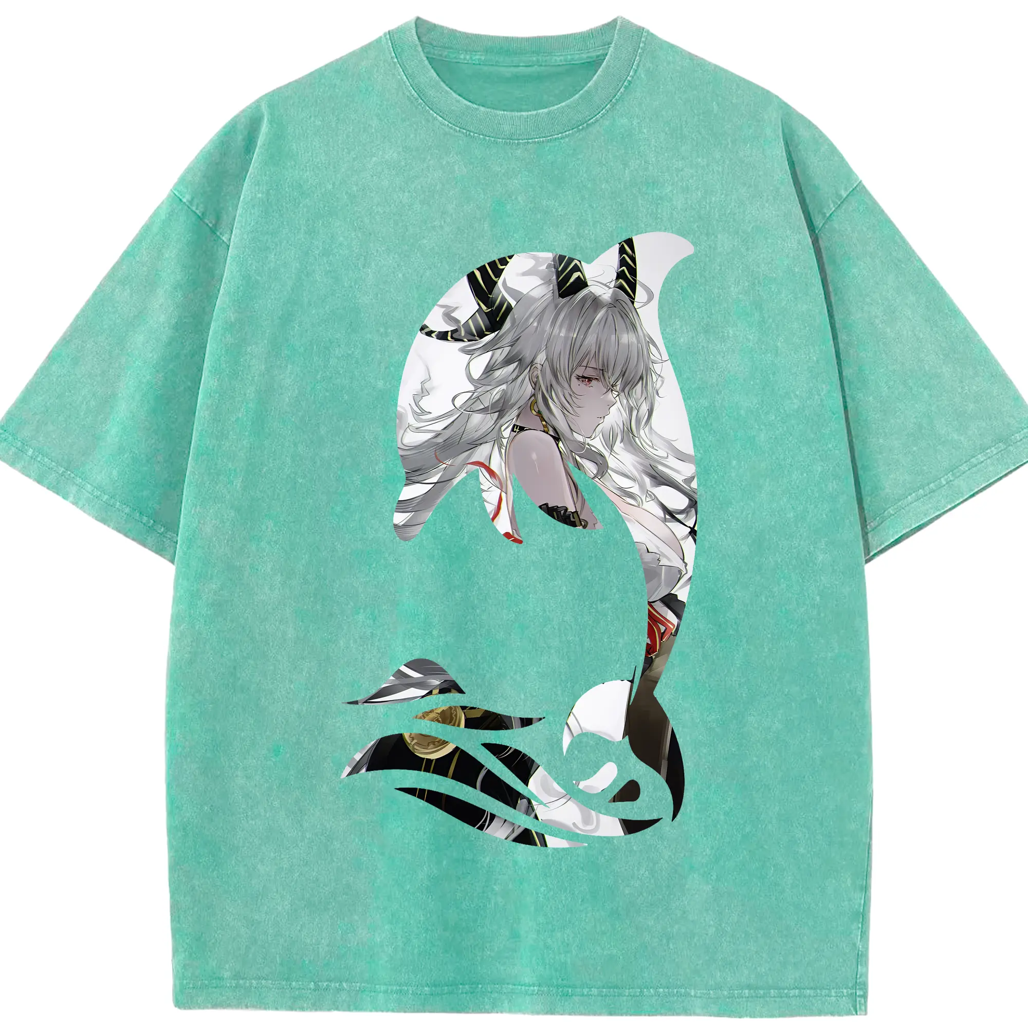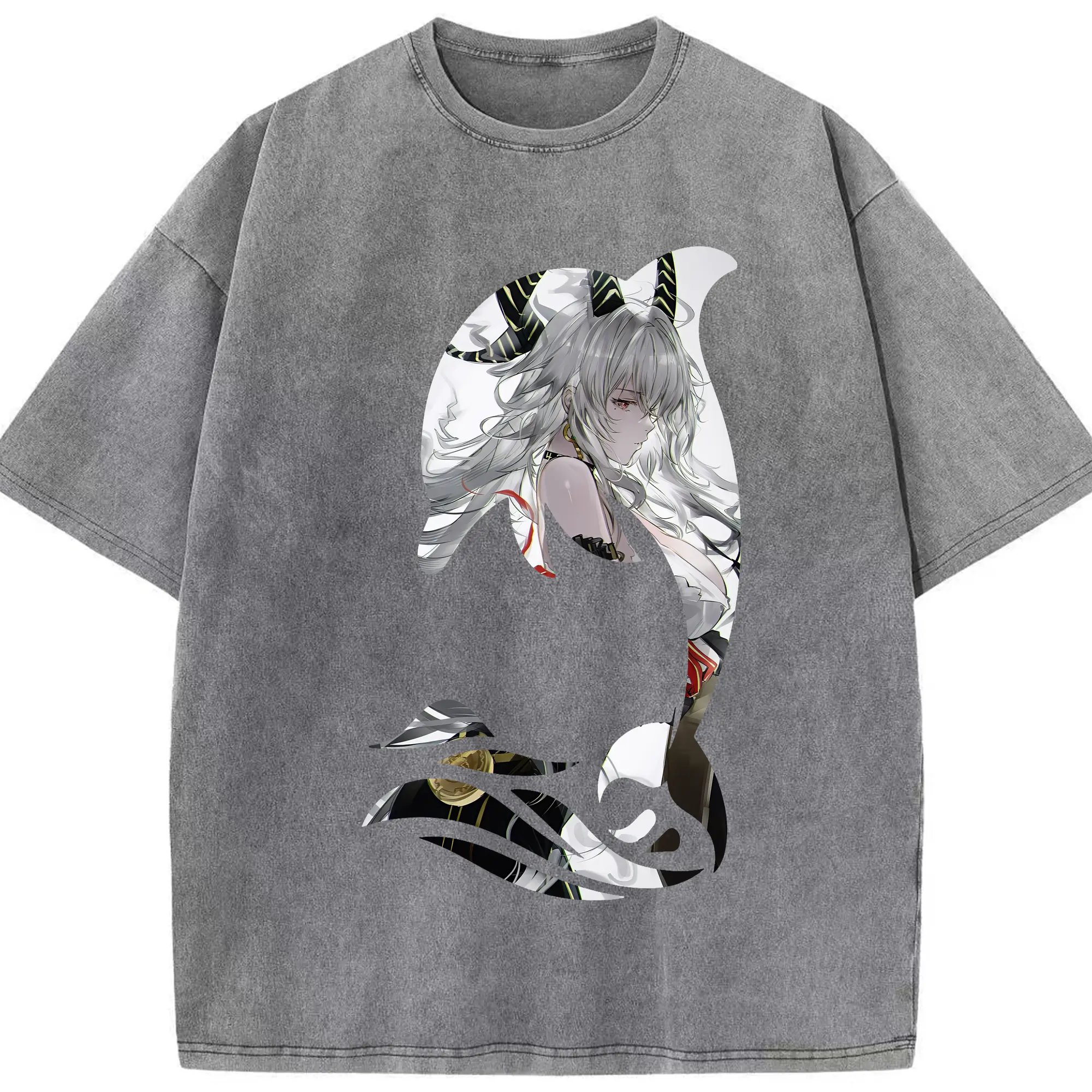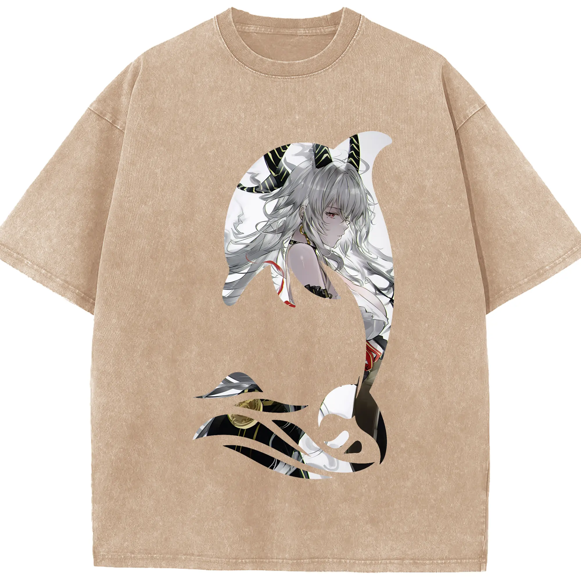 鳴潮 グッズ ザンニー - 綿100% ヴィンテージ風 半袖Tシャツ ・ 背面プリント ・ 柔らか肌触り ・ 通気性 快適 ・ スポーツ カジュアル 外出用