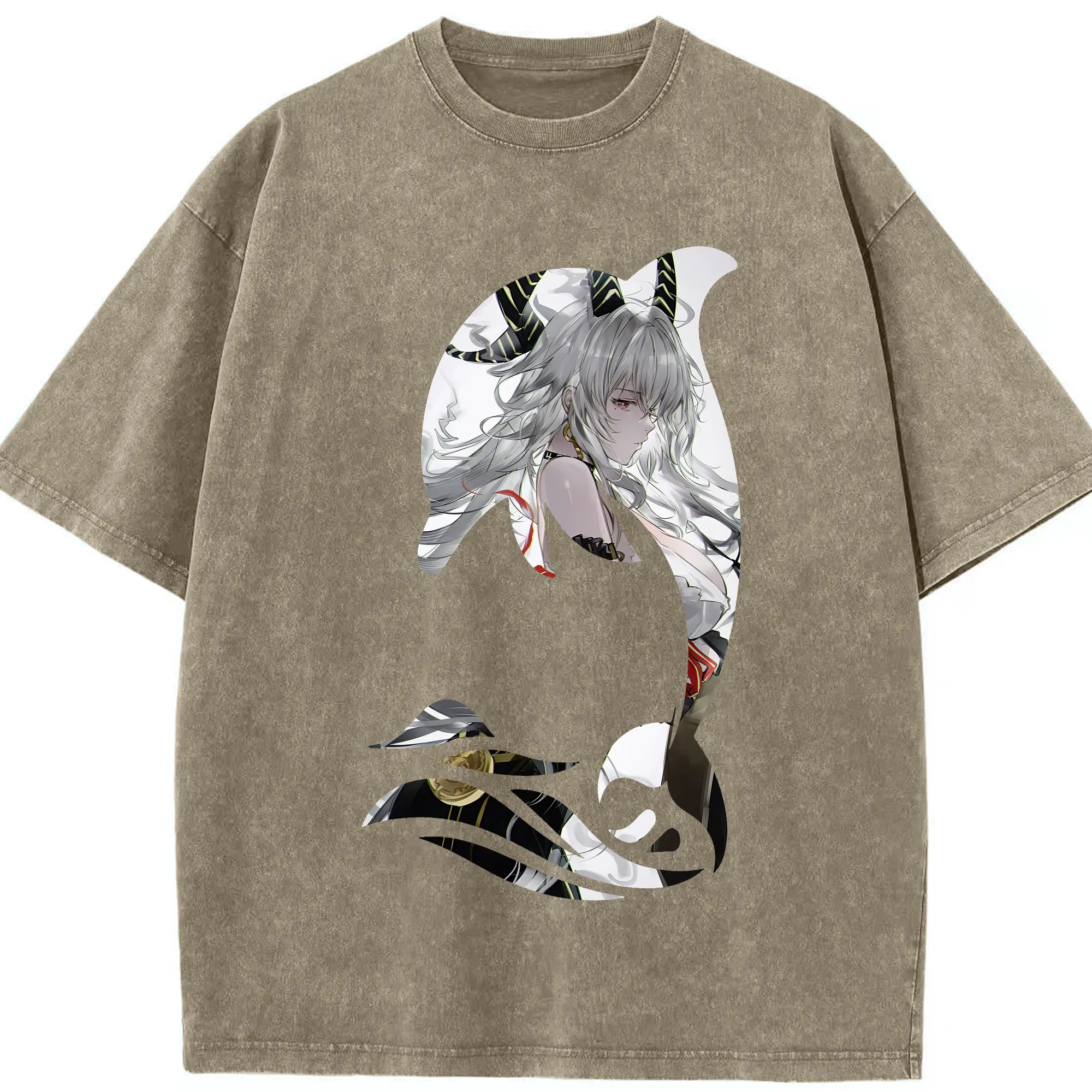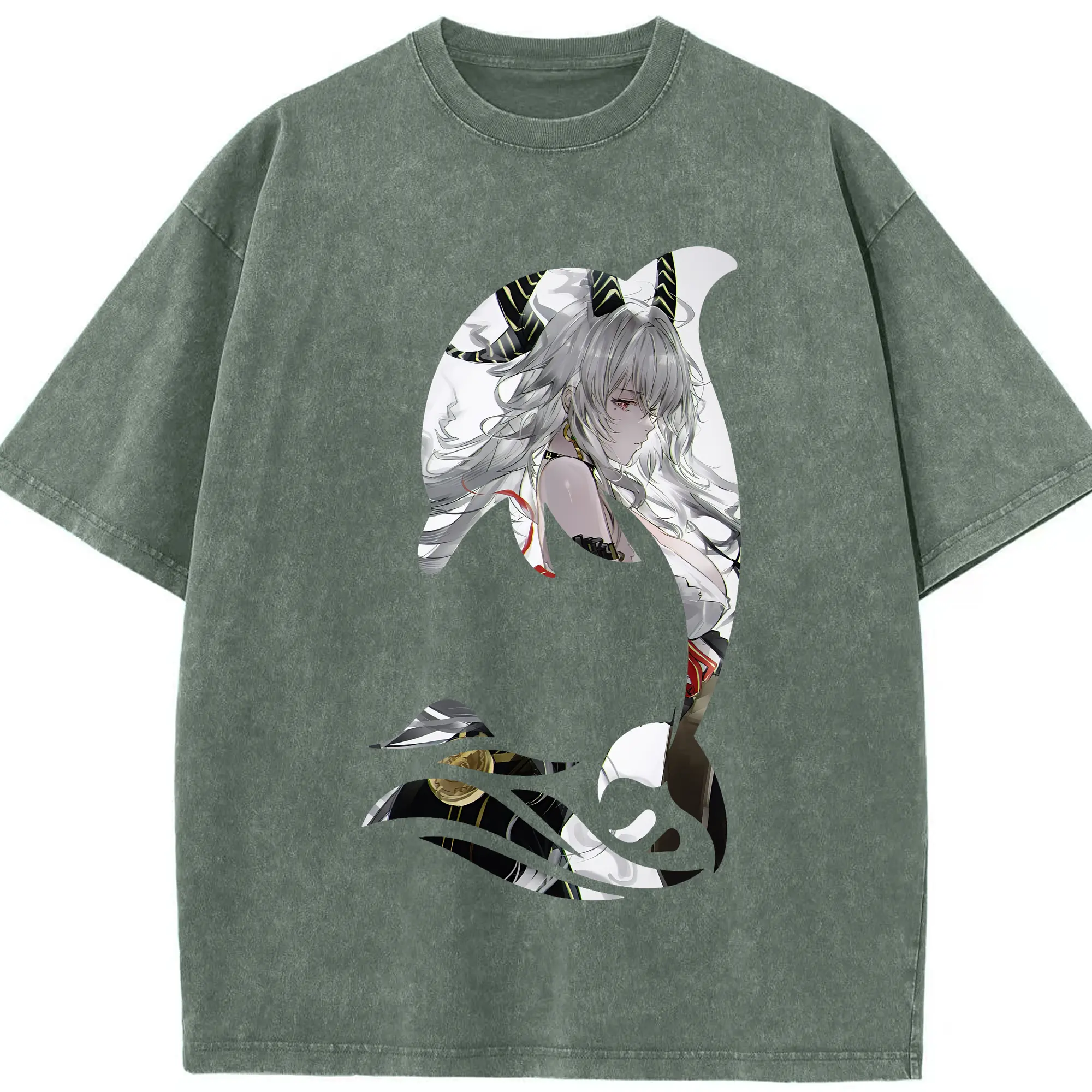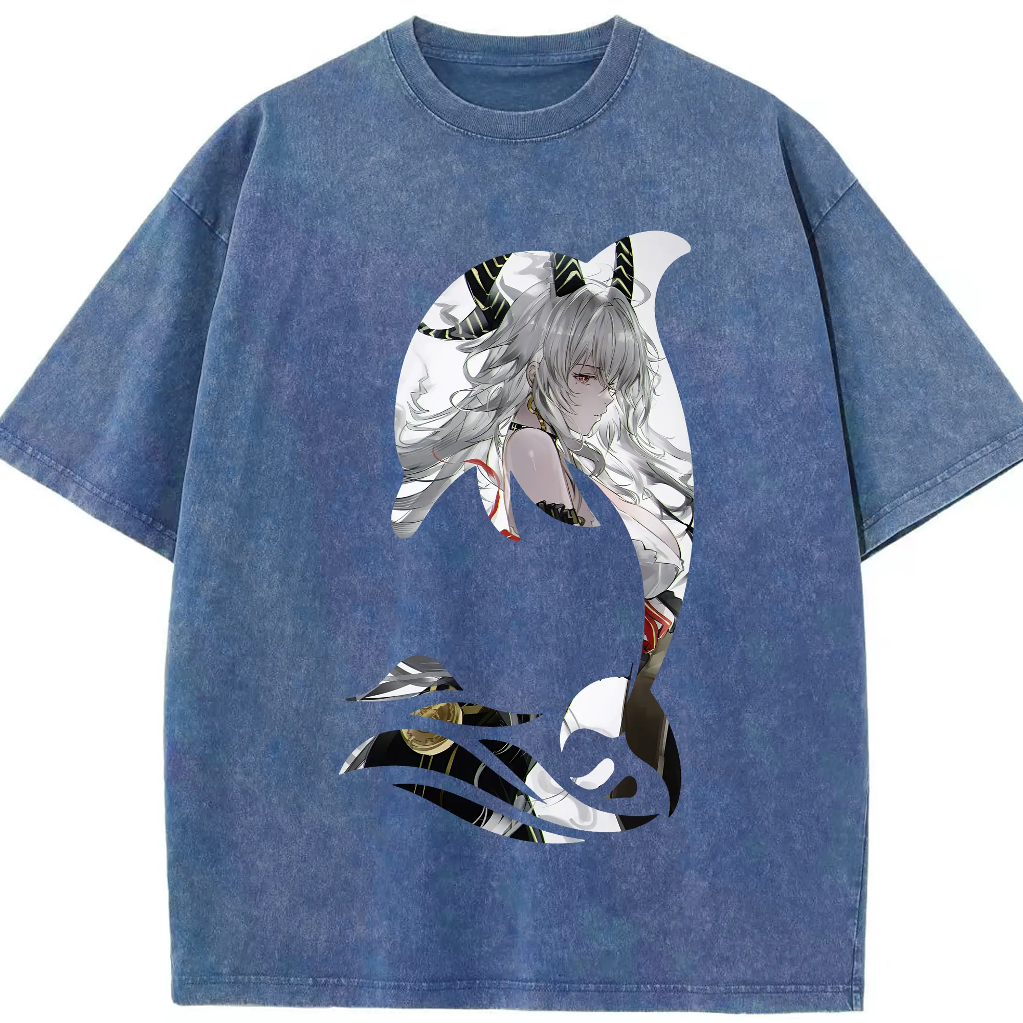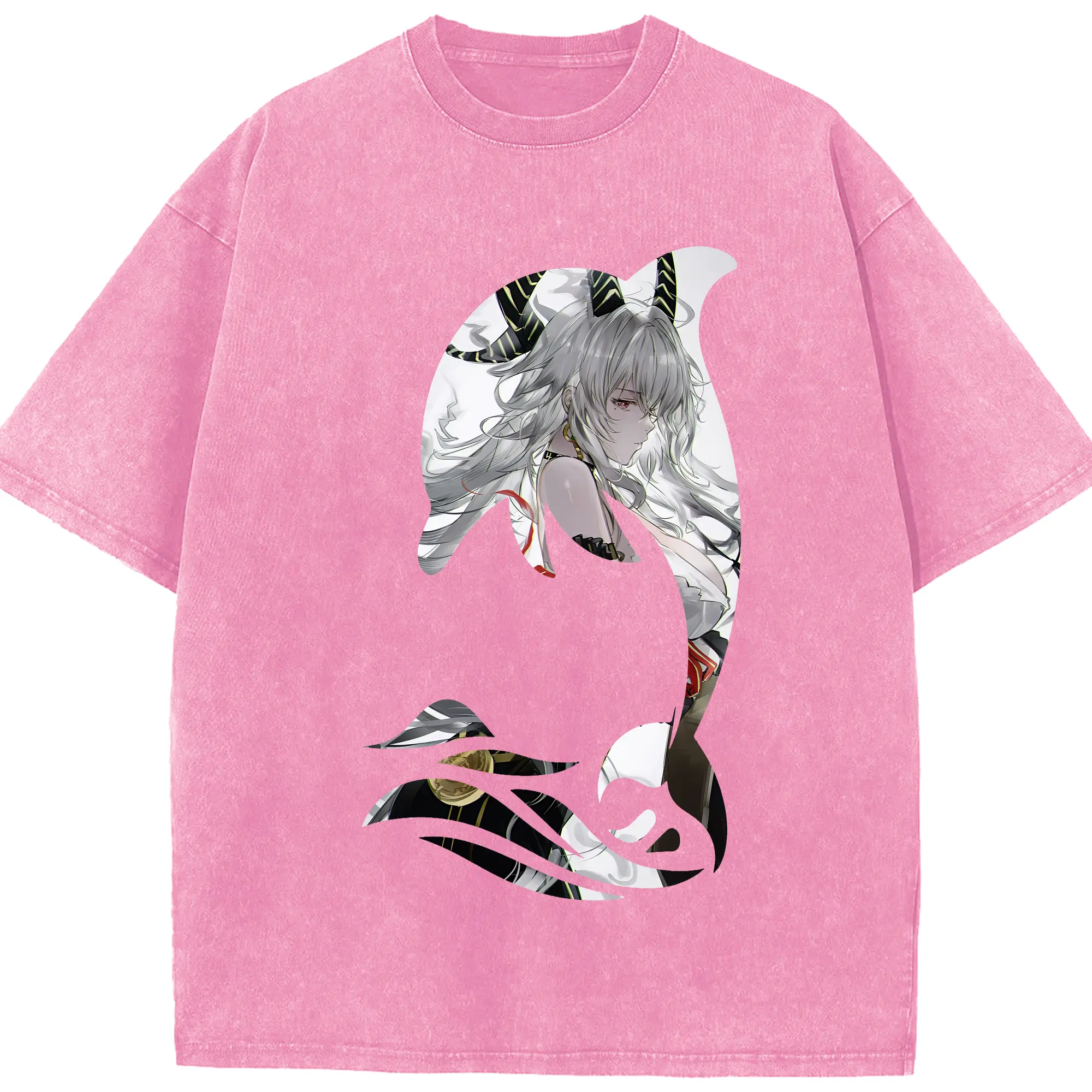 鳴潮 グッズ ザンニー - 綿100% ヴィンテージ風 半袖Tシャツ ・ 背面プリント ・ 柔らか肌触り ・ 通気性 快適 ・ スポーツ カジュアル 外出用