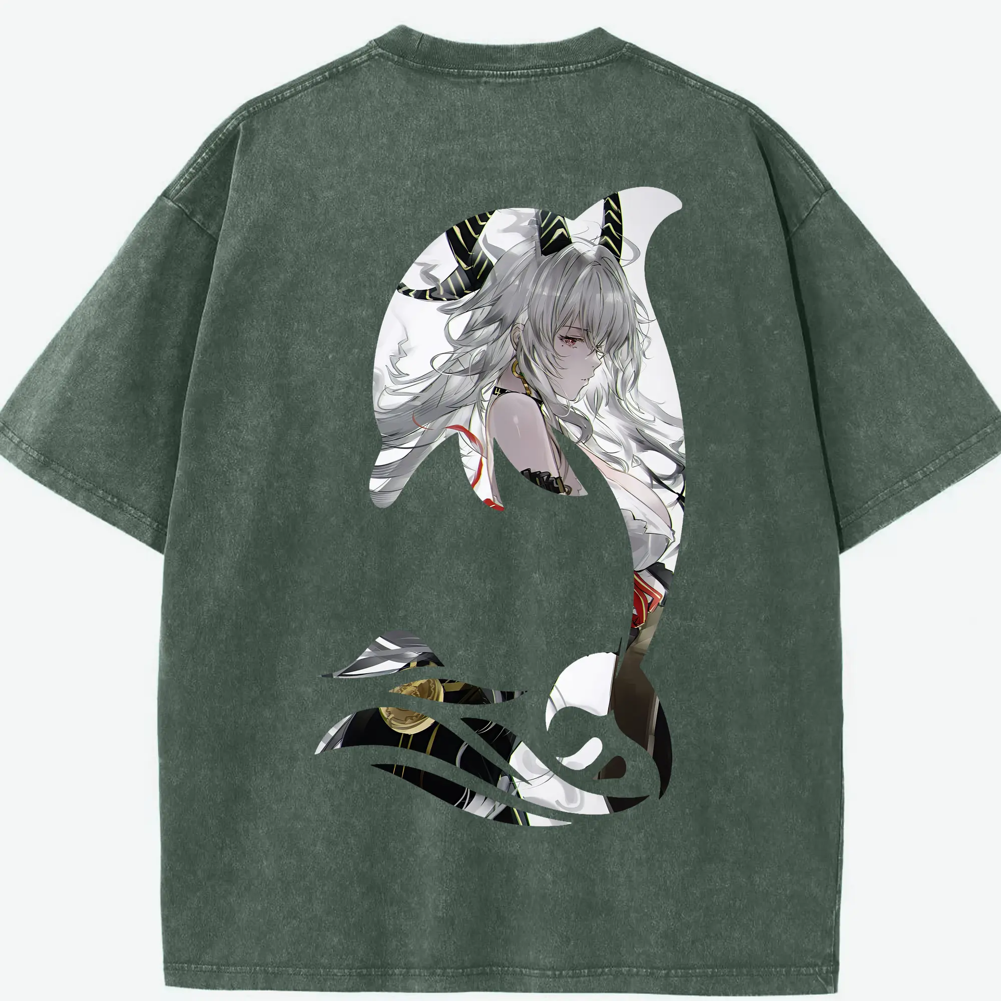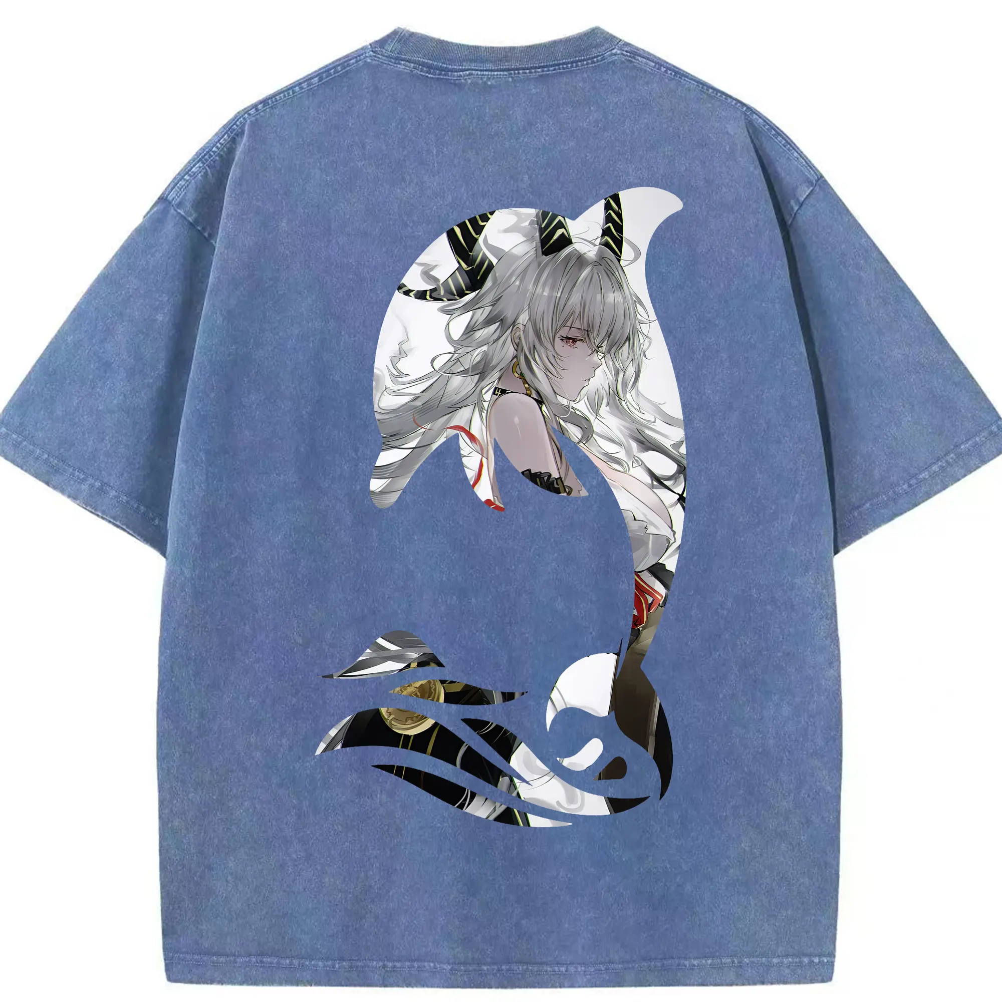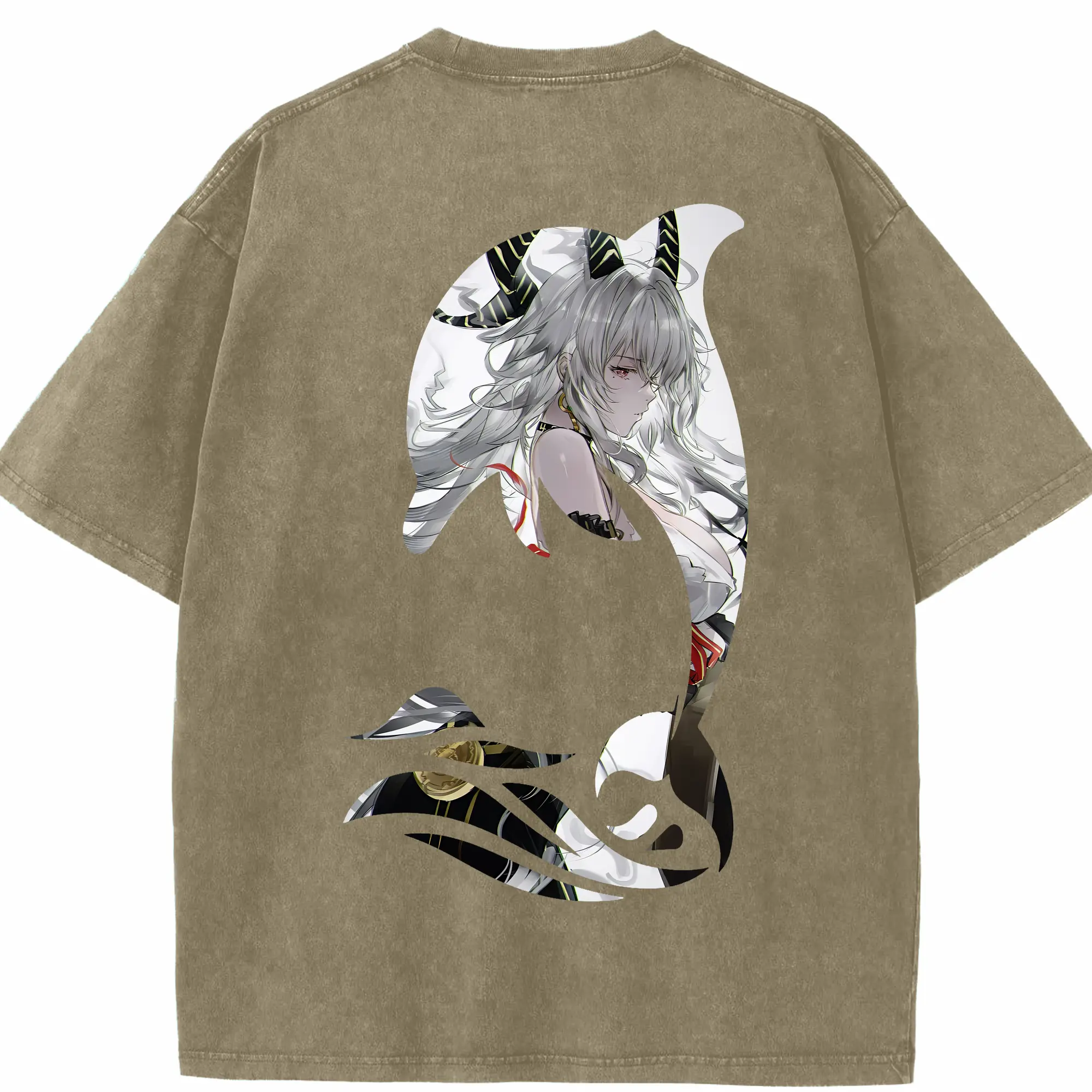 鳴潮 グッズ ショアキーパー - 綿100% ヴィンテージ風 半袖Tシャツ ・ 背面プリント ・ 柔らか肌触り ・ 通気性 快適 ・ スポーツ カジュアル 外出用