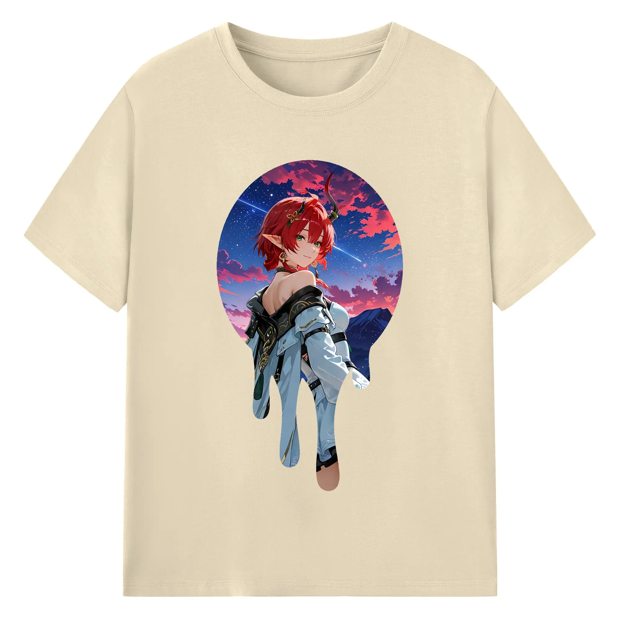 鳴潮 グッズ シャコンヌ - 綿100% ヴィンテージ風 半袖Tシャツ ・ 背面プリント ・ 柔らか肌触り ・ 通気性 快適 ・ スポーツ カジュアル 外出用