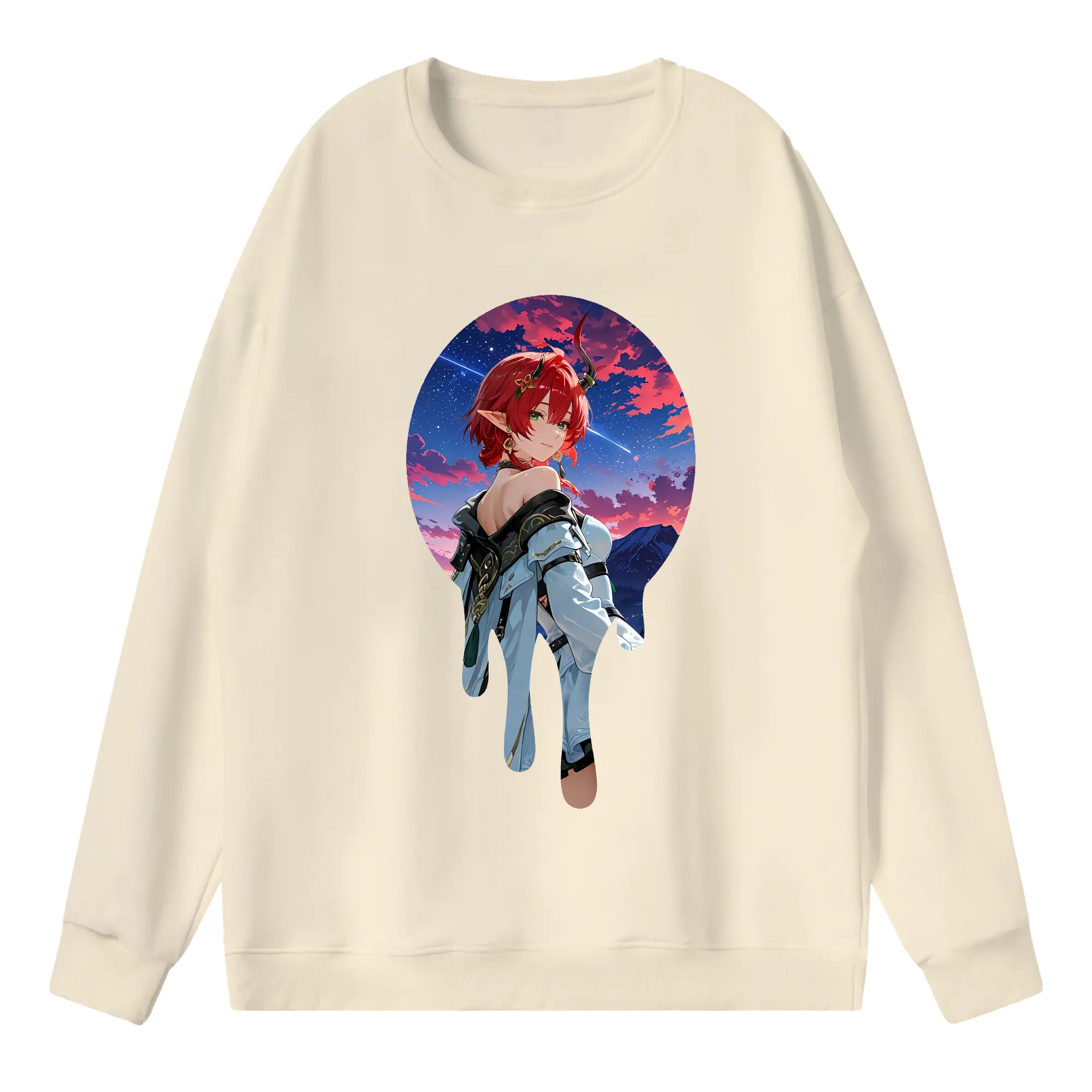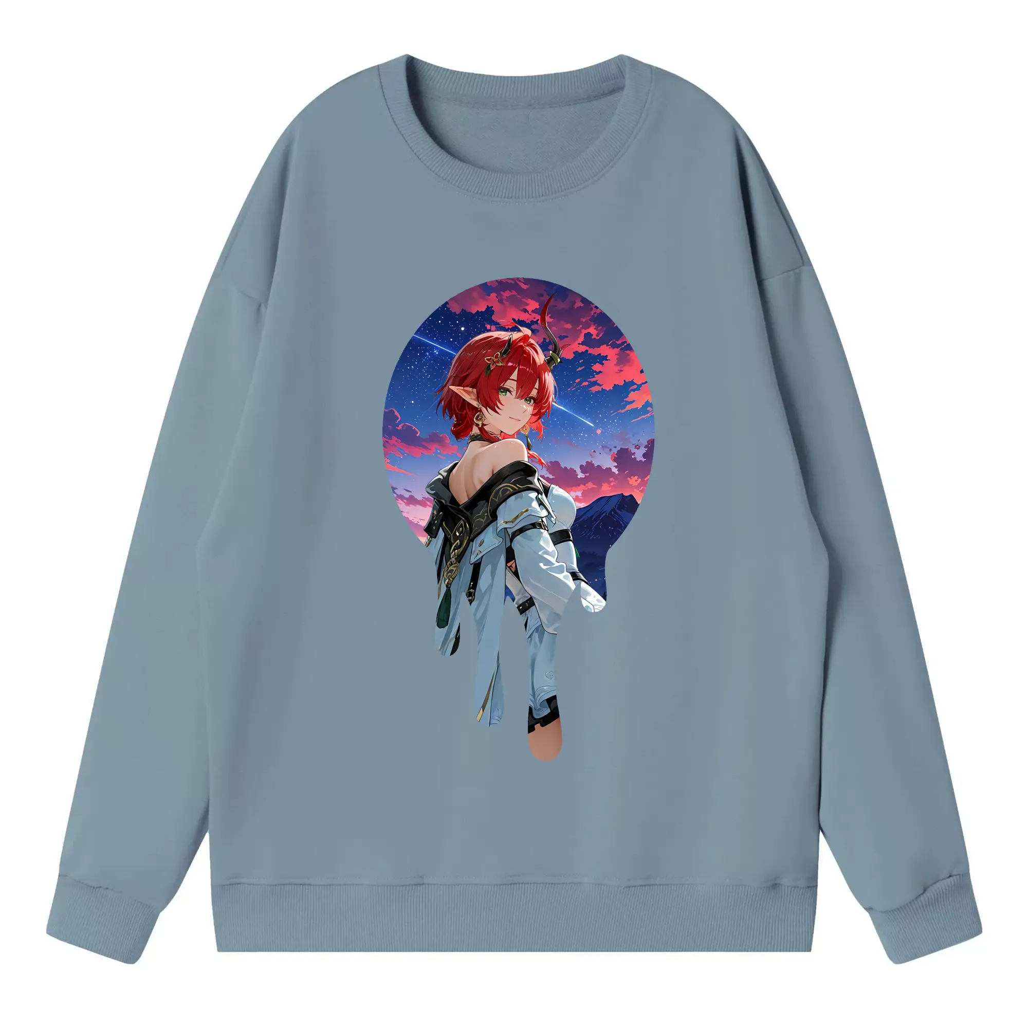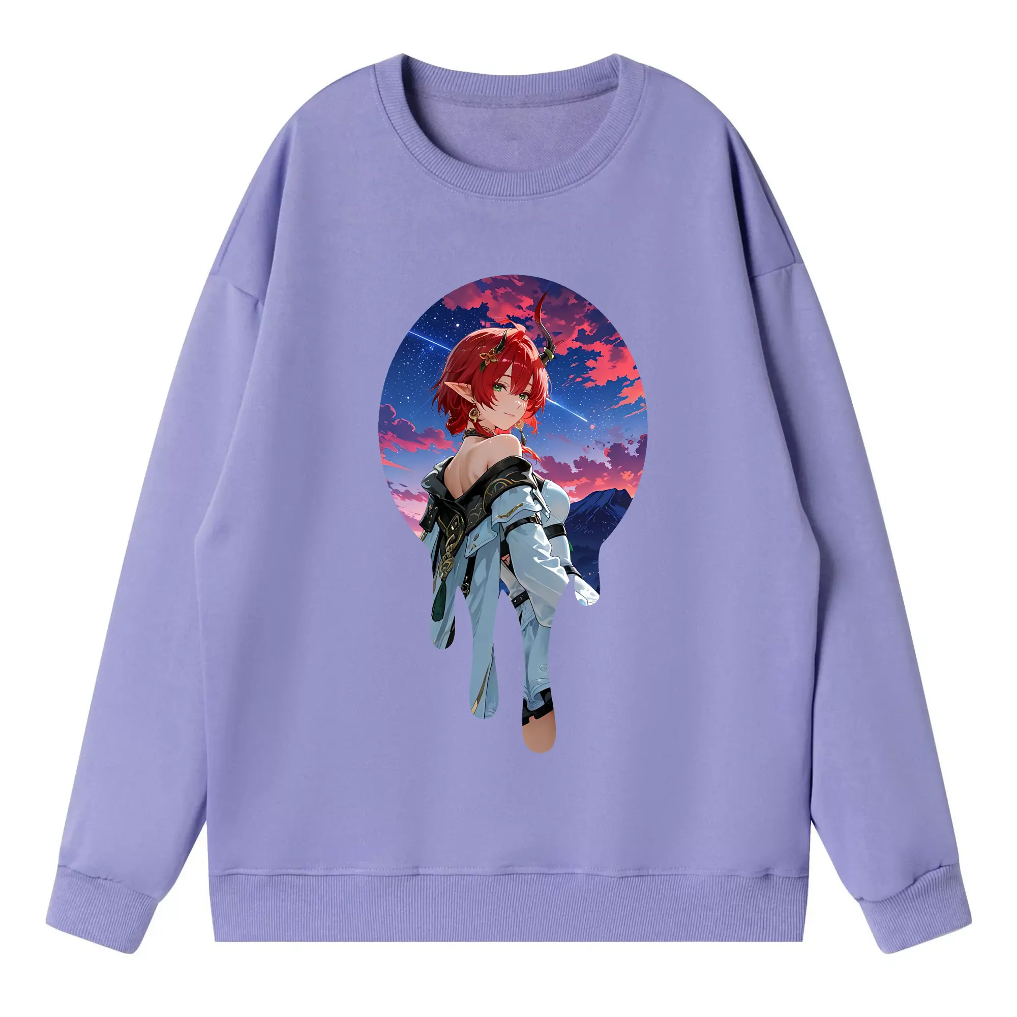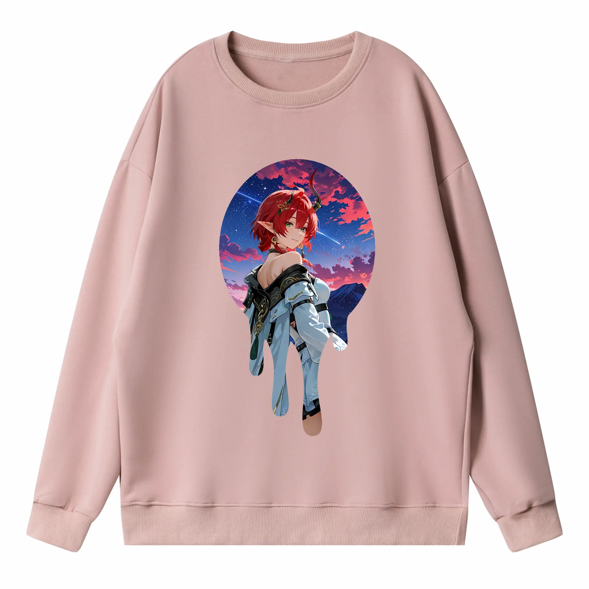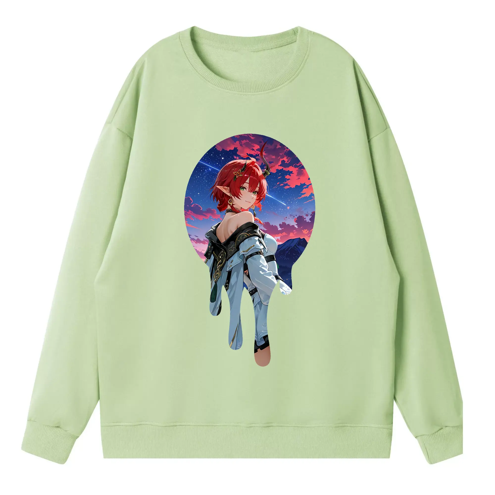 葬送のフリーレン(Frieren) グッズ,フェルン(Fern) - 薄手 クルーネック スウェット 裏毛260g · ポリエステル 春秋向け カジュアル 男女兼用 · トレーナー デイリー スポーツ 散歩に最適