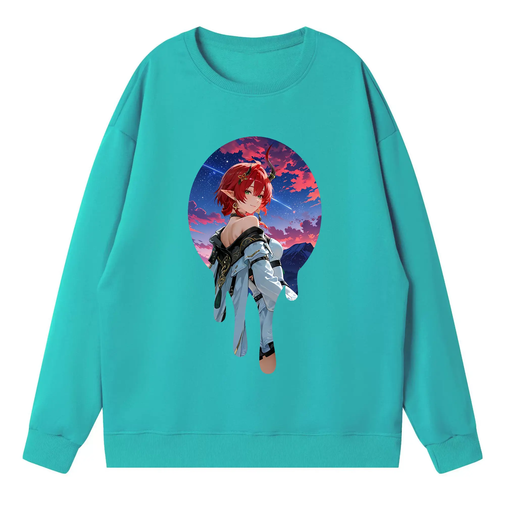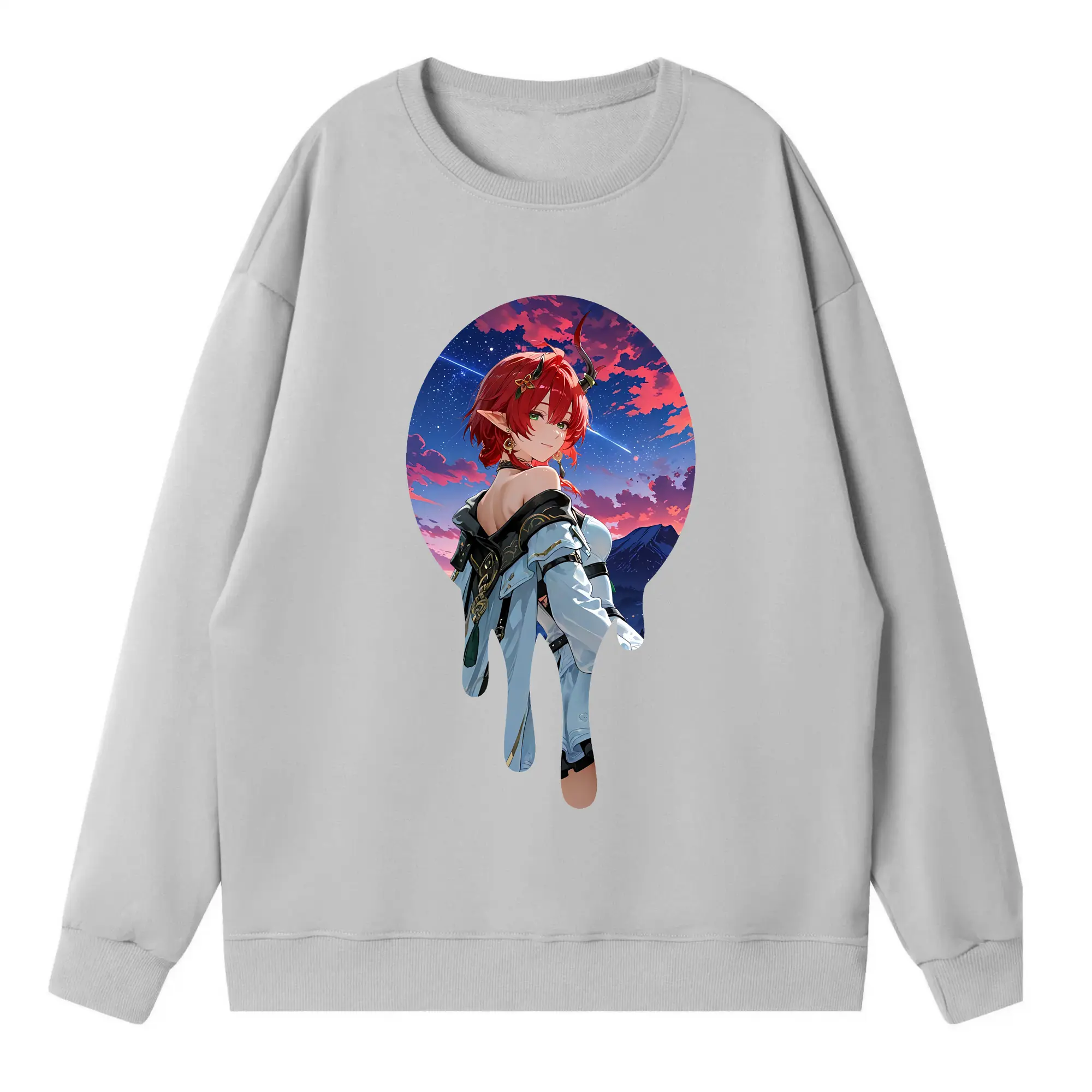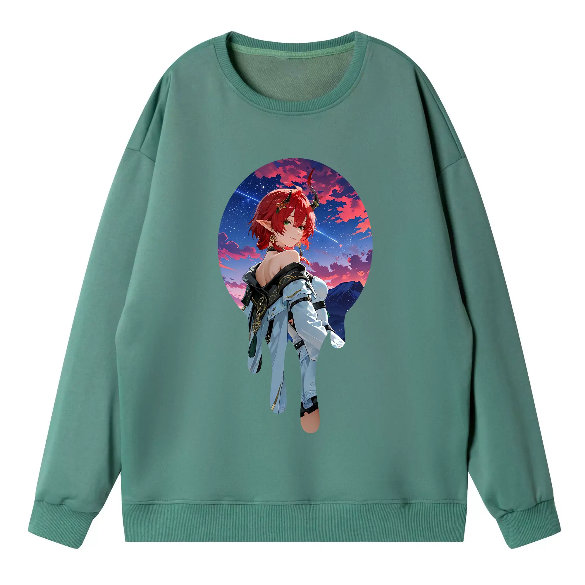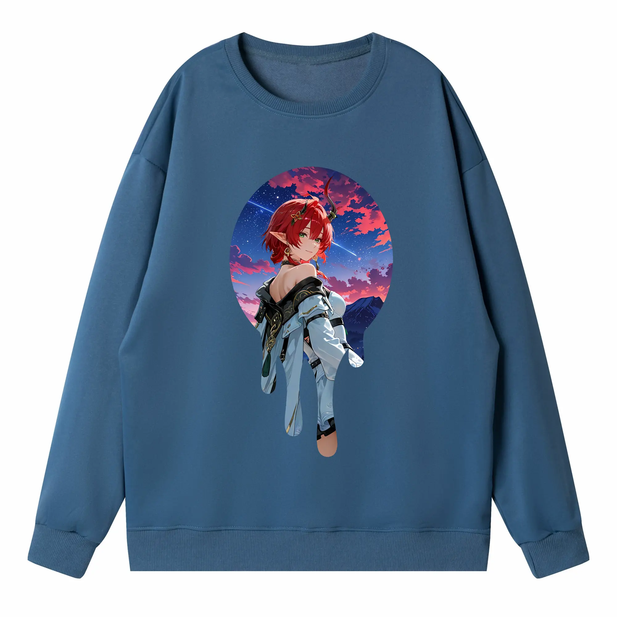 葬送のフリーレン(Frieren) グッズ,フェルン(Fern) - 薄手 クルーネック スウェット 裏毛260g · ポリエステル 春秋向け カジュアル 男女兼用 · トレーナー デイリー スポーツ 散歩に最適