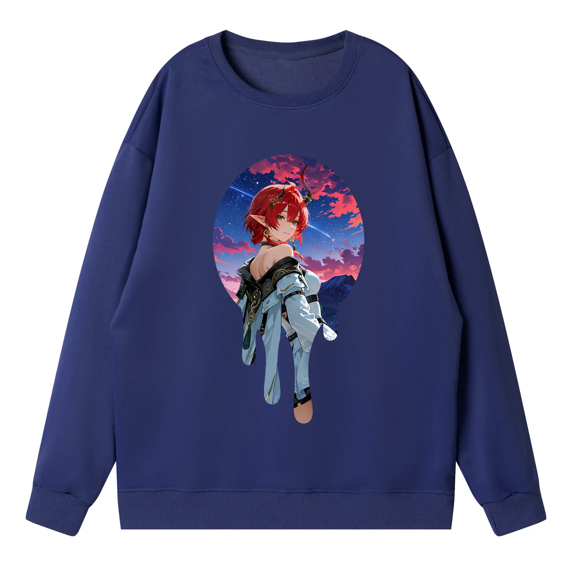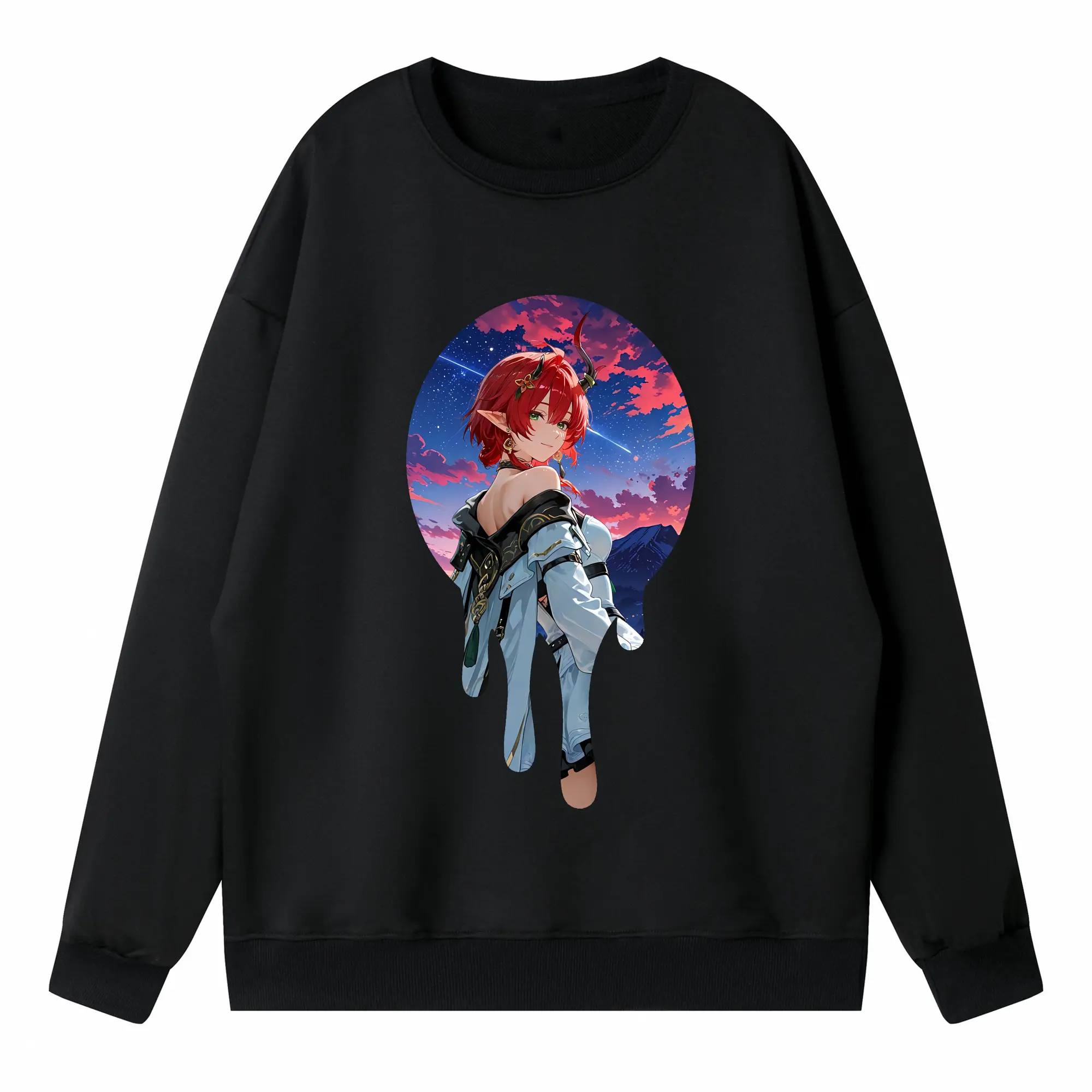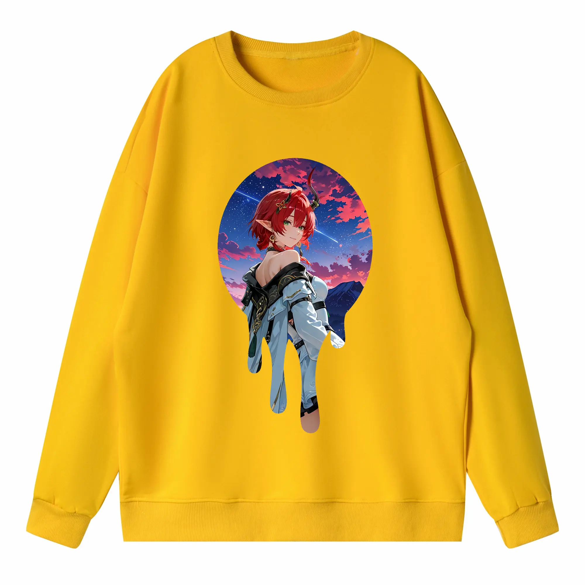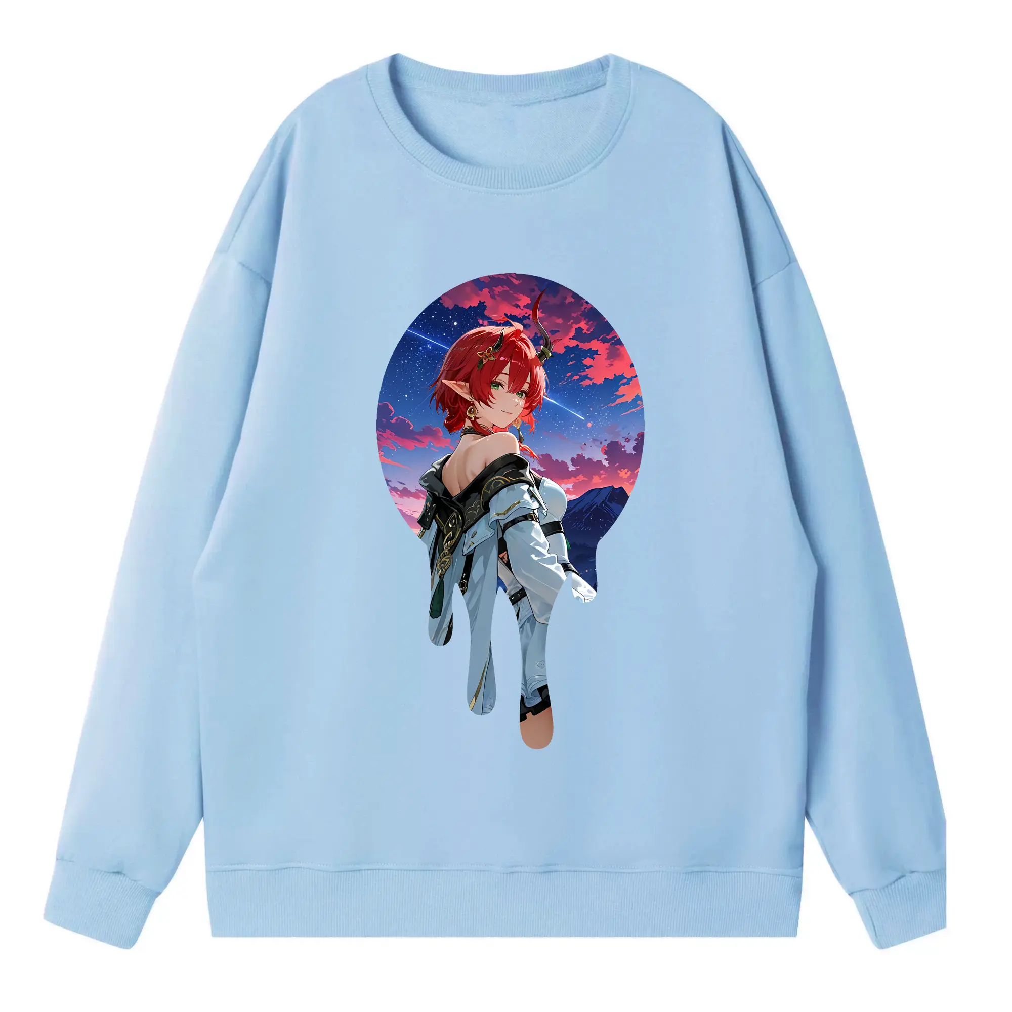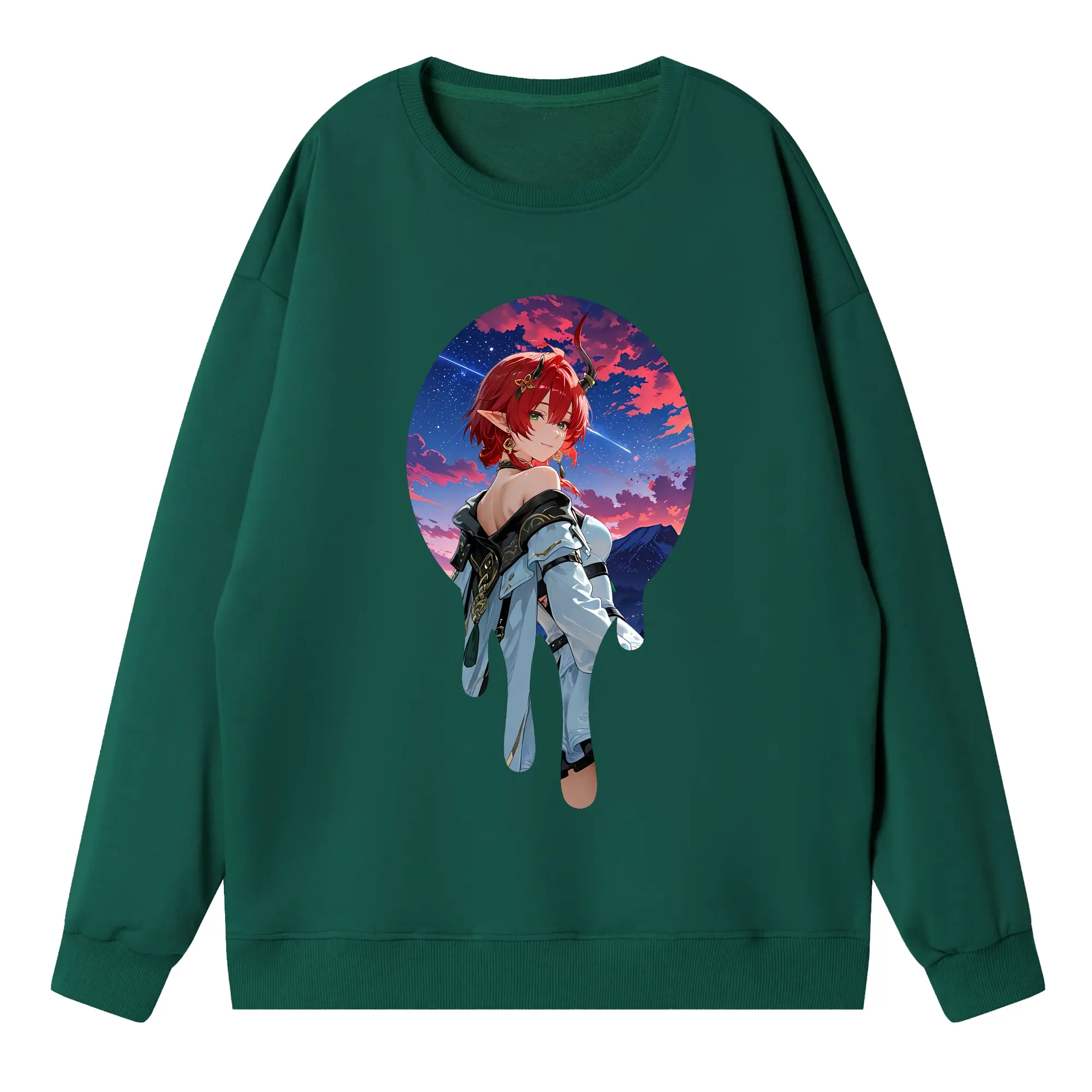 葬送のフリーレン(Frieren) グッズ,フェルン(Fern) - 薄手 クルーネック スウェット 裏毛260g · ポリエステル 春秋向け カジュアル 男女兼用 · トレーナー デイリー スポーツ 散歩に最適