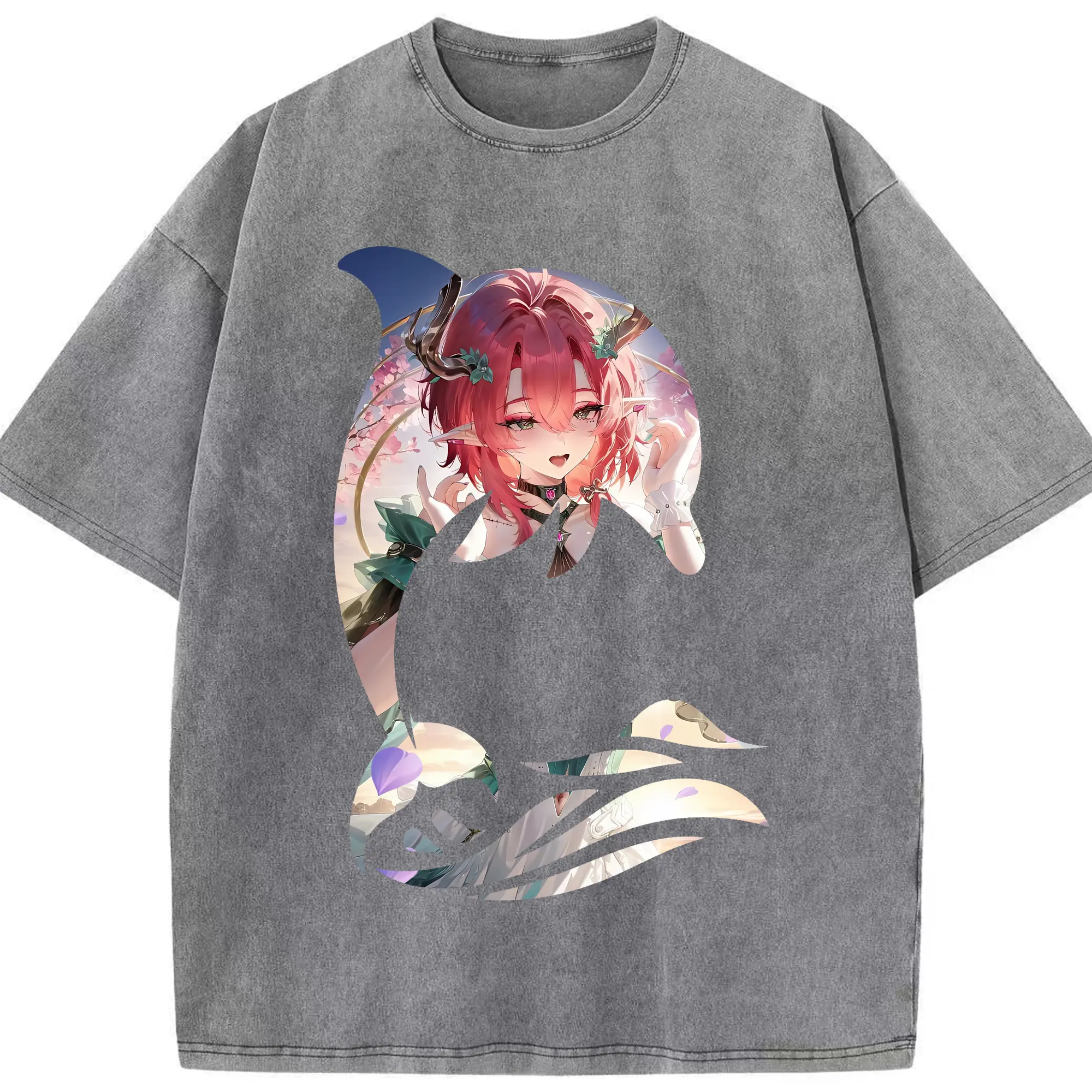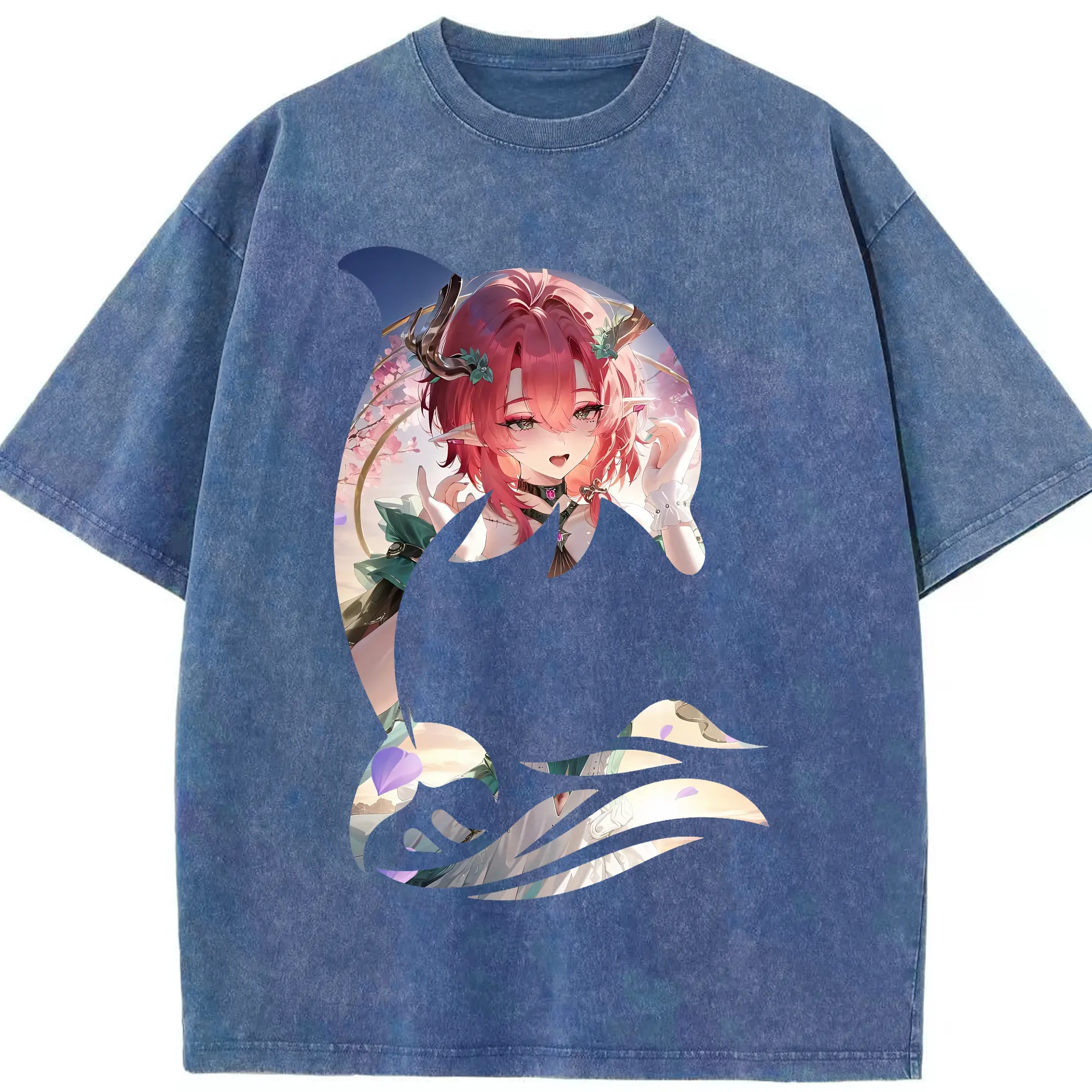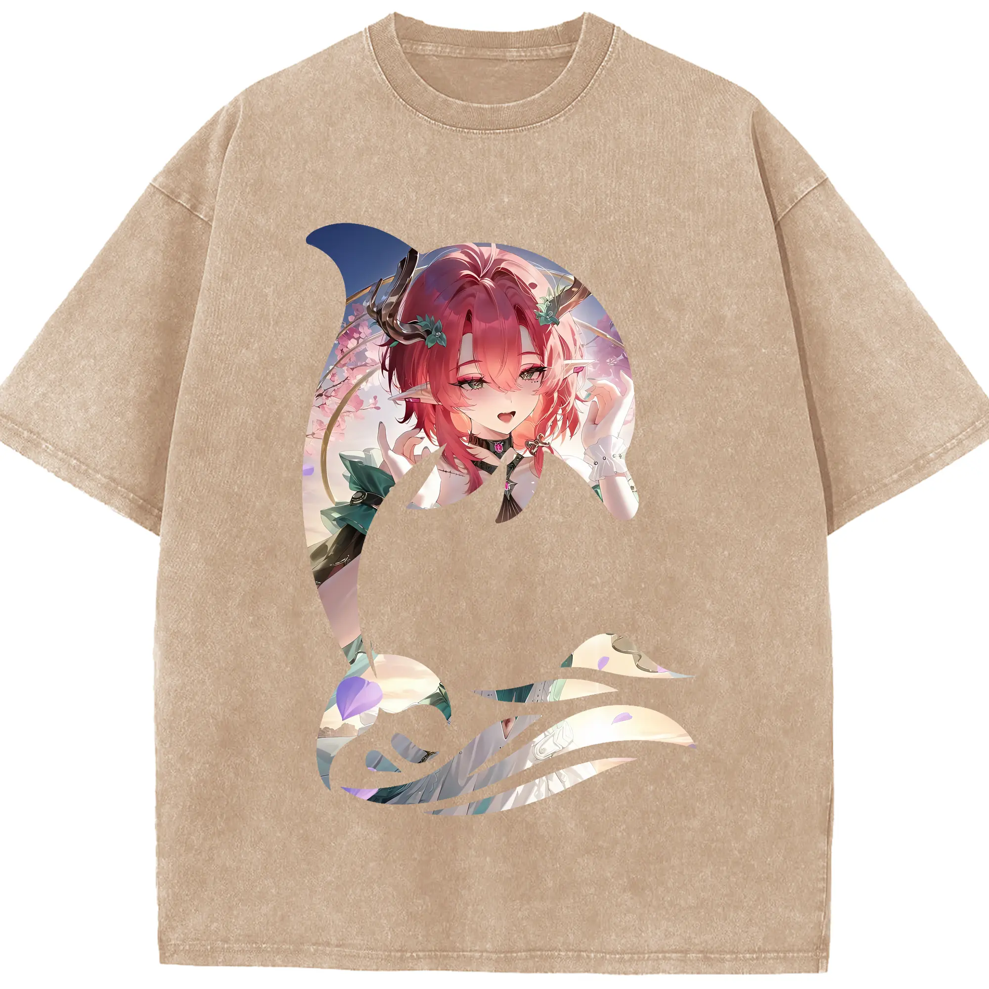 鳴潮 グッズ シャコンヌ - 綿100% ヴィンテージ風 半袖Tシャツ ・ 背面プリント ・ 柔らか肌触り ・ 通気性 快適 ・ スポーツ カジュアル 外出用