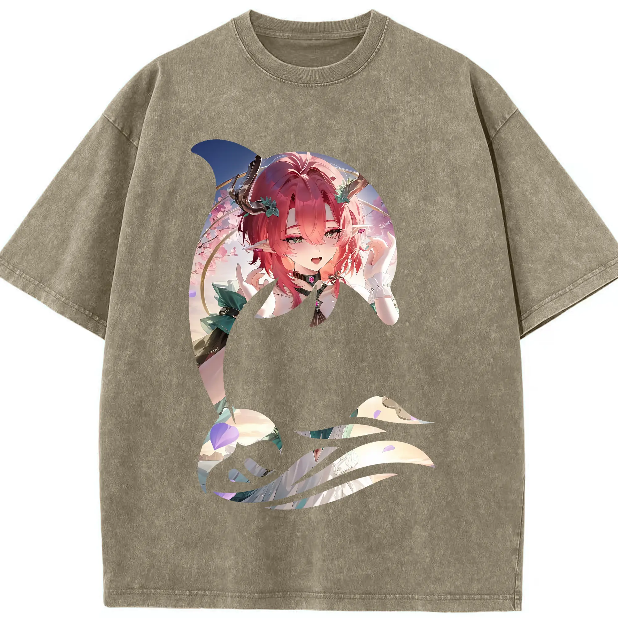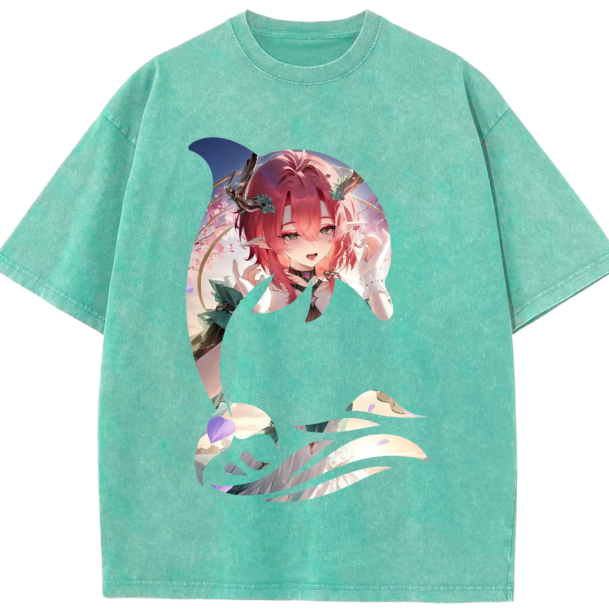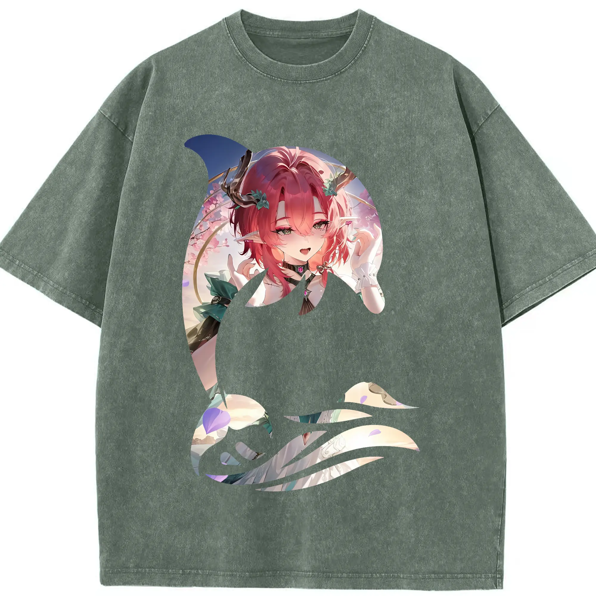 鳴潮 グッズ シャコンヌ - 綿100% ヴィンテージ風 半袖Tシャツ ・ 背面プリント ・ 柔らか肌触り ・ 通気性 快適 ・ スポーツ カジュアル 外出用
