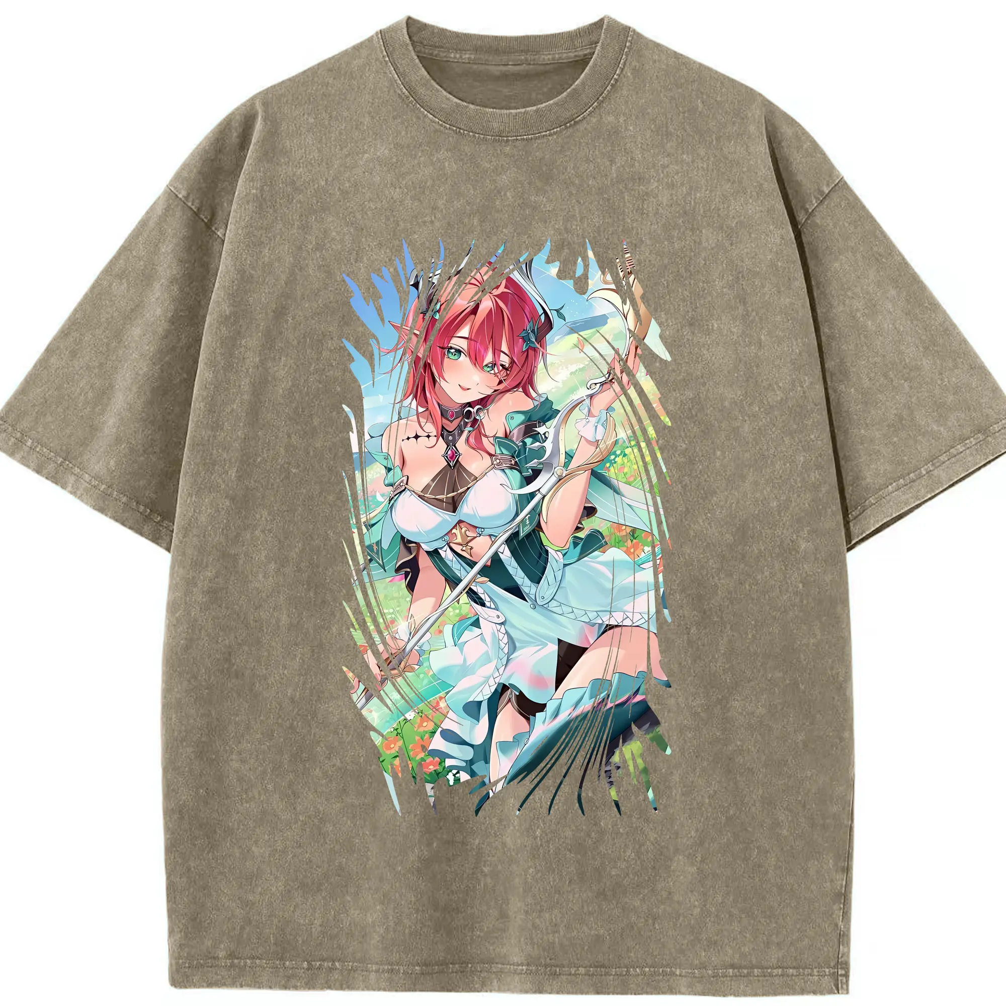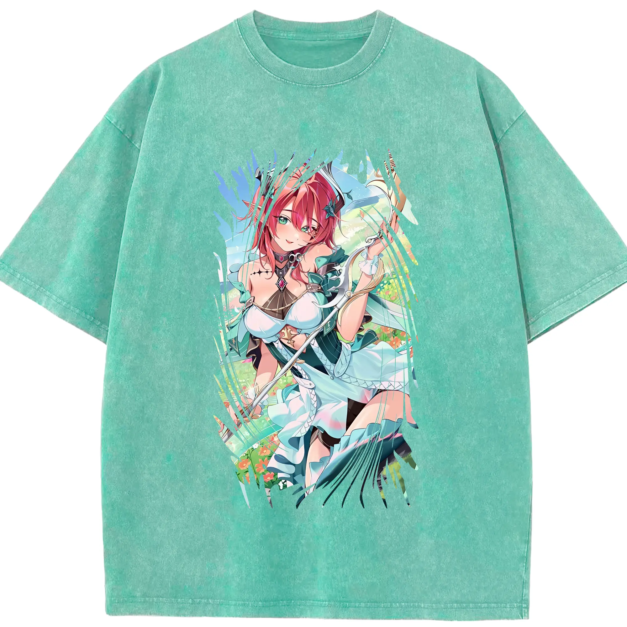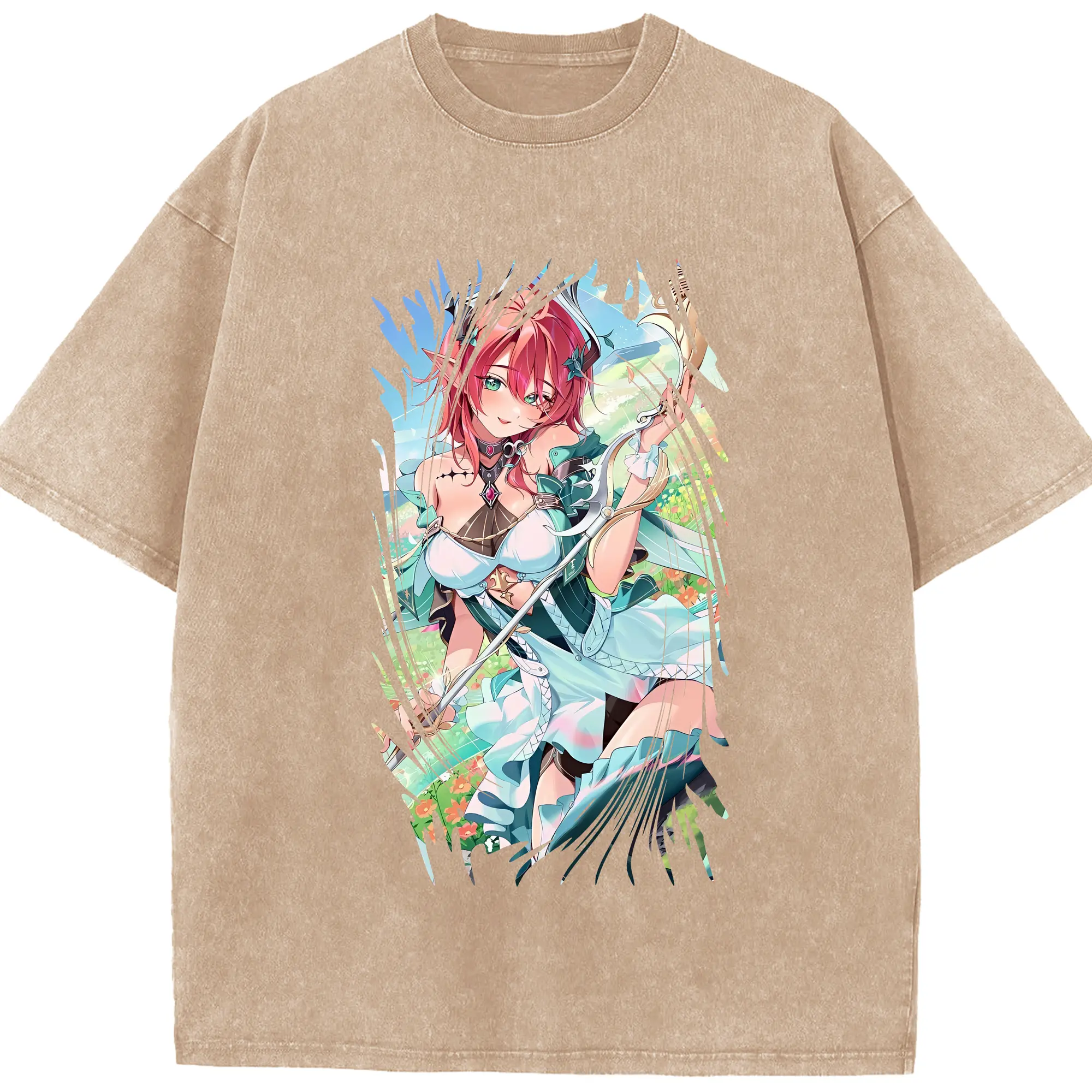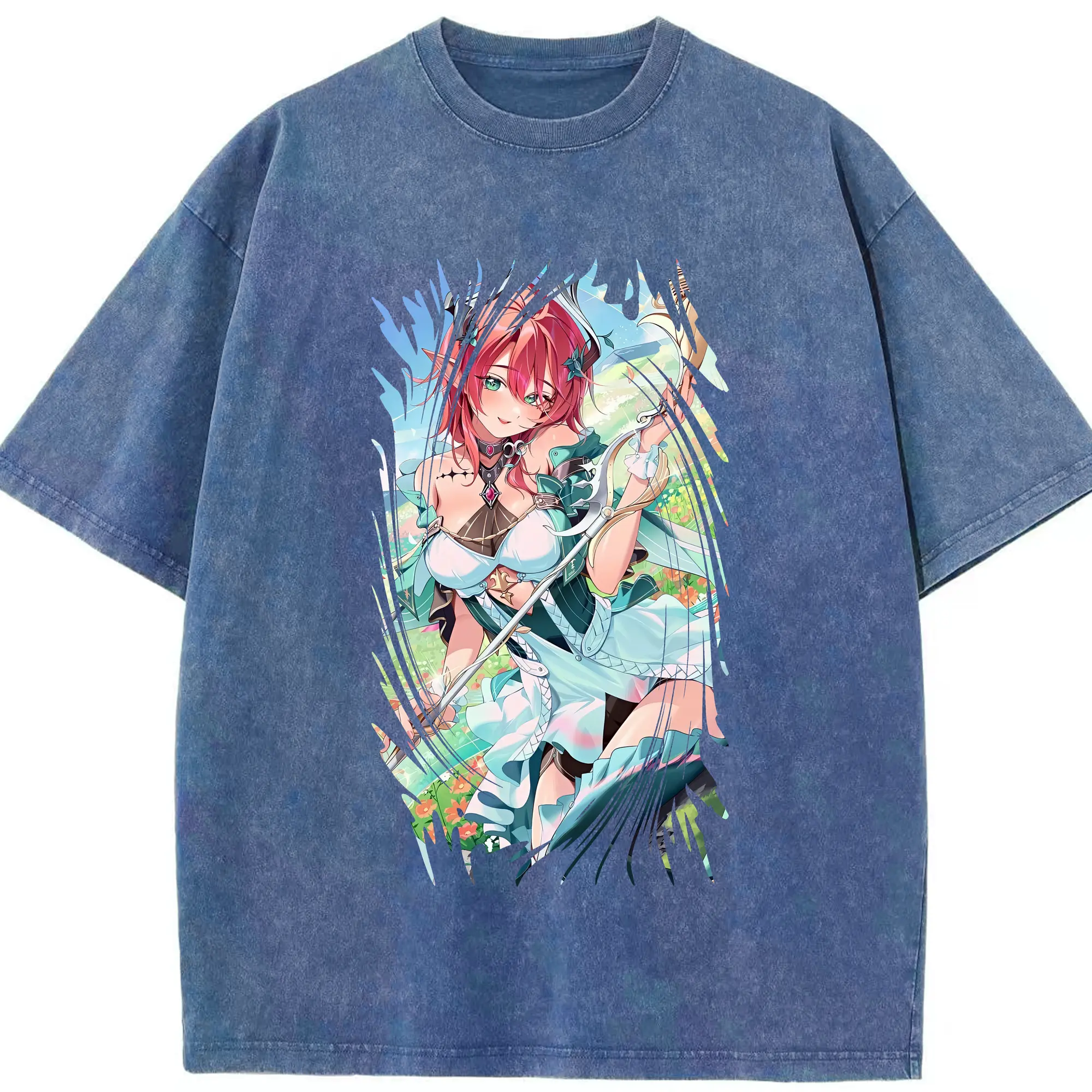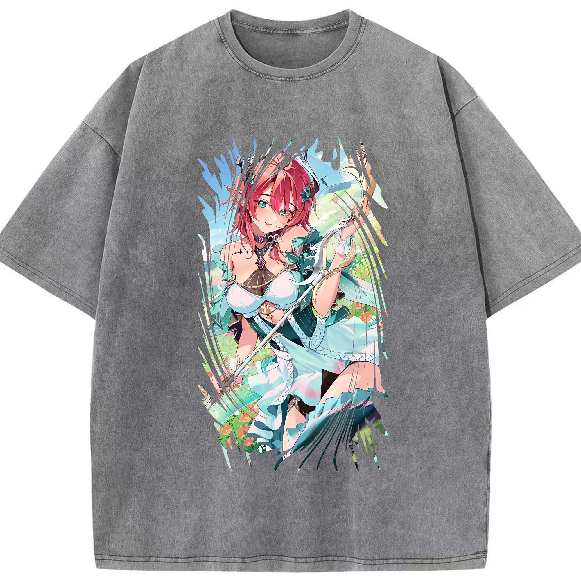 鳴潮 グッズ シャコンヌ - 綿100% ヴィンテージ風 半袖Tシャツ ・ 背面プリント ・ 柔らか肌触り ・ 通気性 快適 ・ スポーツ カジュアル 外出用