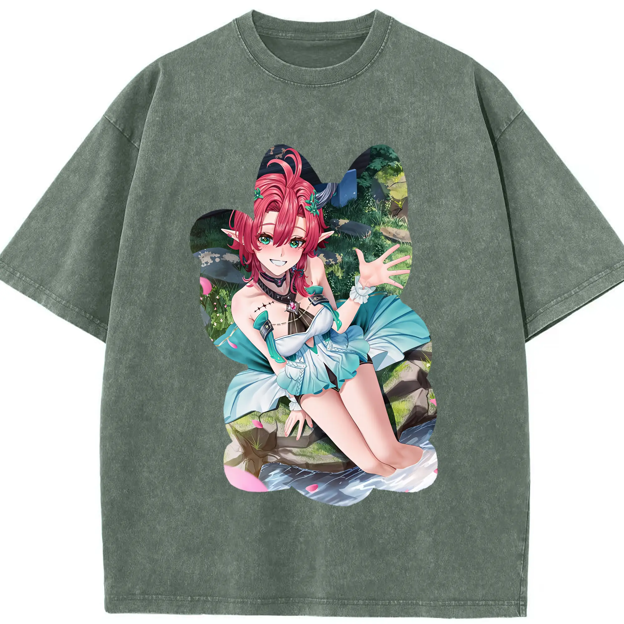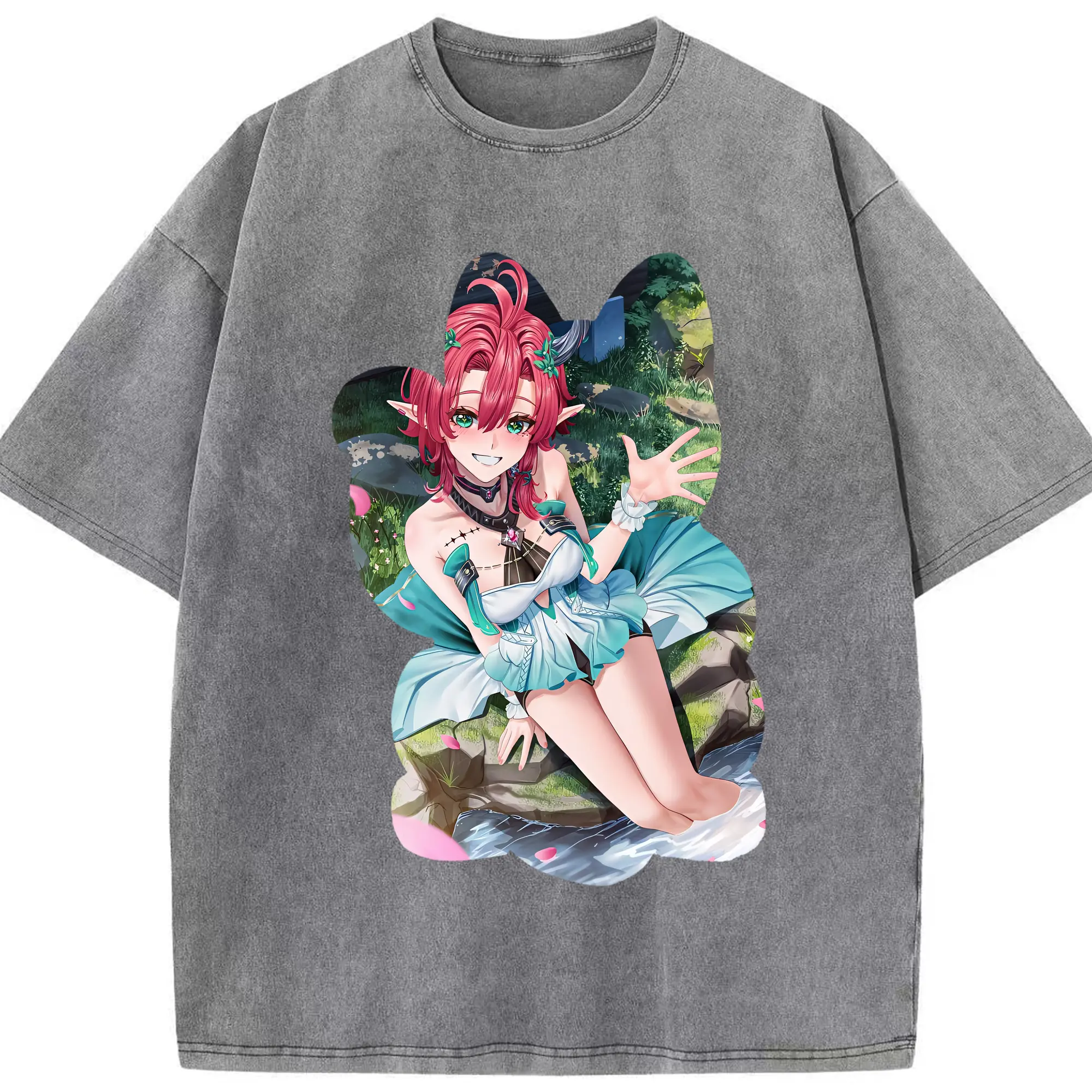鳴潮 グッズ シャコンヌ - 綿100% ヴィンテージ風 半袖Tシャツ ・ 背面プリント ・ 柔らか肌触り ・ 通気性 快適 ・ スポーツ カジュアル 外出用