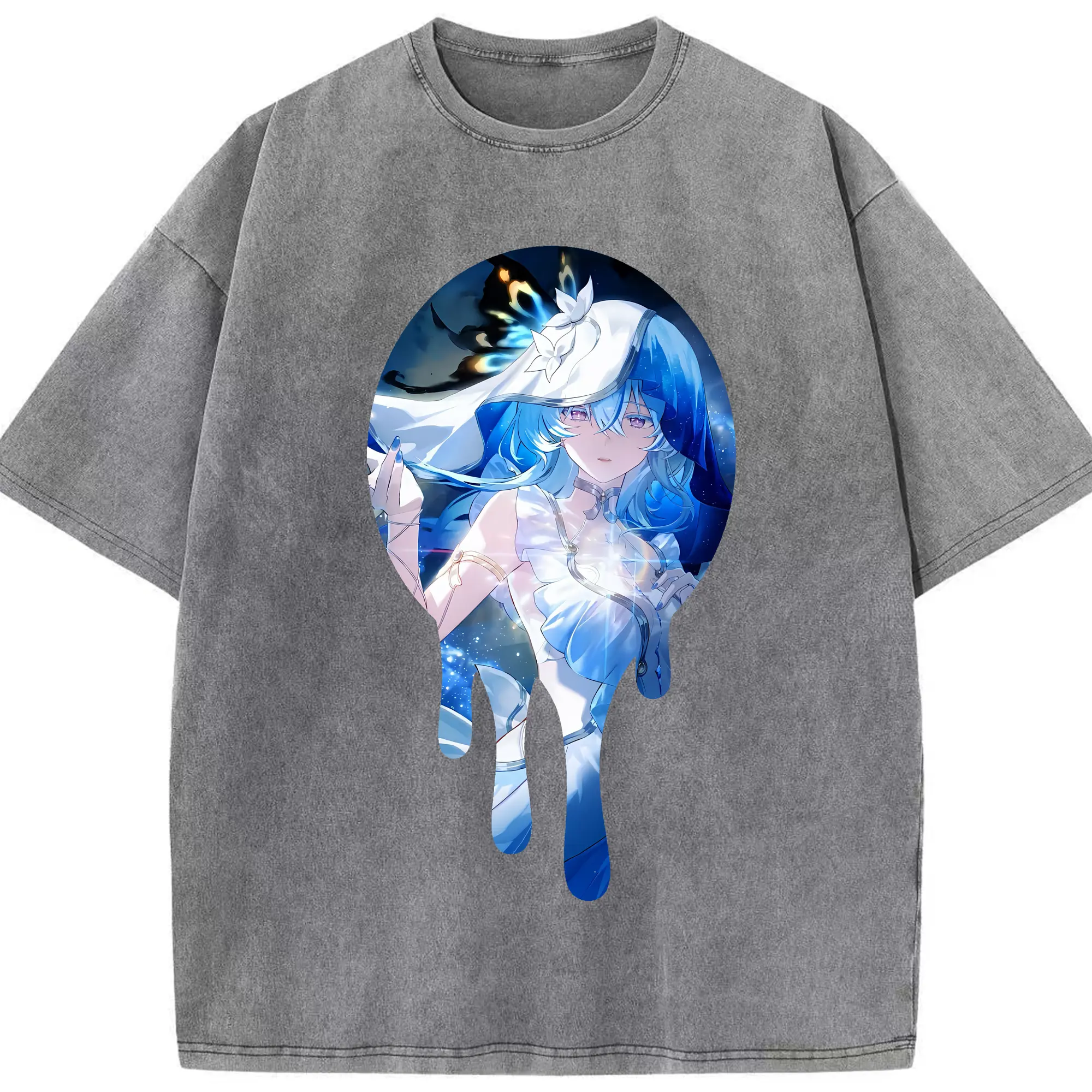 鳴潮 グッズ ショアキーパー - 綿100% ヴィンテージ風 半袖Tシャツ ・ 背面プリント ・ 柔らか肌触り ・ 通気性 快適 ・ スポーツ カジュアル 外出用