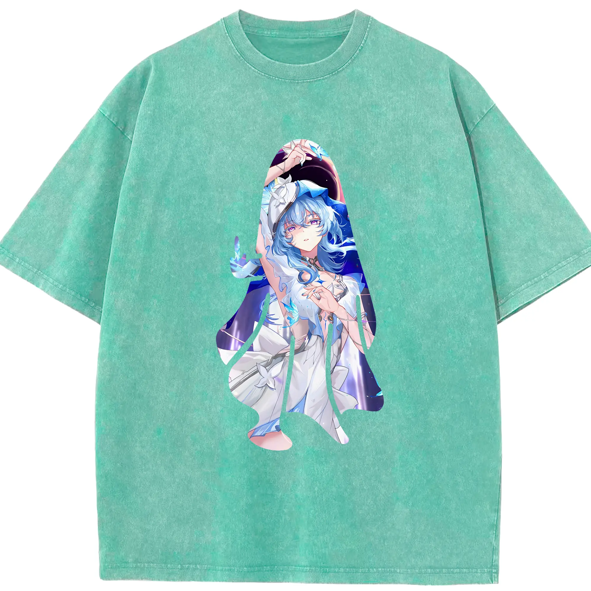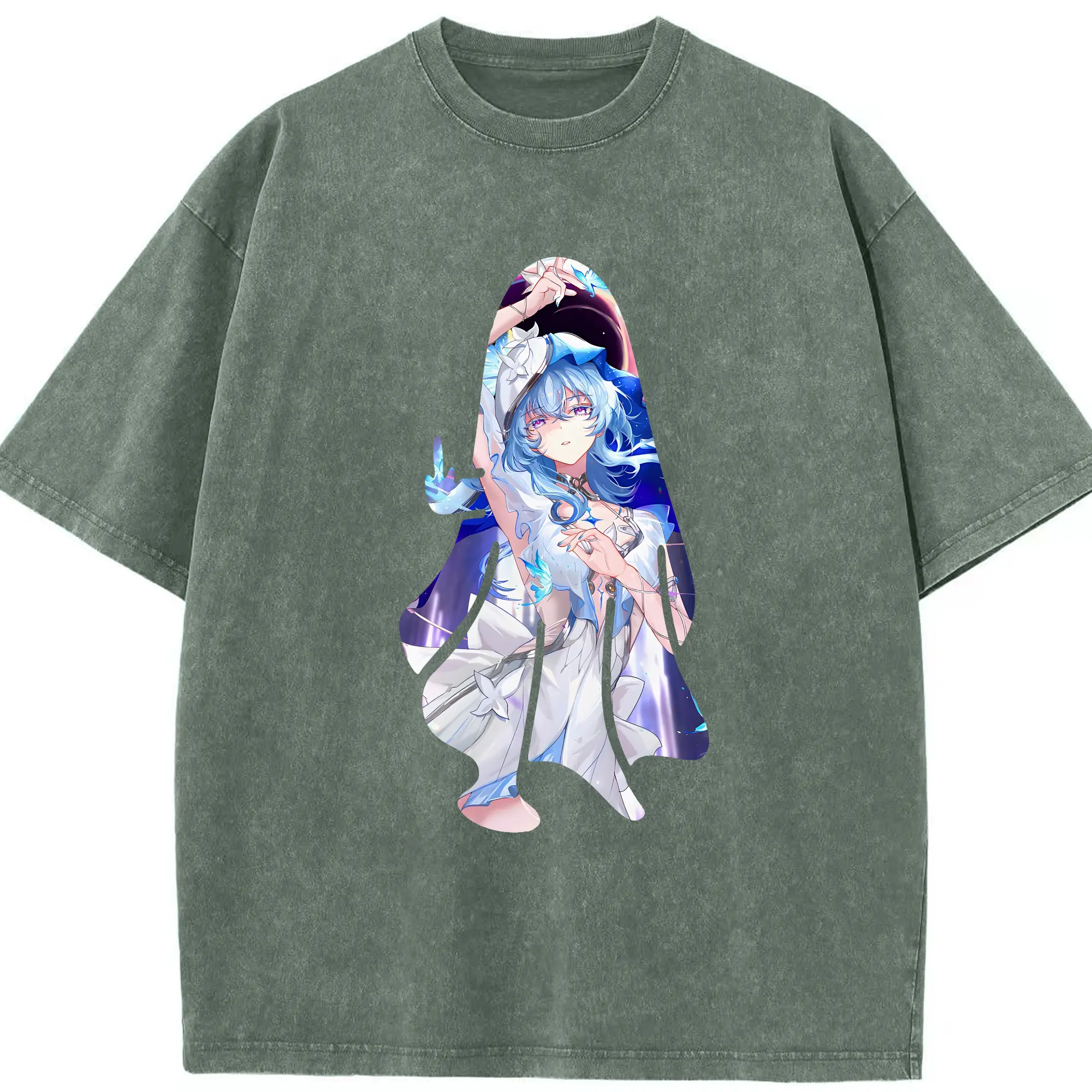鳴潮 グッズ ショアキーパー - 綿100% ヴィンテージ風 半袖Tシャツ ・ 背面プリント ・ 柔らか肌触り ・ 通気性 快適 ・ スポーツ カジュアル 外出用