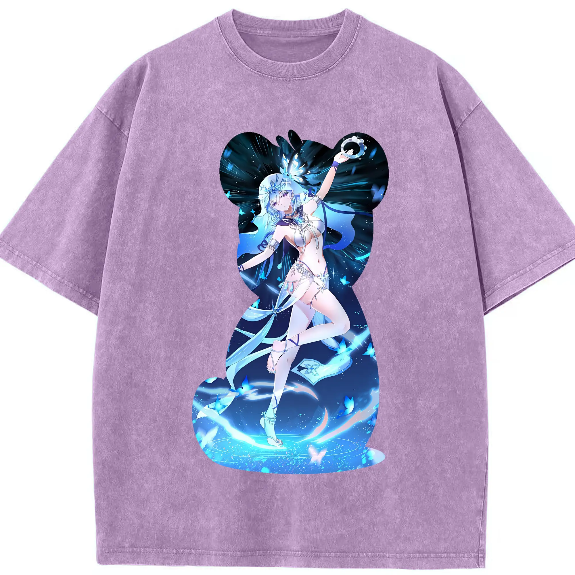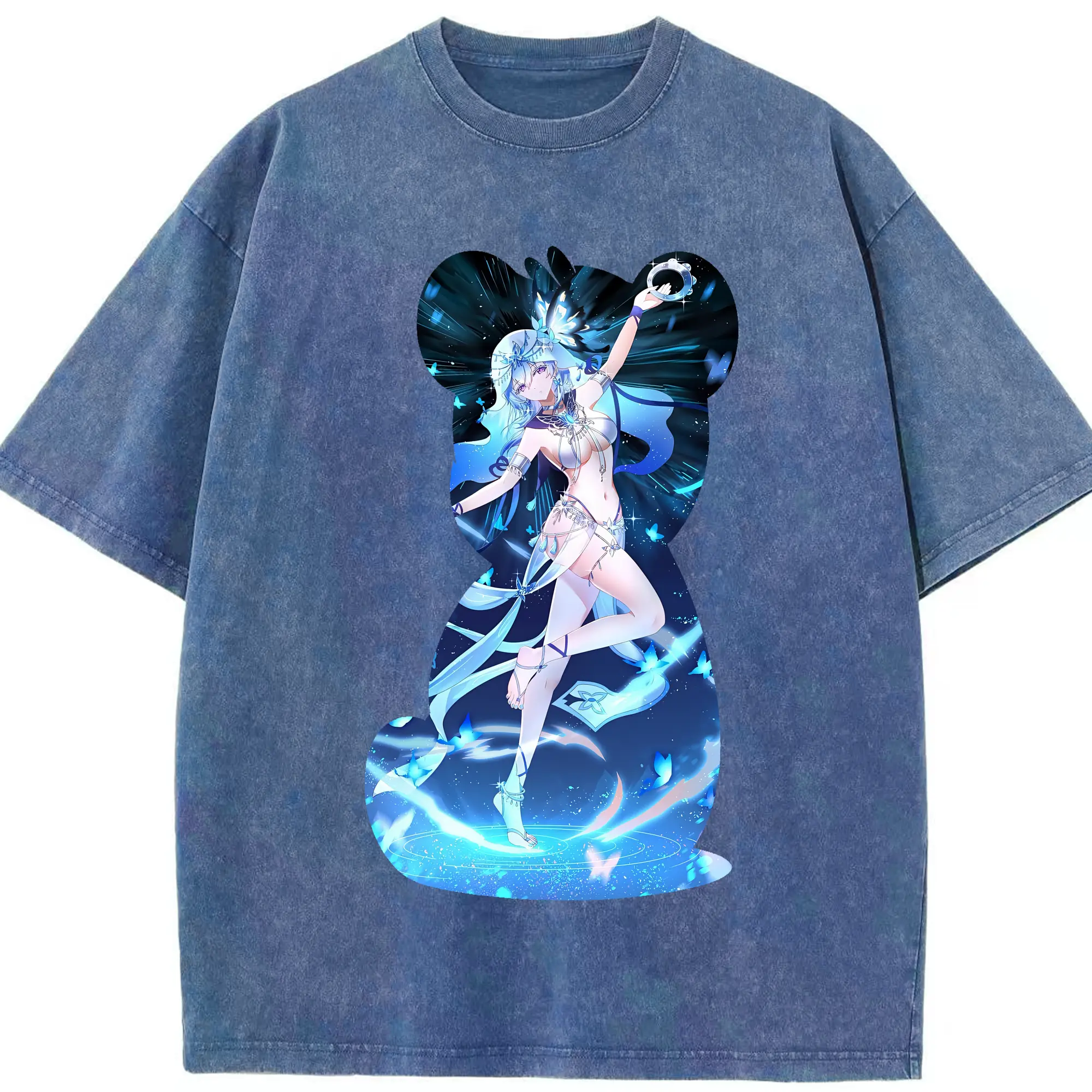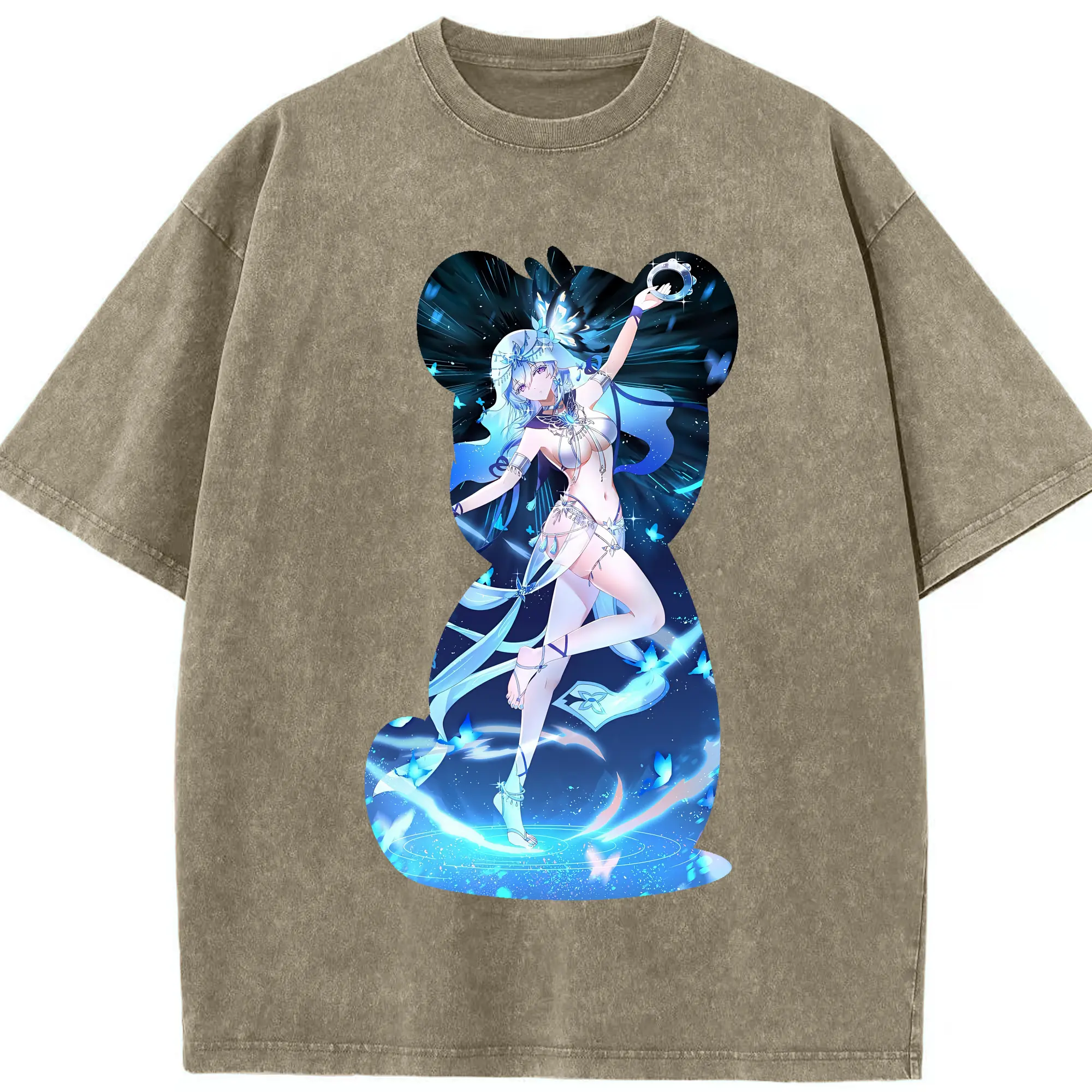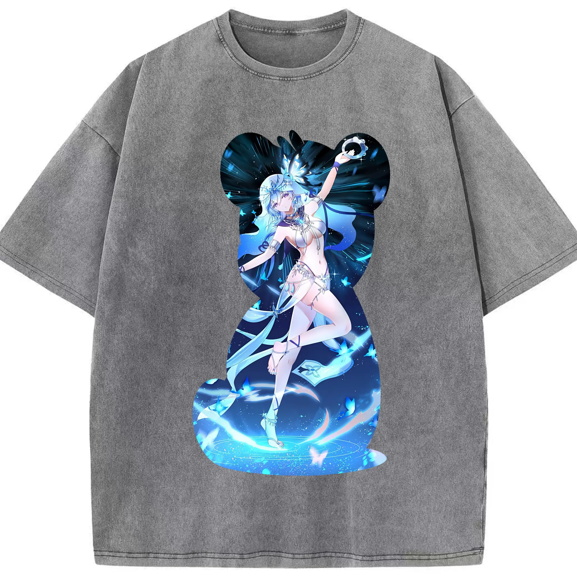 鳴潮 グッズ ショアキーパー - 綿100% ヴィンテージ風 半袖Tシャツ ・ 背面プリント ・ 柔らか肌触り ・ 通気性 快適 ・ スポーツ カジュアル 外出用