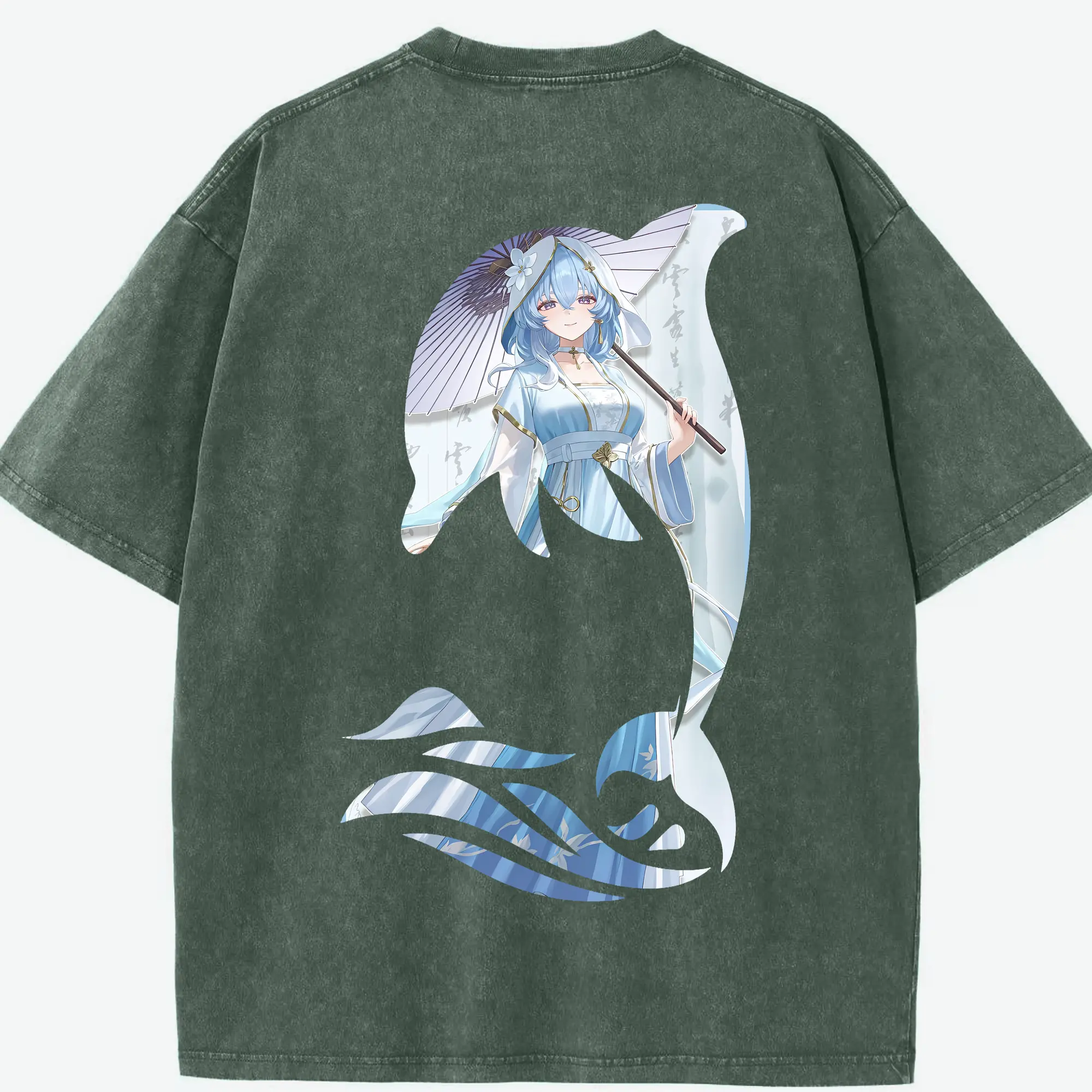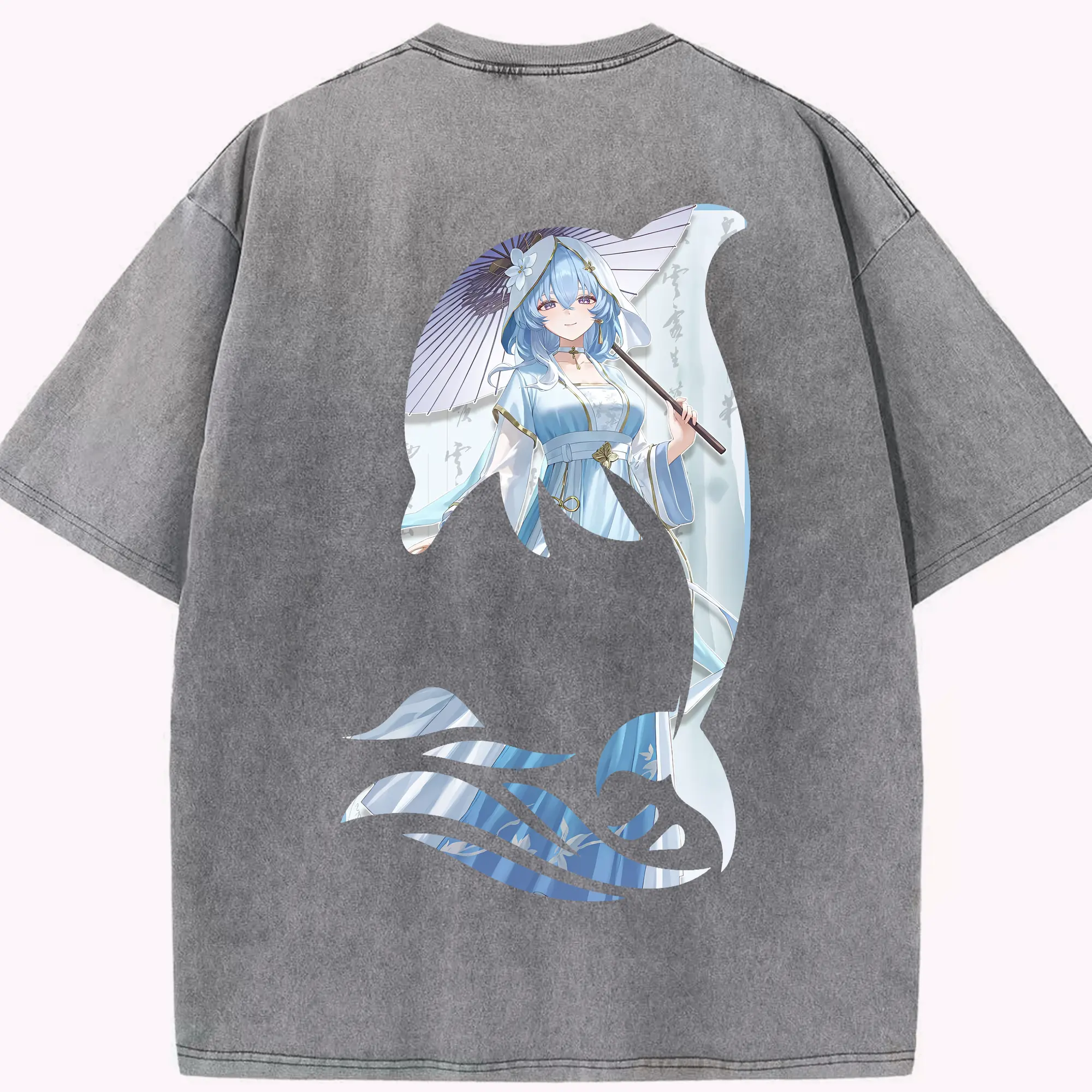 鳴潮 グッズ カルテジア - 綿100% ヴィンテージ風 半袖Tシャツ ・ 背面プリント ・ 柔らか肌触り ・ 通気性 快適 ・ スポーツ カジュアル 外出用