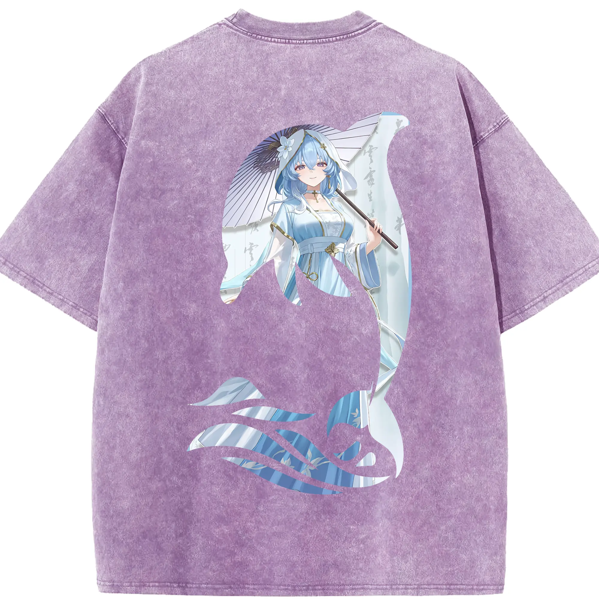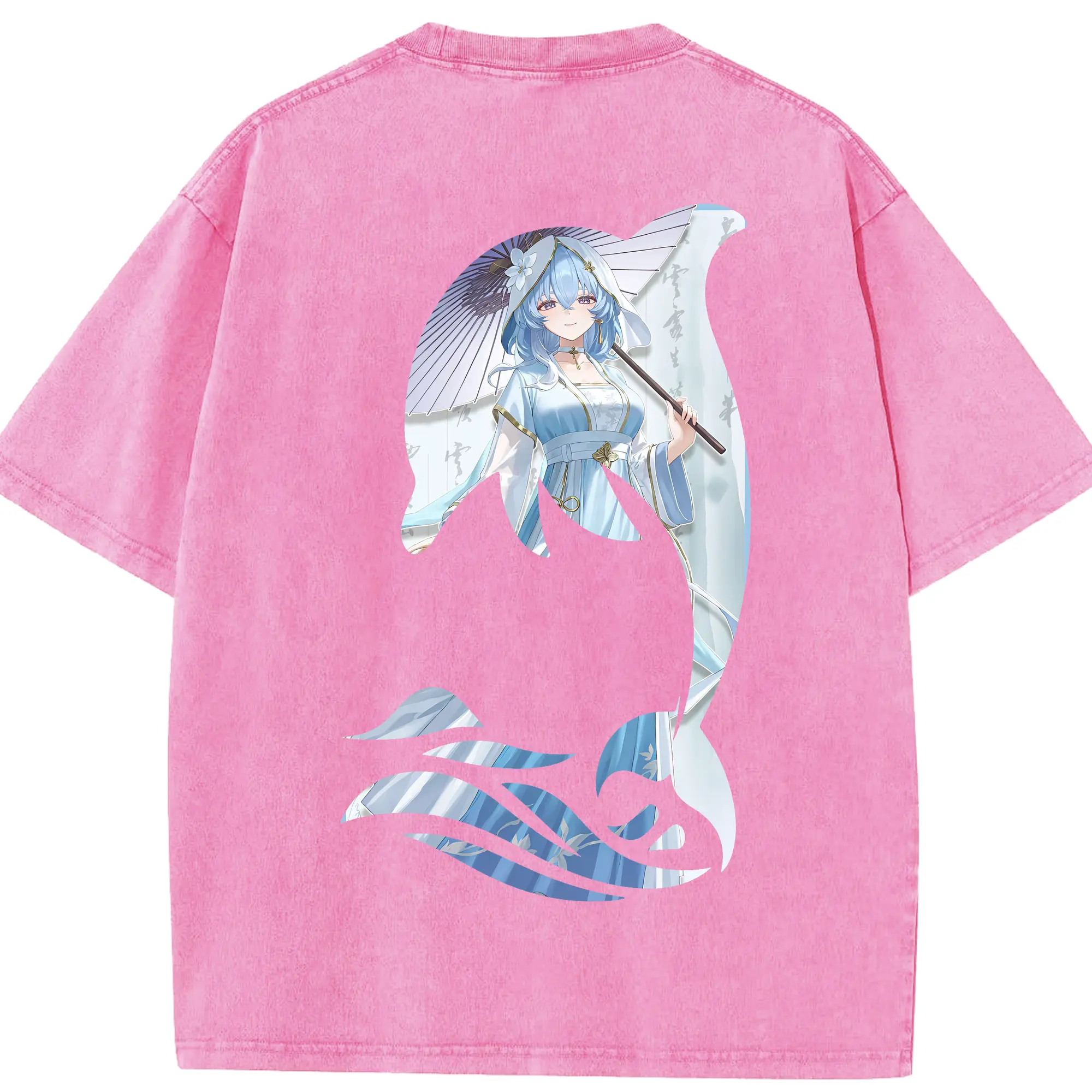 原 神 グッズ 雷電将軍 - 綿100% ヴィンテージ風 半袖Tシャツ ・ 背面プリント ・ 柔らか肌触り ・ 通気性 快適 ・ スポーツ カジュアル 外出用