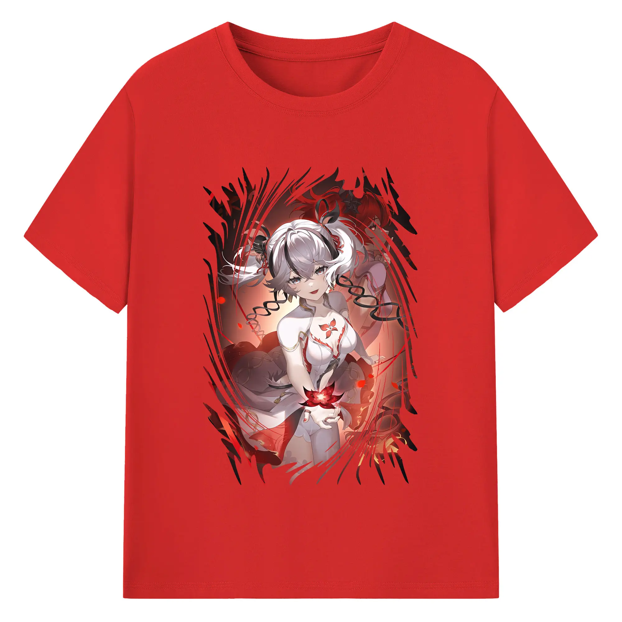 鳴潮 グッズ ツバキ - 綿100% 半袖Tシャツ ・ バックプリント ・ 快適 通気性 ・ 日常使い 散歩 スポーツ用