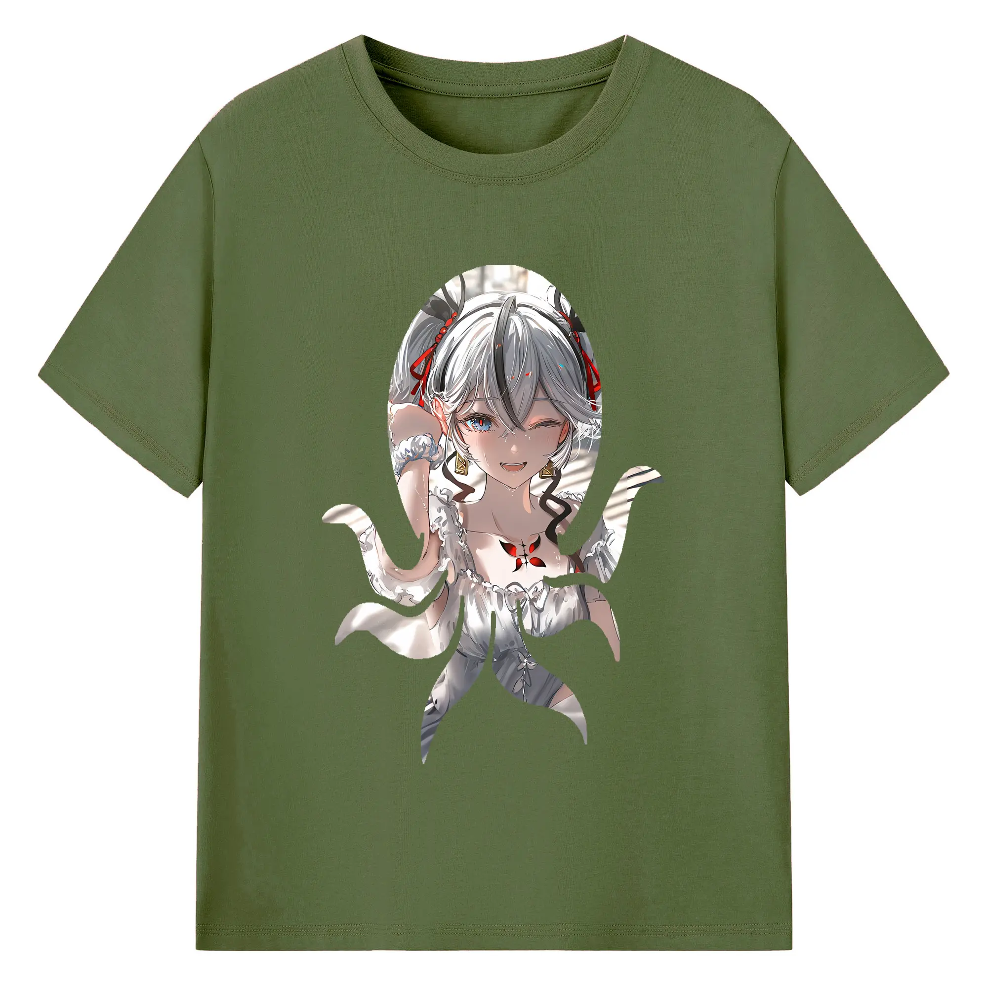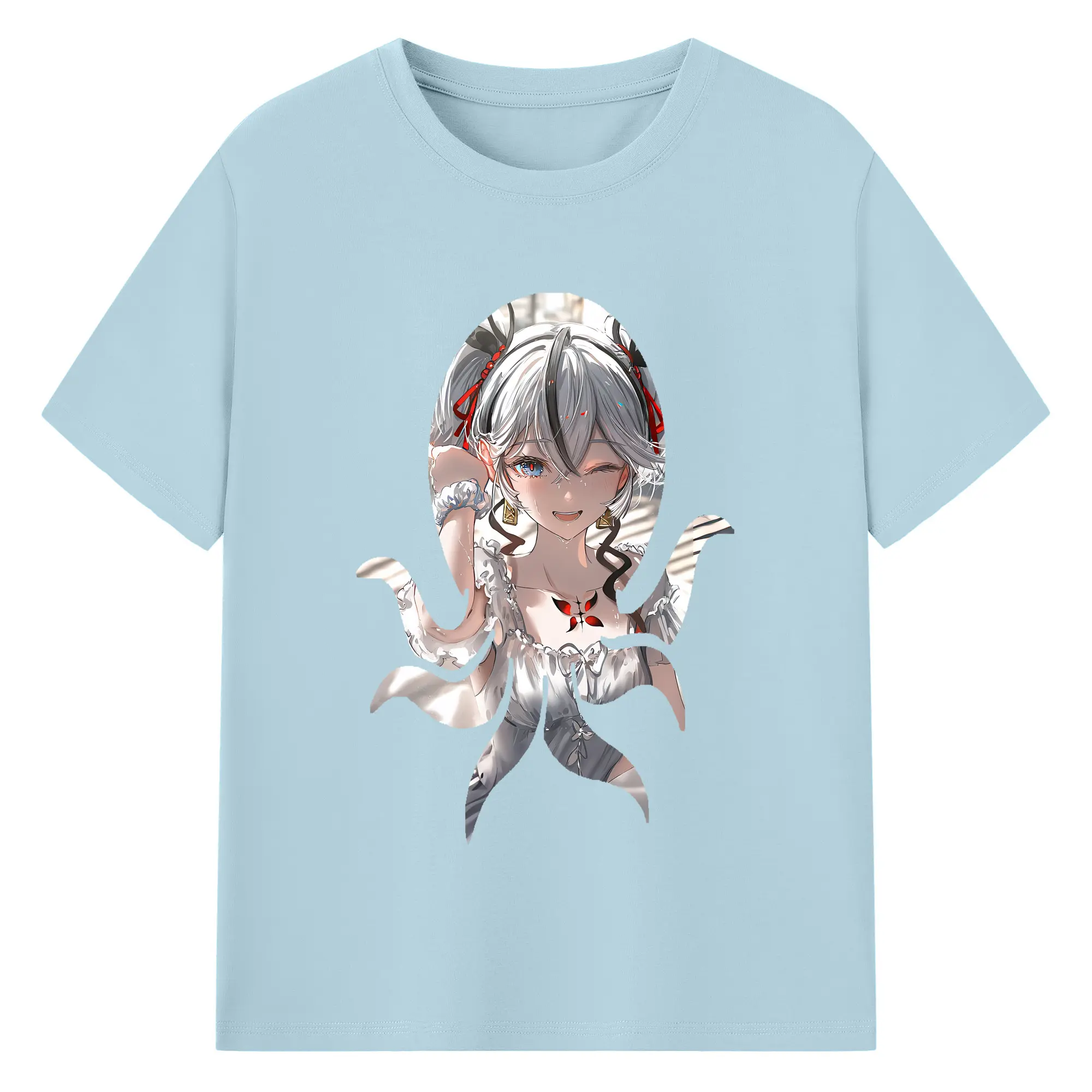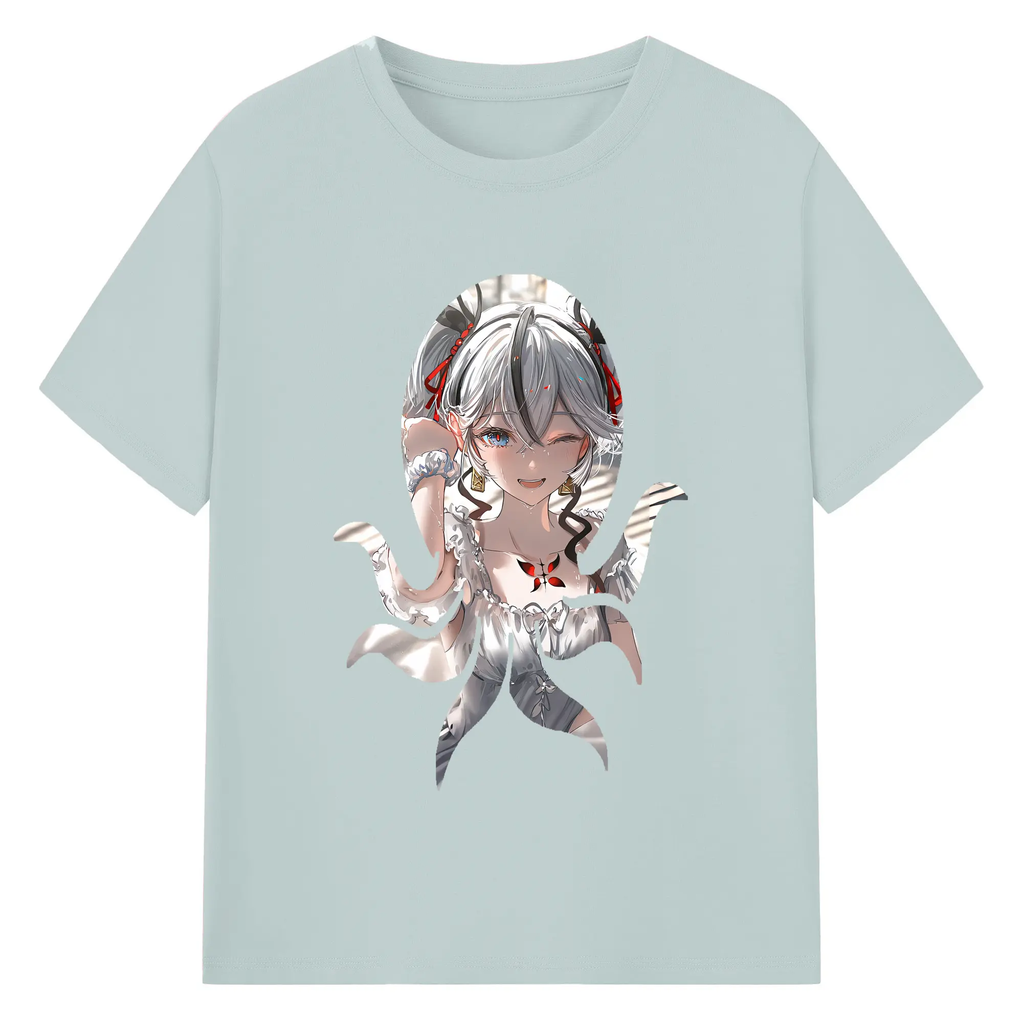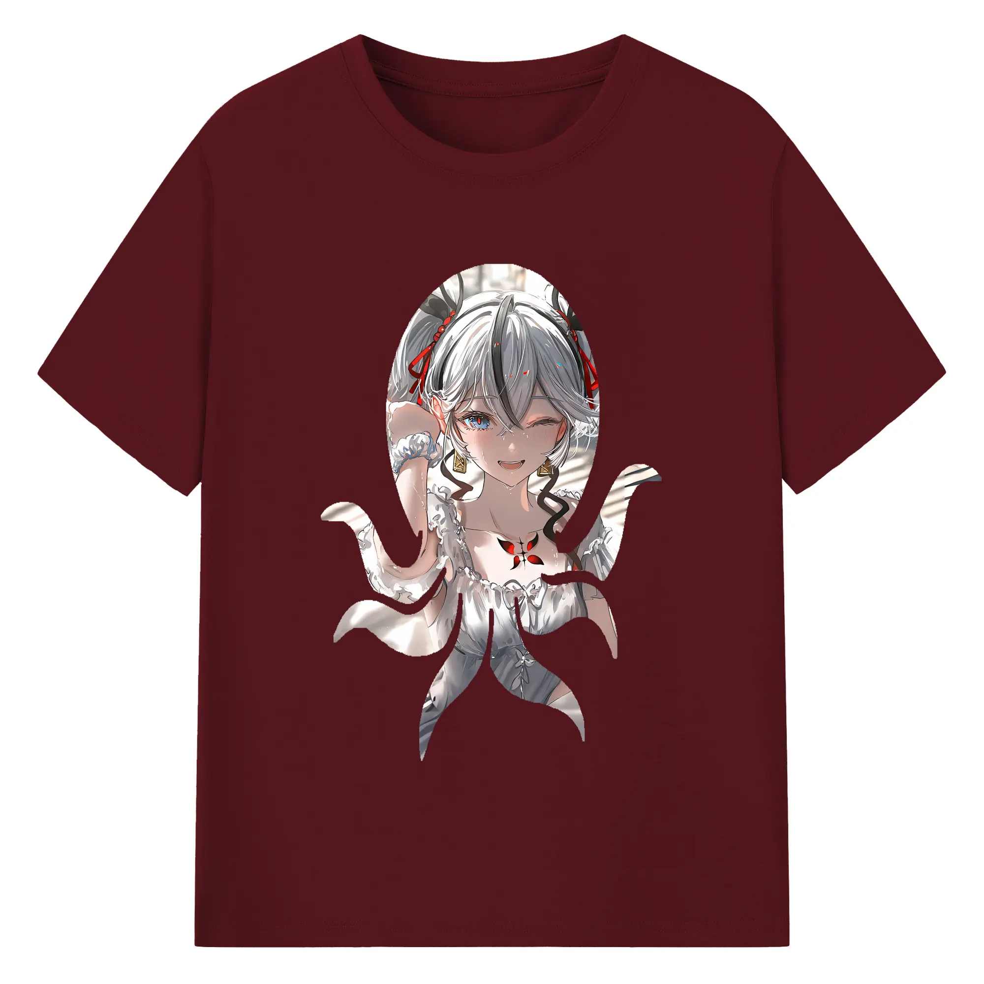 鳴潮 グッズ ツバキ - 綿100% 半袖Tシャツ ・ バックプリント ・ 快適 通気性 ・ 日常使い 散歩 スポーツ用