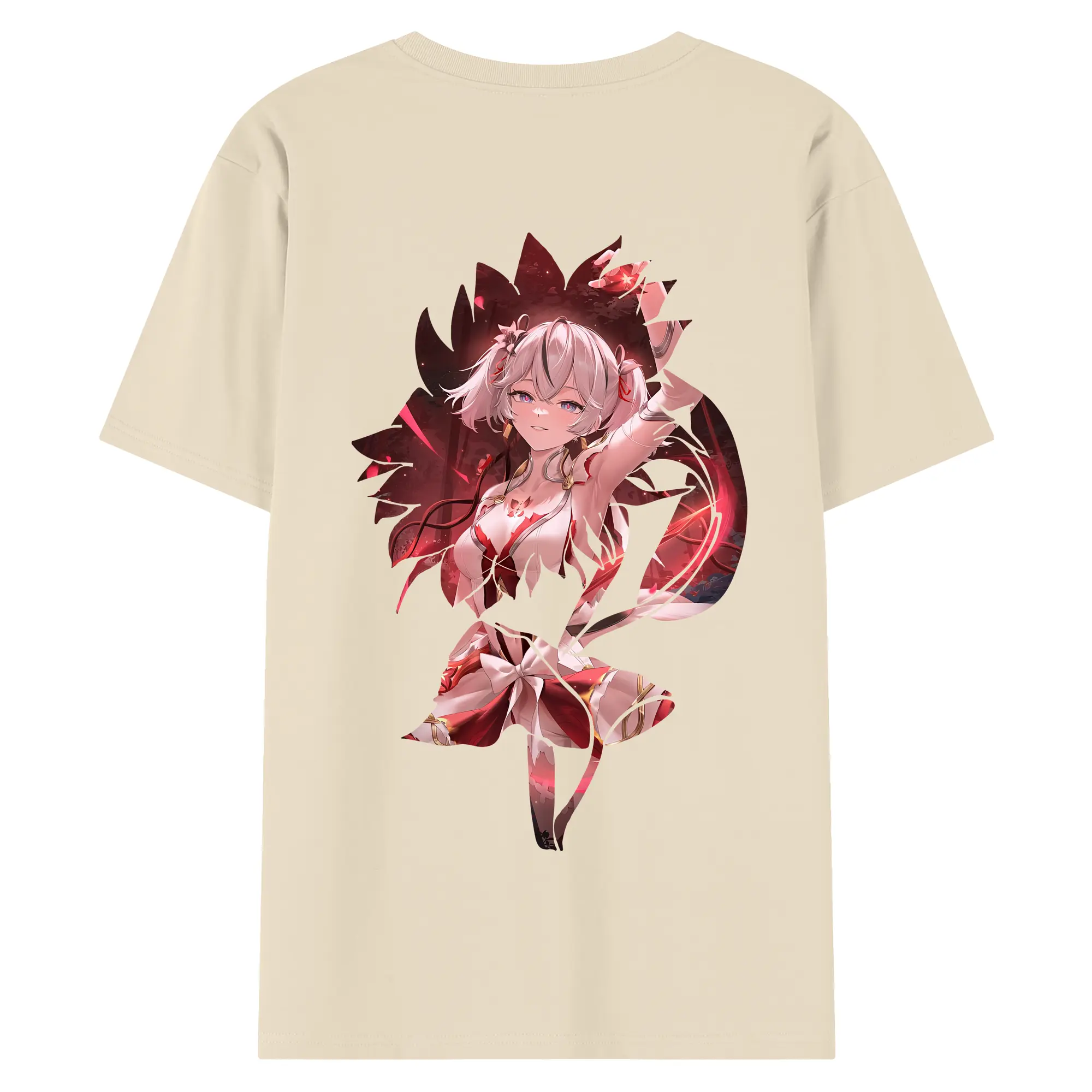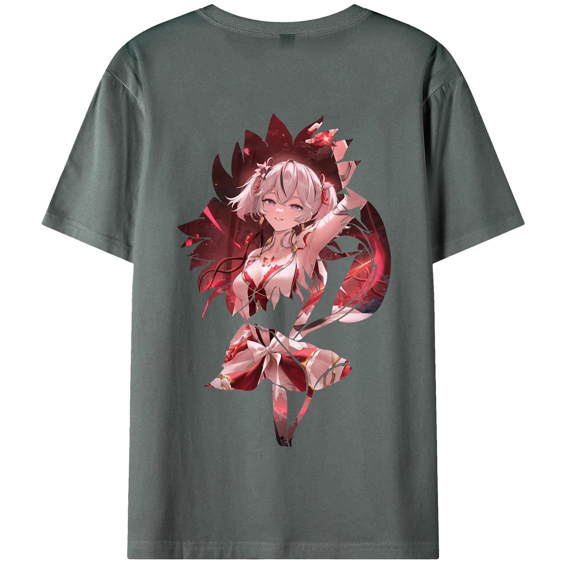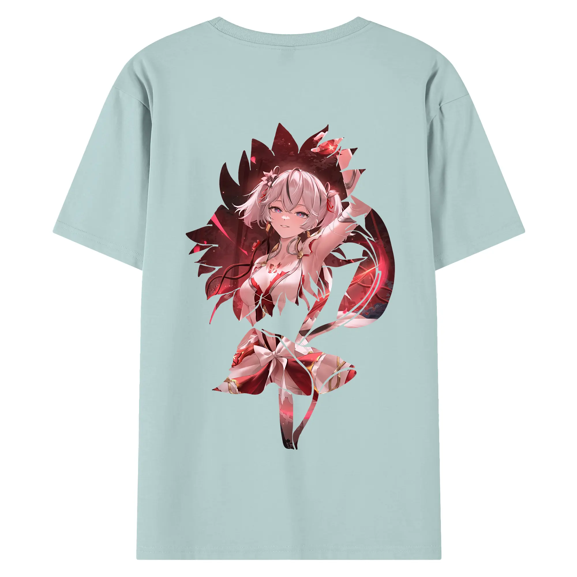 鳴潮 グッズ ツバキ - 綿100% 半袖Tシャツ ・ フロントプリント ・ 快適 通気性 ・ 日常使い 散歩 スポーツ用
