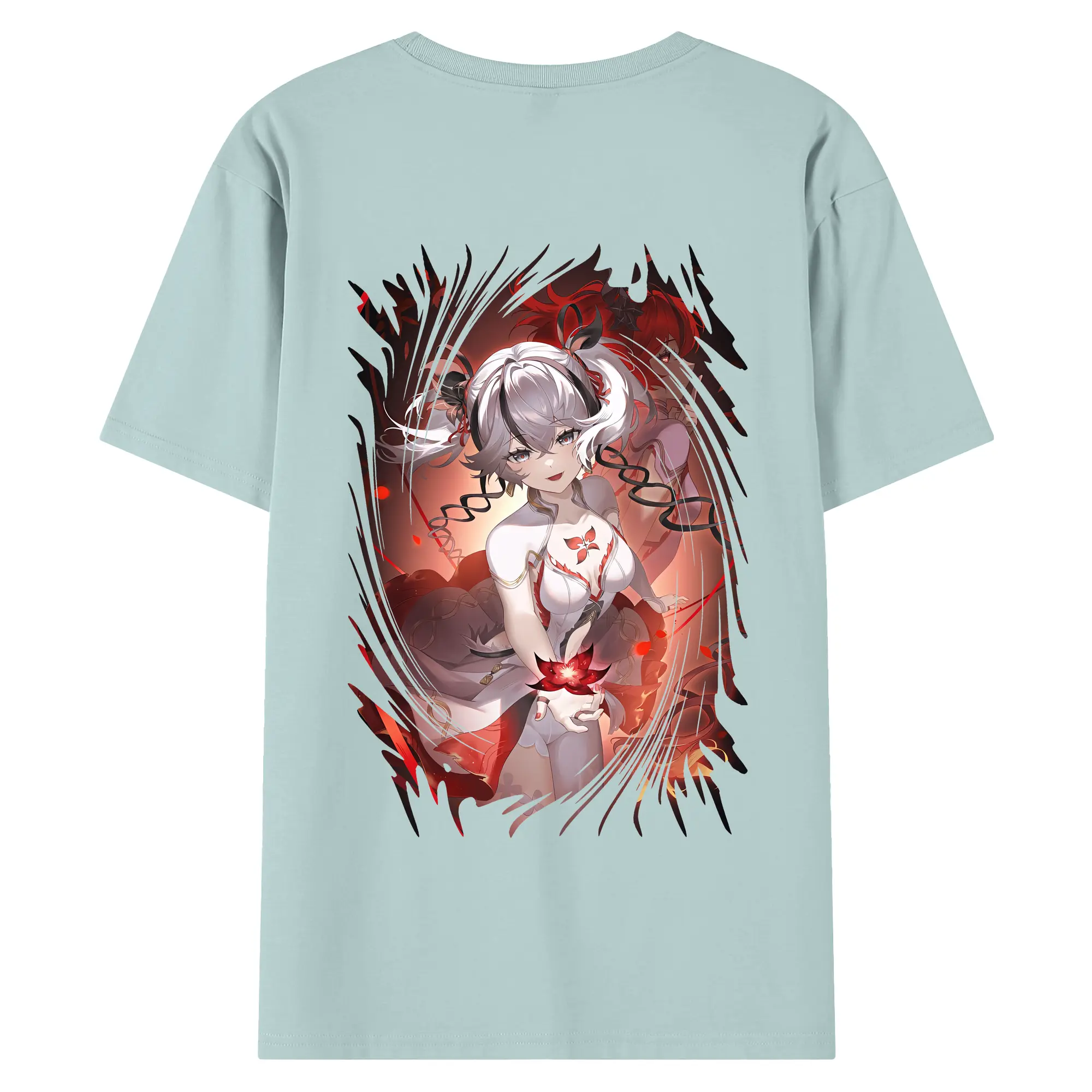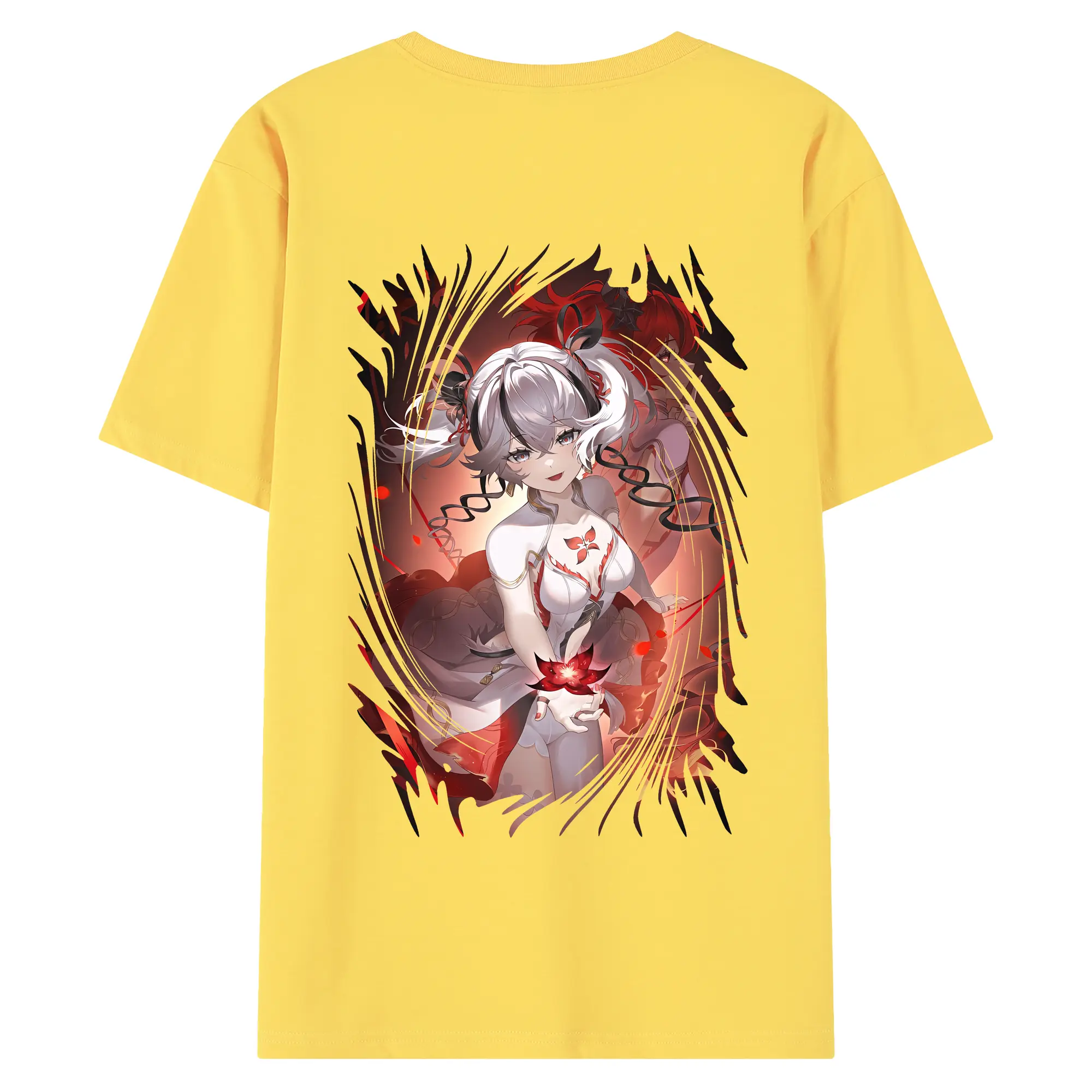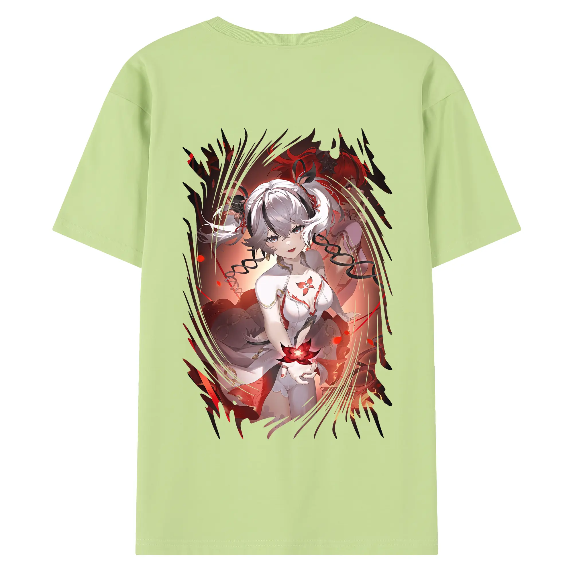 鳴潮 グッズ ツバキ - 綿100% 半袖Tシャツ ・ フロントプリント ・ 快適 通気性 ・ 日常使い 散歩 スポーツ用
