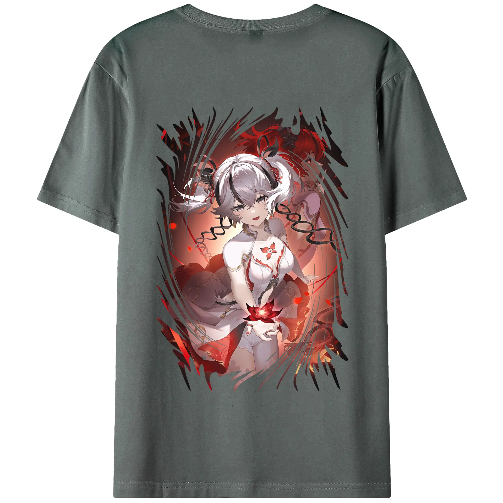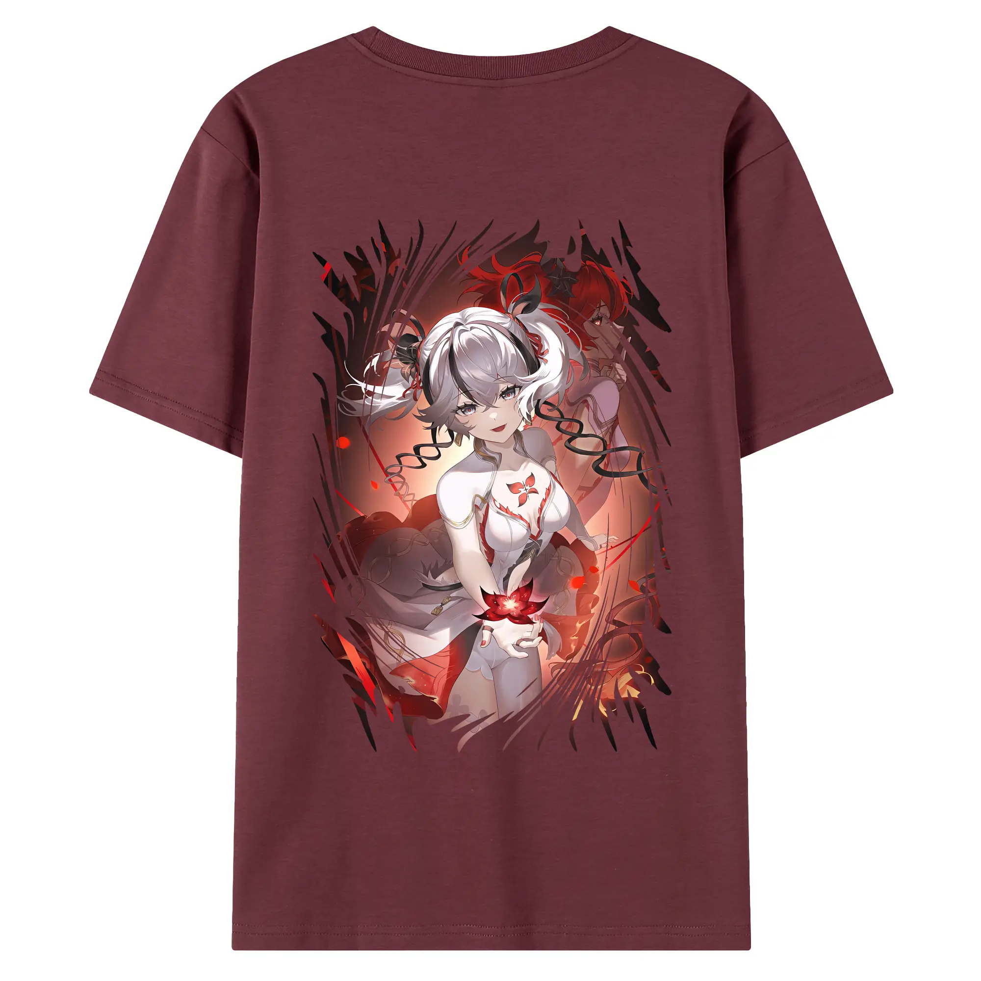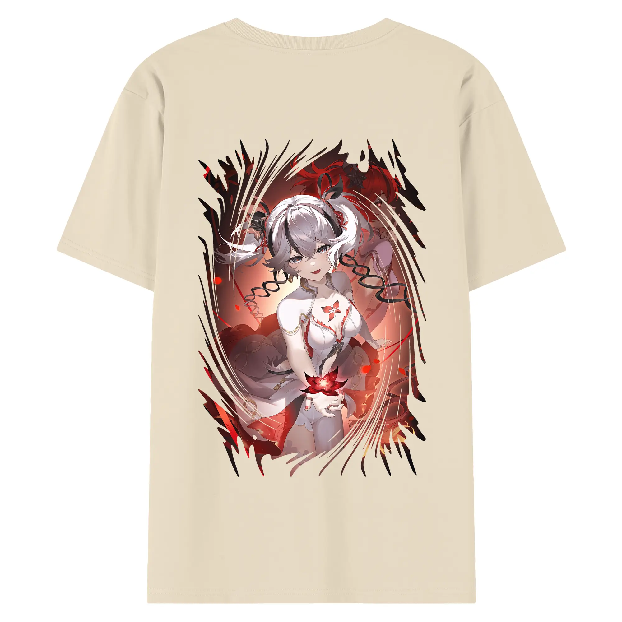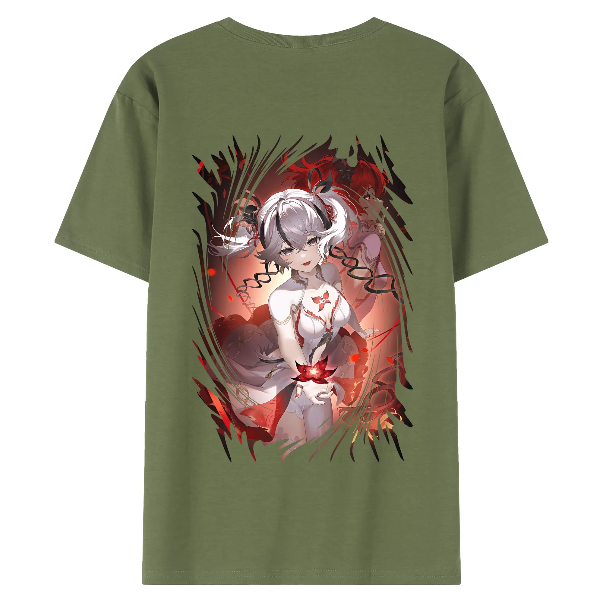 鳴潮 グッズ ツバキ - 綿100% 半袖Tシャツ ・ フロントプリント ・ 快適 通気性 ・ 日常使い 散歩 スポーツ用