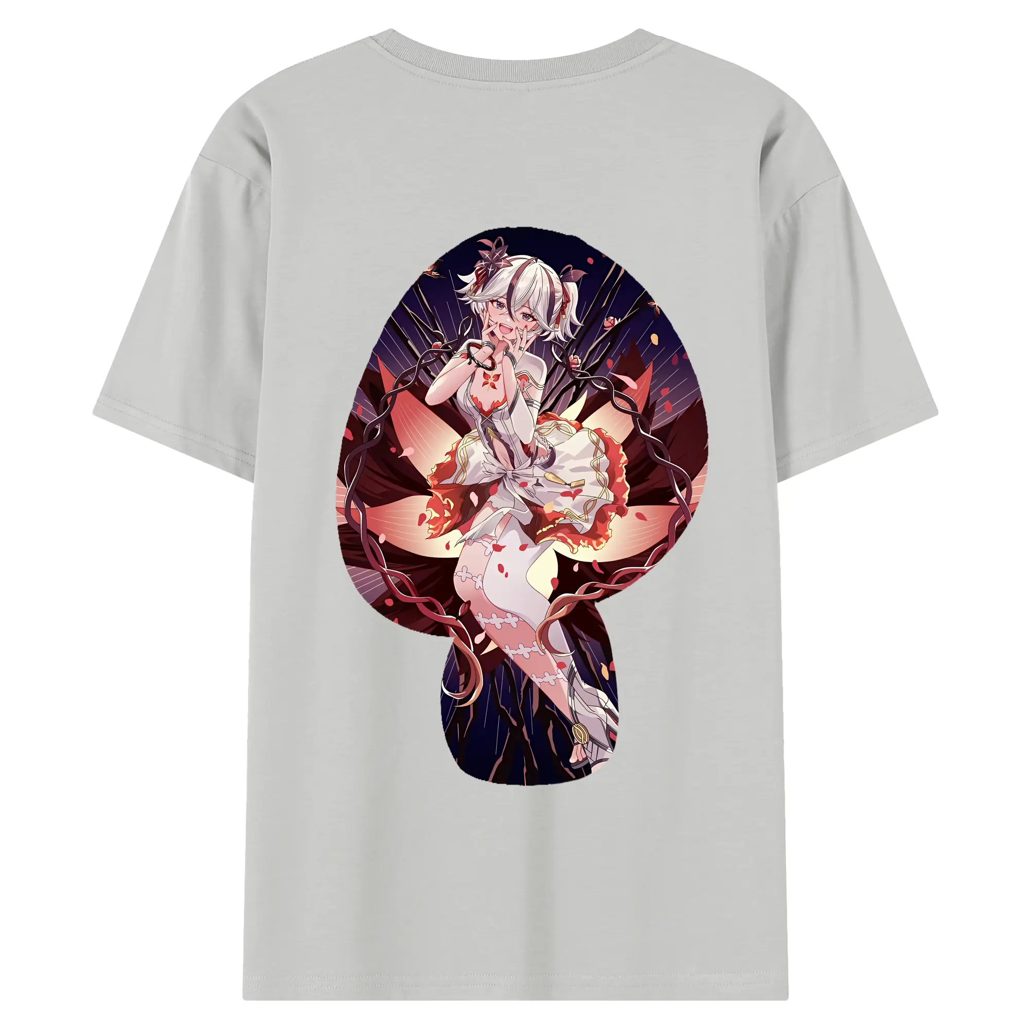 鳴潮 グッズ ツバキ - 綿100% 半袖Tシャツ ・ フロントプリント ・ 快適 通気性 ・ 日常使い 散歩 スポーツ用