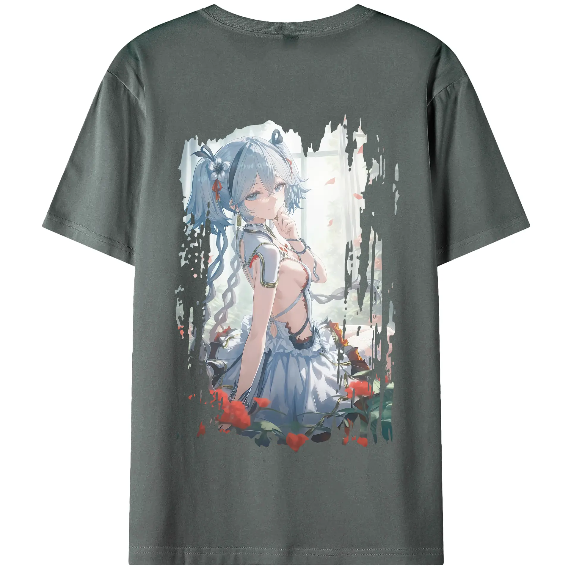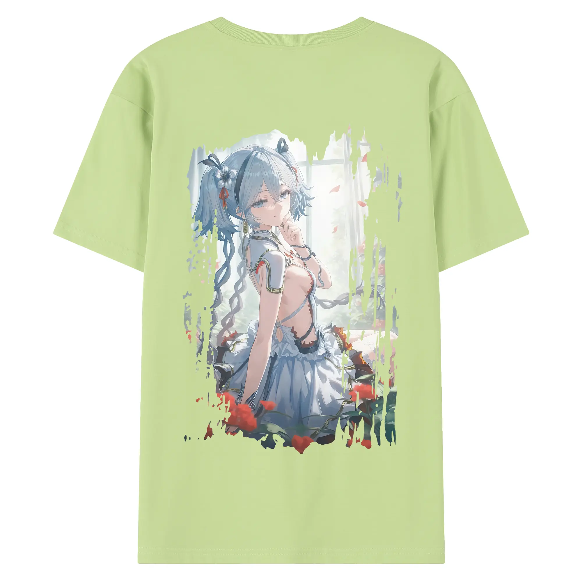 鳴潮 グッズ ツバキ - 綿100% ヴィンテージ風 半袖Tシャツ ・ 背面プリント ・ 柔らか肌触り ・ 通気性 快適 ・ スポーツ カジュアル 外出用