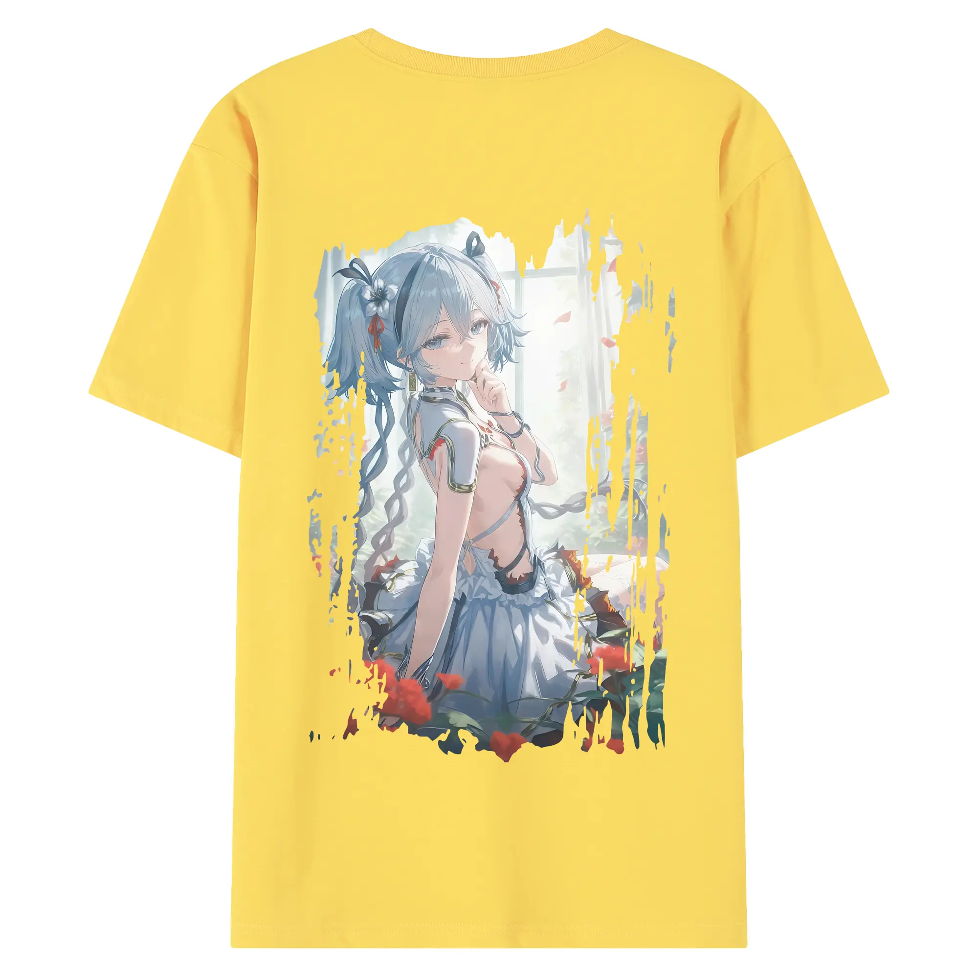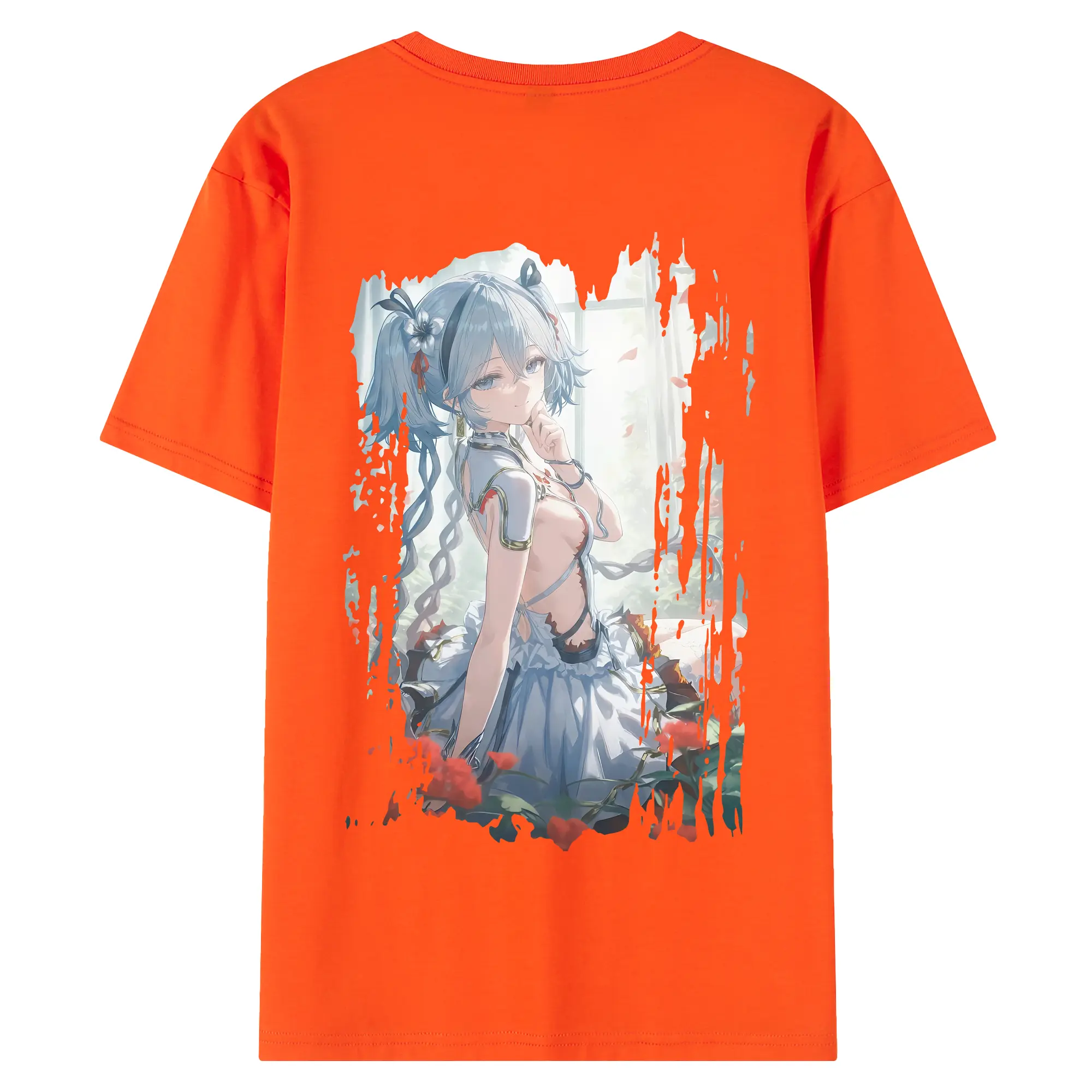 鳴潮 グッズ ツバキ - 綿100% 半袖Tシャツ ・ フロントプリント ・ 快適 通気性 ・ 日常使い 散歩 スポーツ用