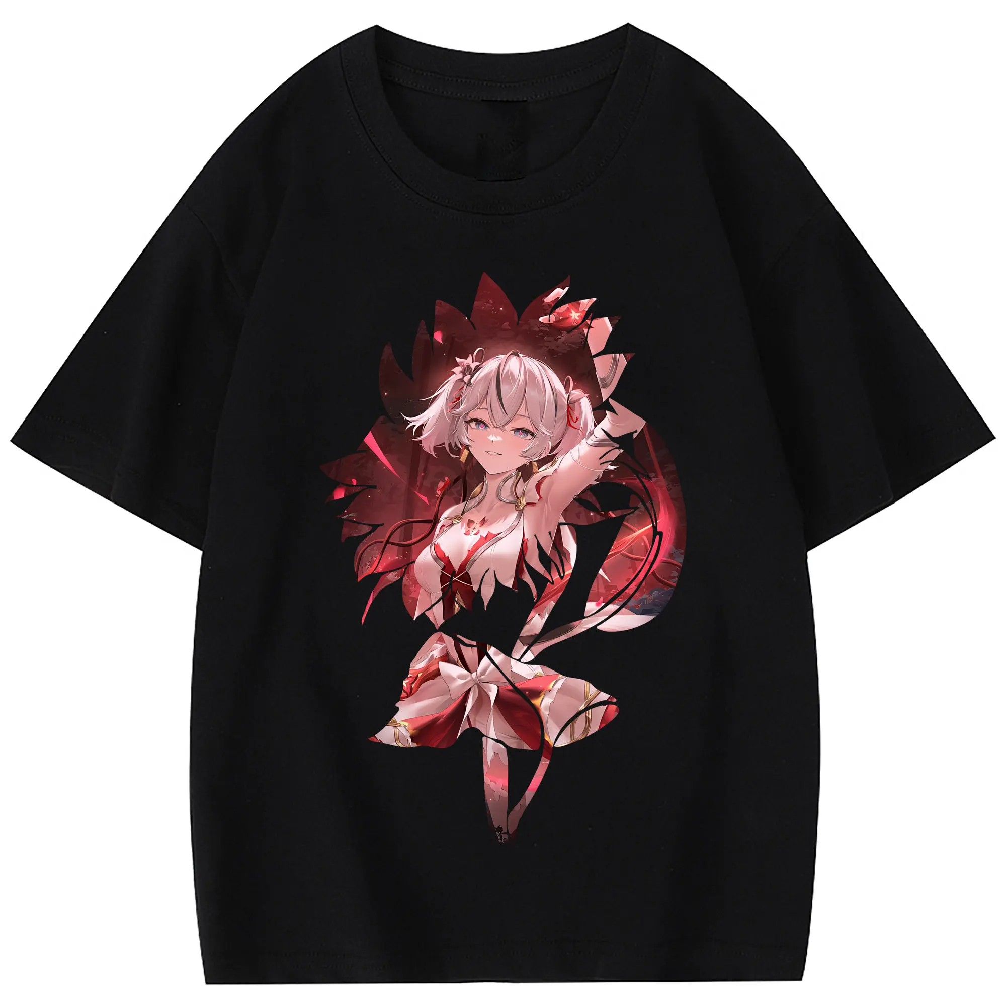 鳴潮 グッズ ツバキ - 綿100% 半袖Tシャツ ・ フロントプリント ・ 快適 通気性 ・ 日常使い 散歩 スポーツ用