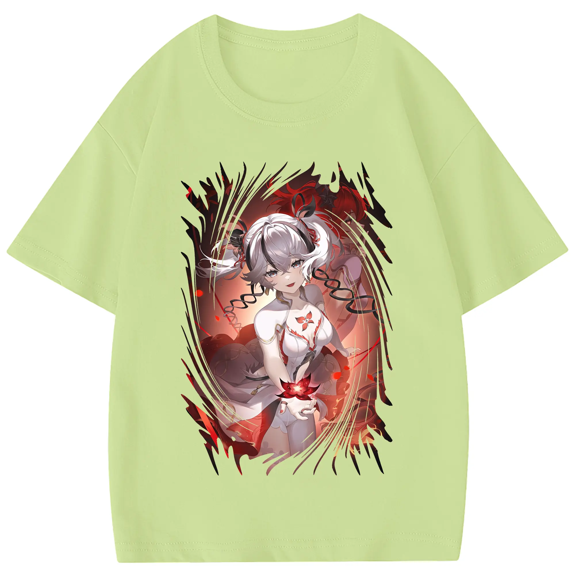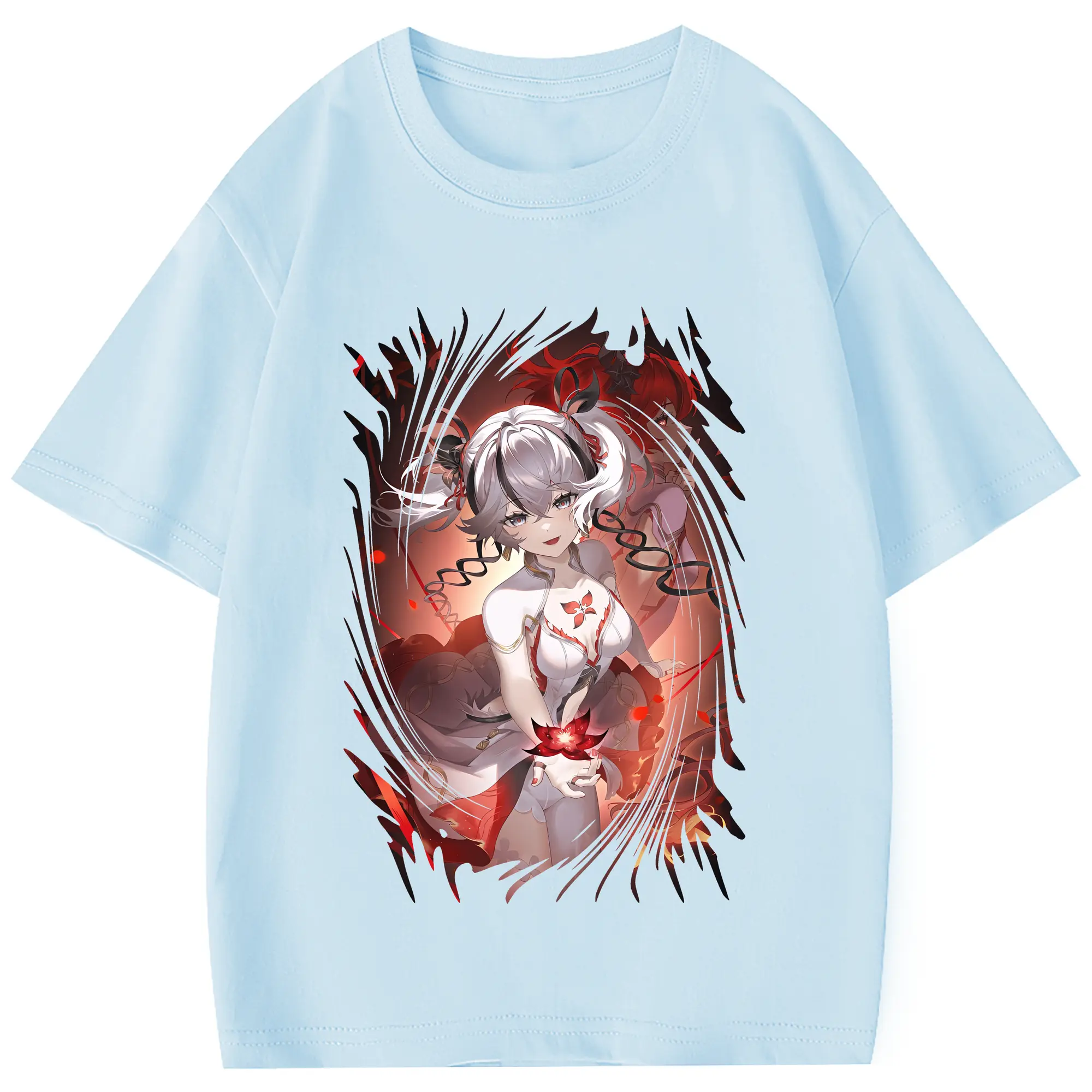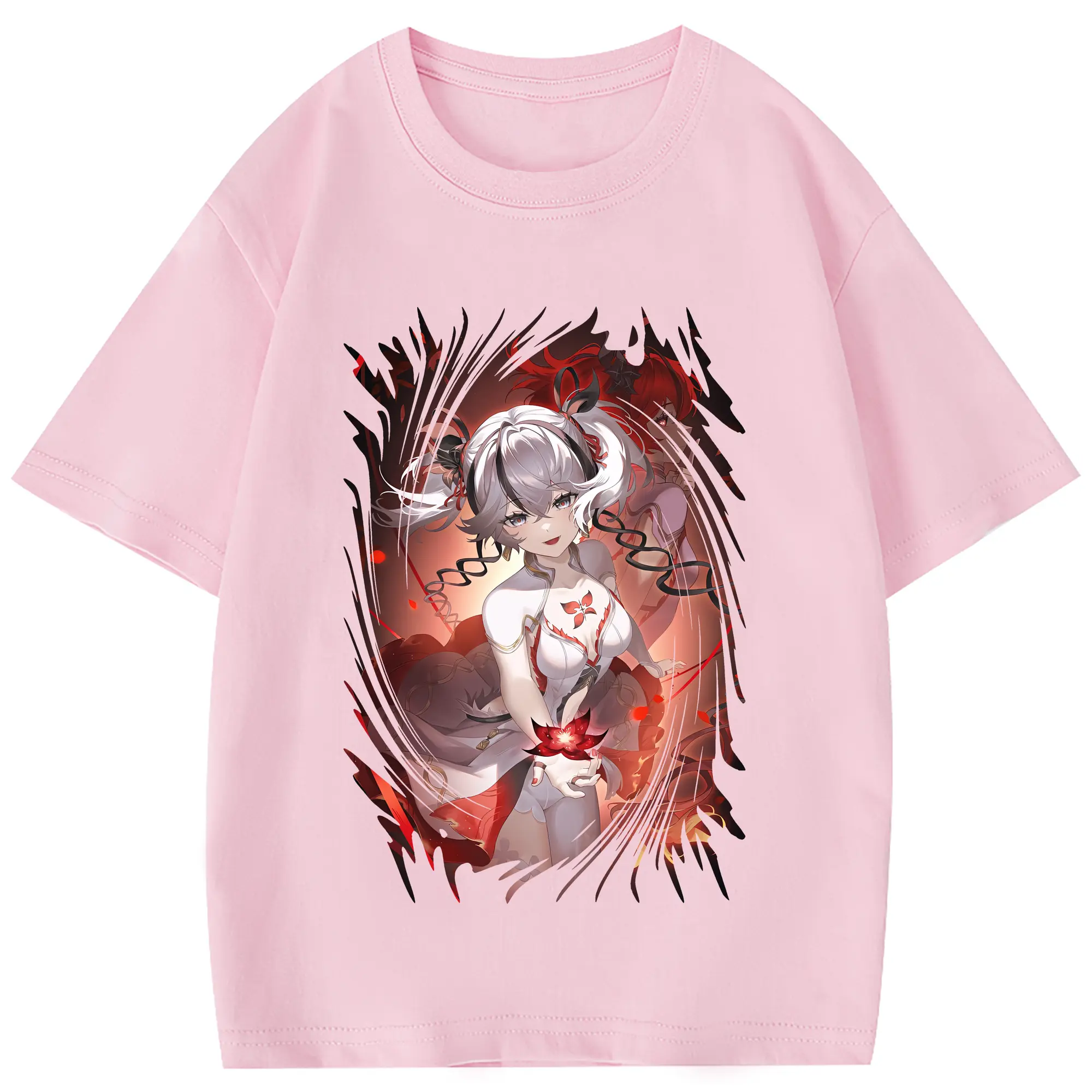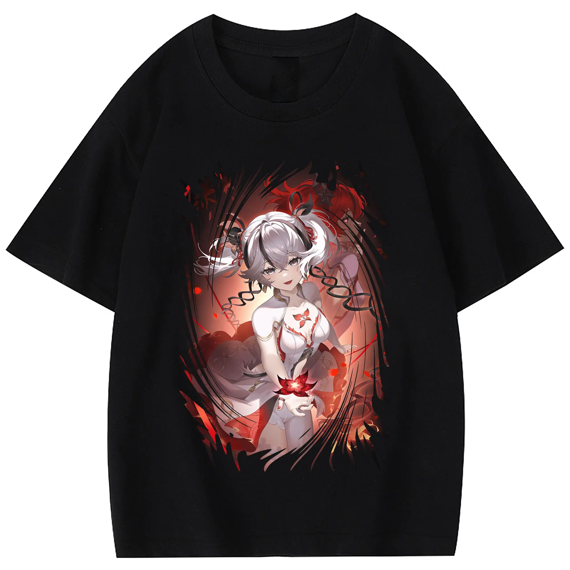 鳴潮 グッズ ツバキ - 綿100% 半袖Tシャツ ・ フロントプリント ・ 快適 通気性 ・ 日常使い 散歩 スポーツ用