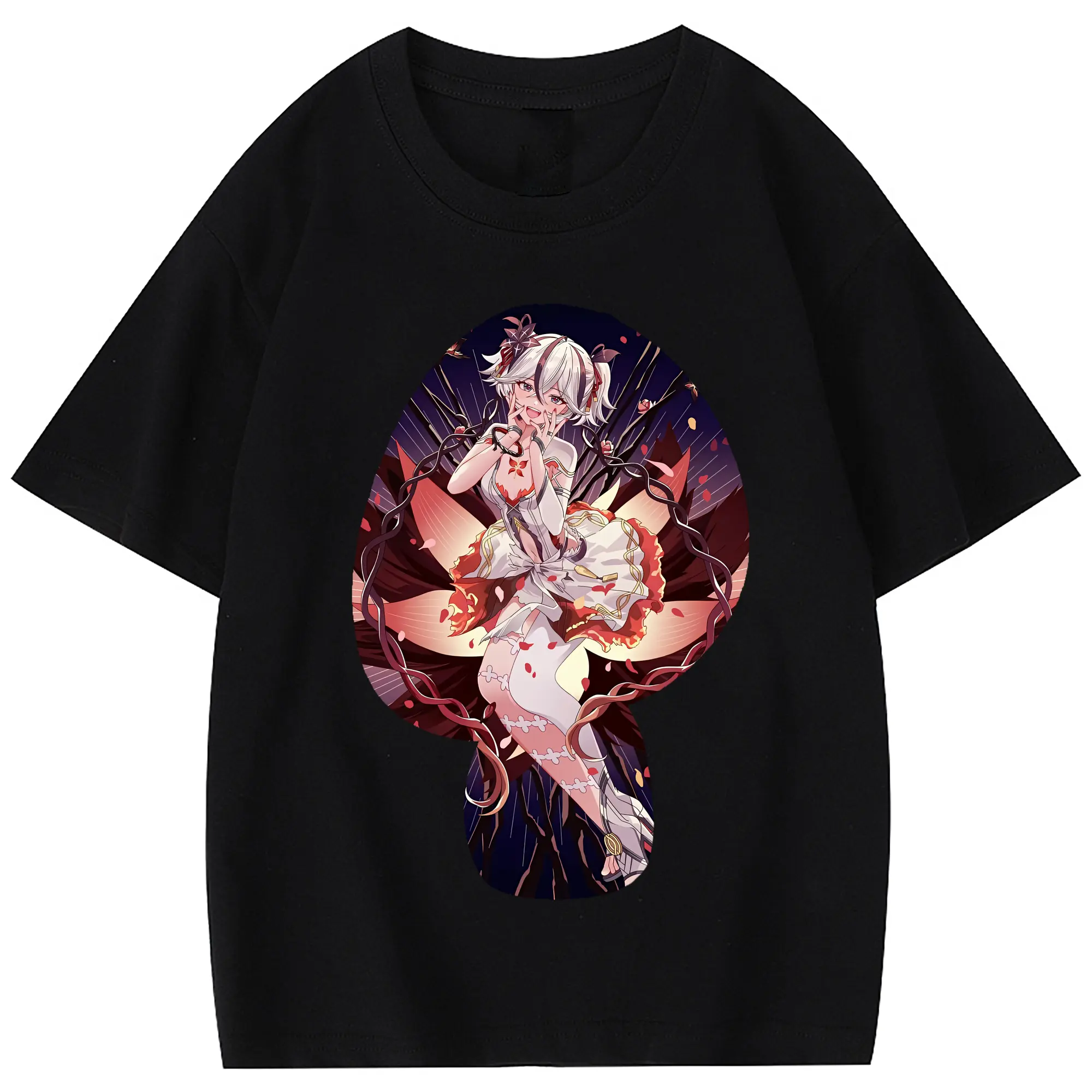 鳴潮 グッズ ツバキ - 綿100% 半袖Tシャツ ・ フロントプリント ・ 快適 通気性 ・ 日常使い 散歩 スポーツ用