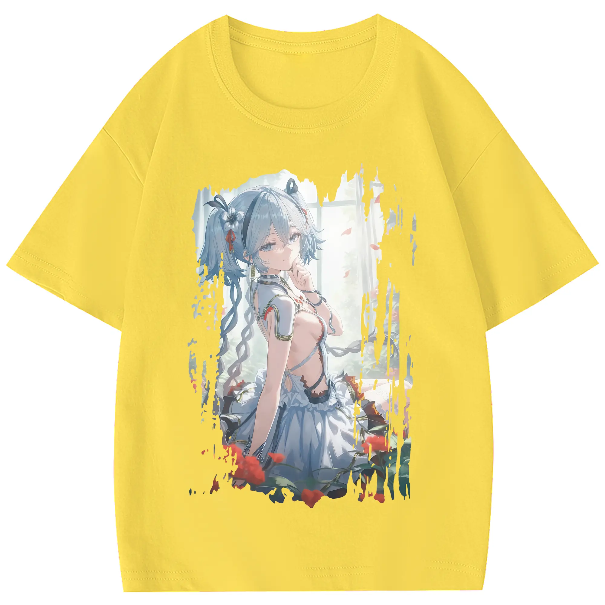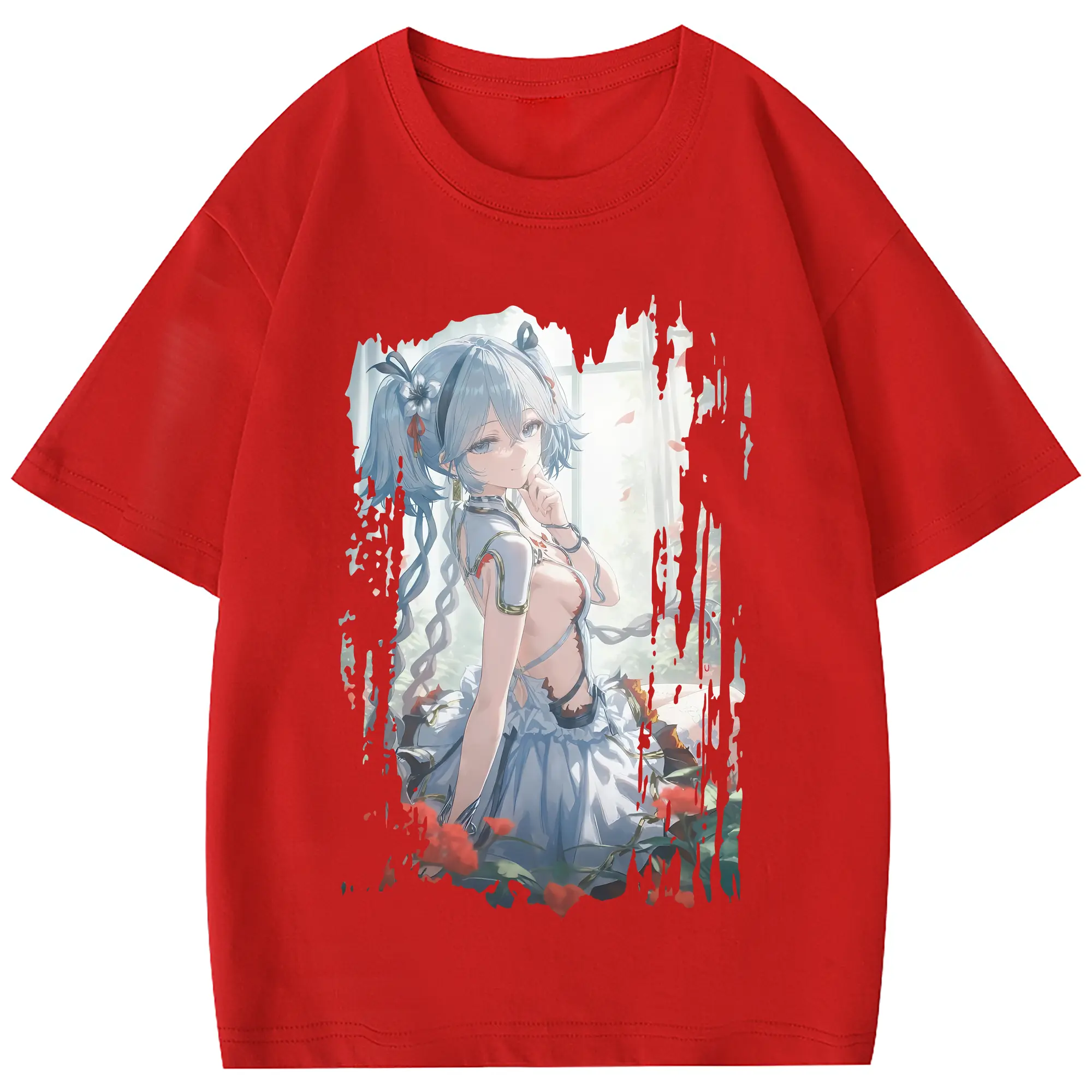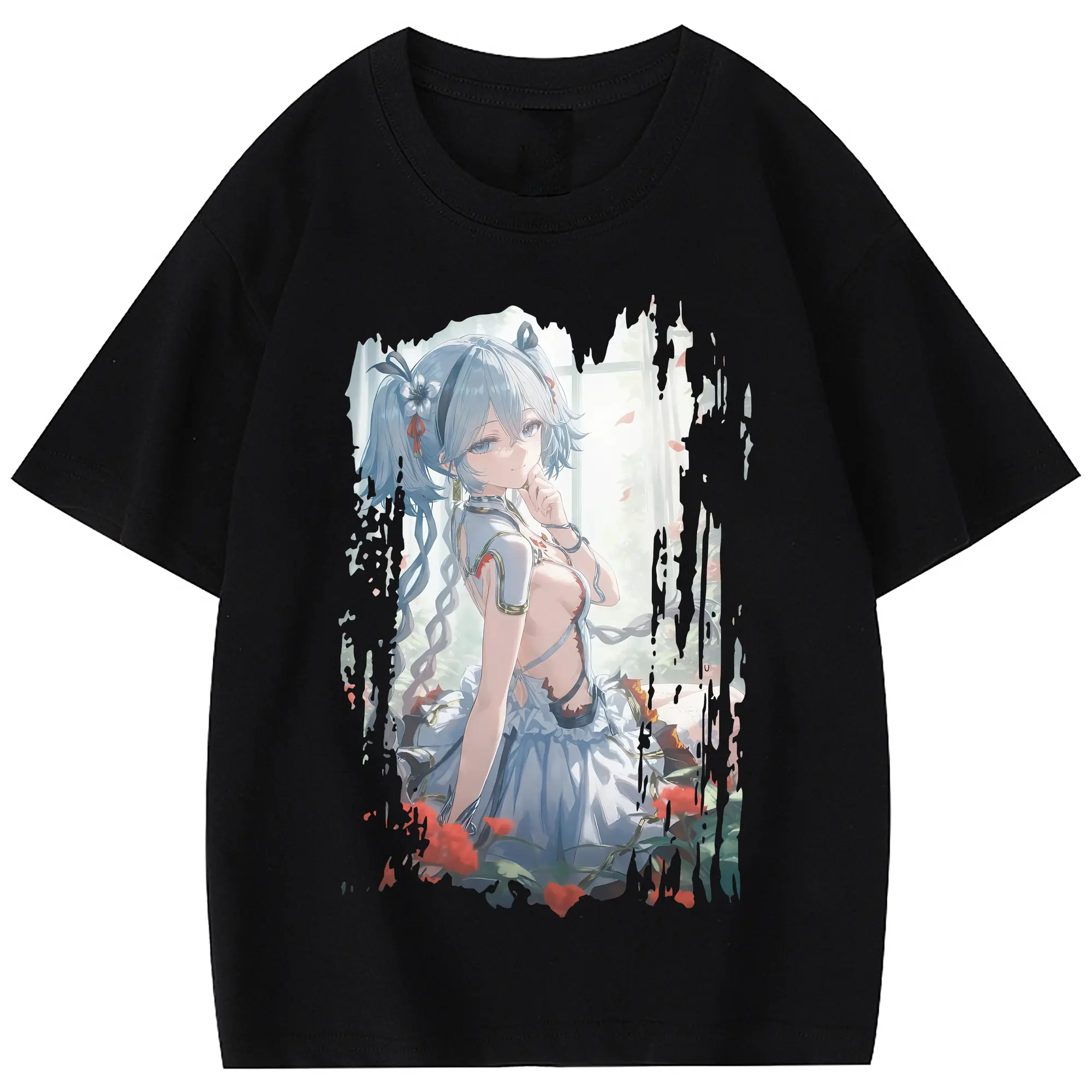 鳴潮 グッズ ツバキ - 綿100% 半袖Tシャツ ・ フロントプリント ・ 快適 通気性 ・ 日常使い 散歩 スポーツ用