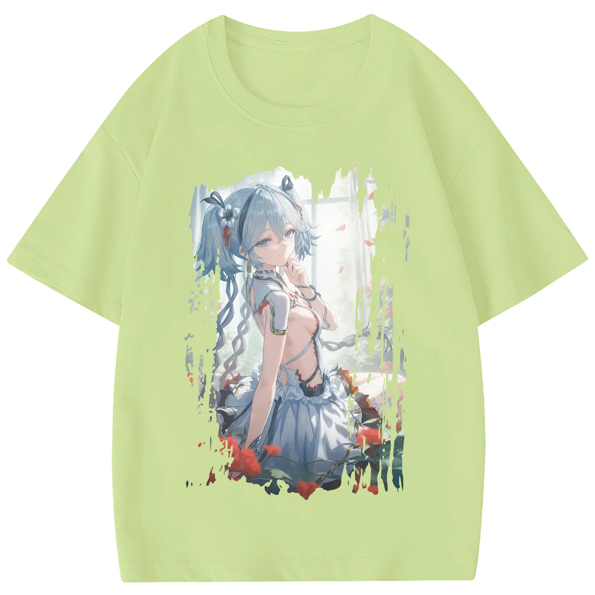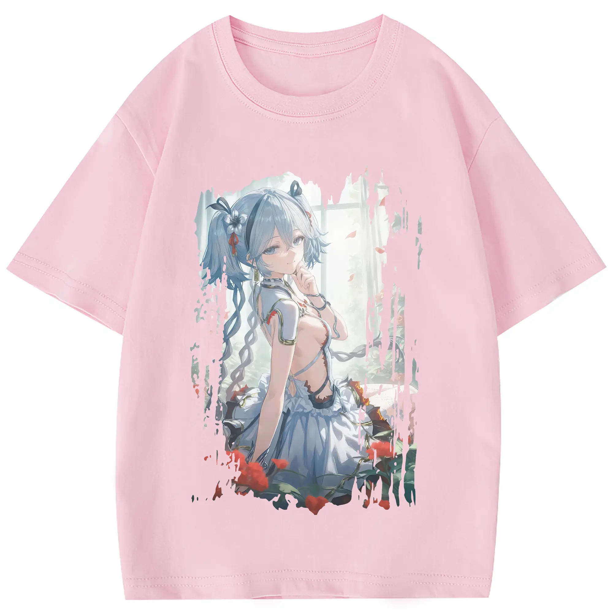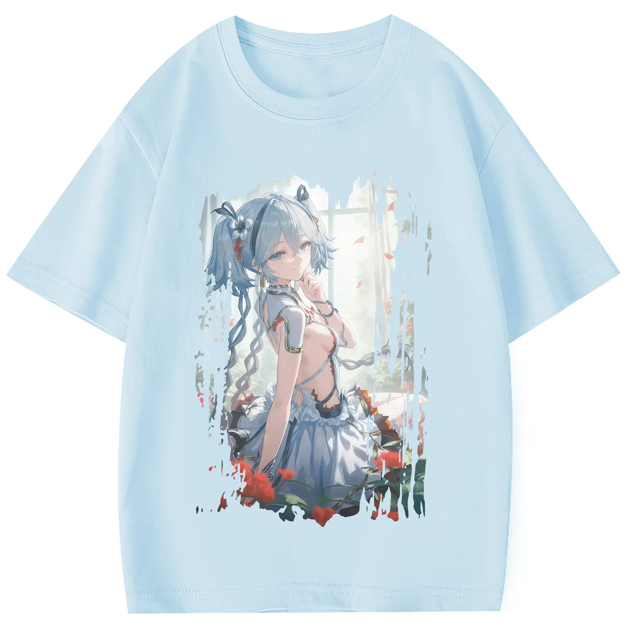 鳴潮 グッズ ツバキ - 綿100% 半袖Tシャツ ・ フロントプリント ・ 快適 通気性 ・ 日常使い 散歩 スポーツ用