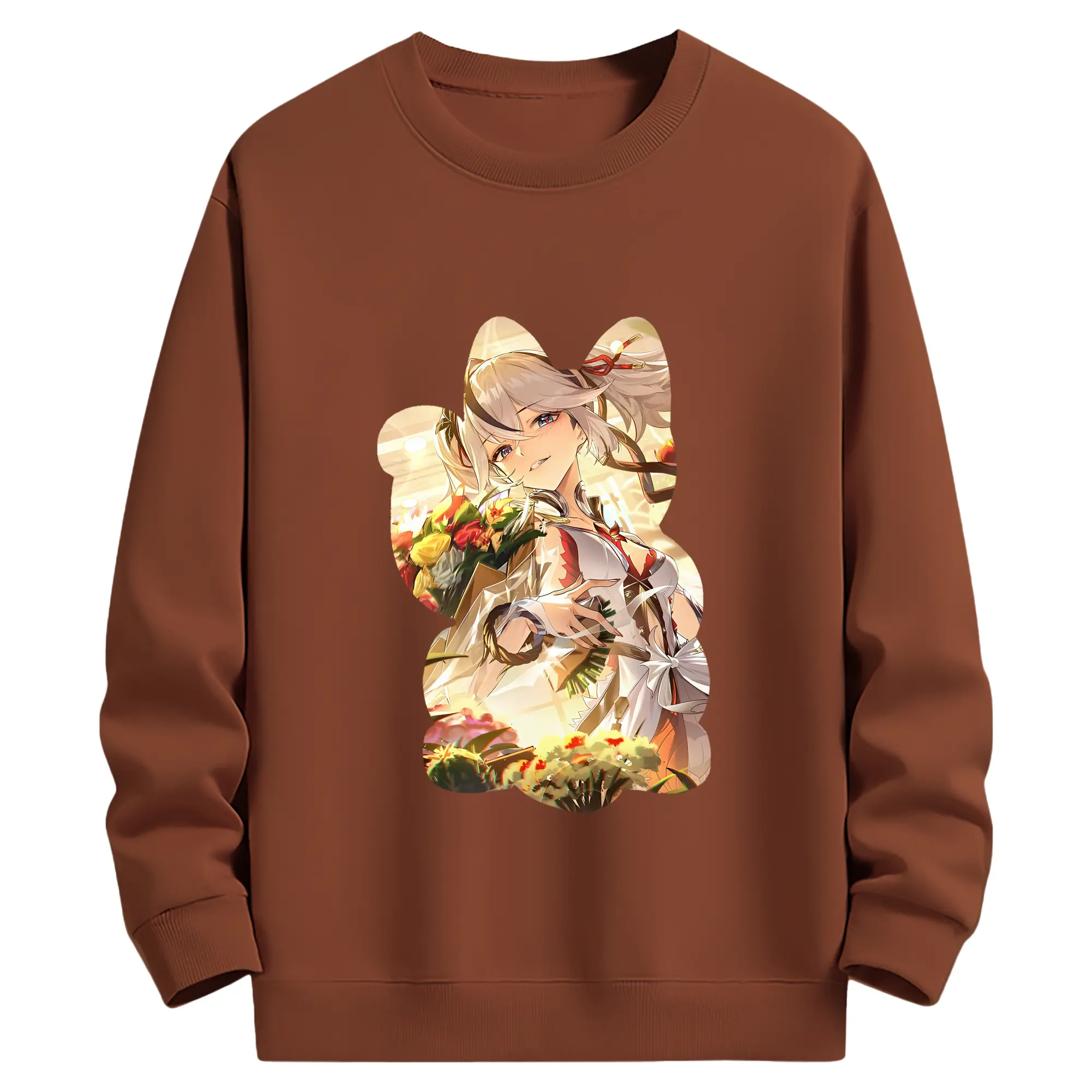鳴潮 グッズ ツバキ - 薄手 クルーネック スウェット 裏毛260g · ポリエステル 春秋向け カジュアル 男女兼用 · トレーナー デイリー スポーツ 散歩に最適