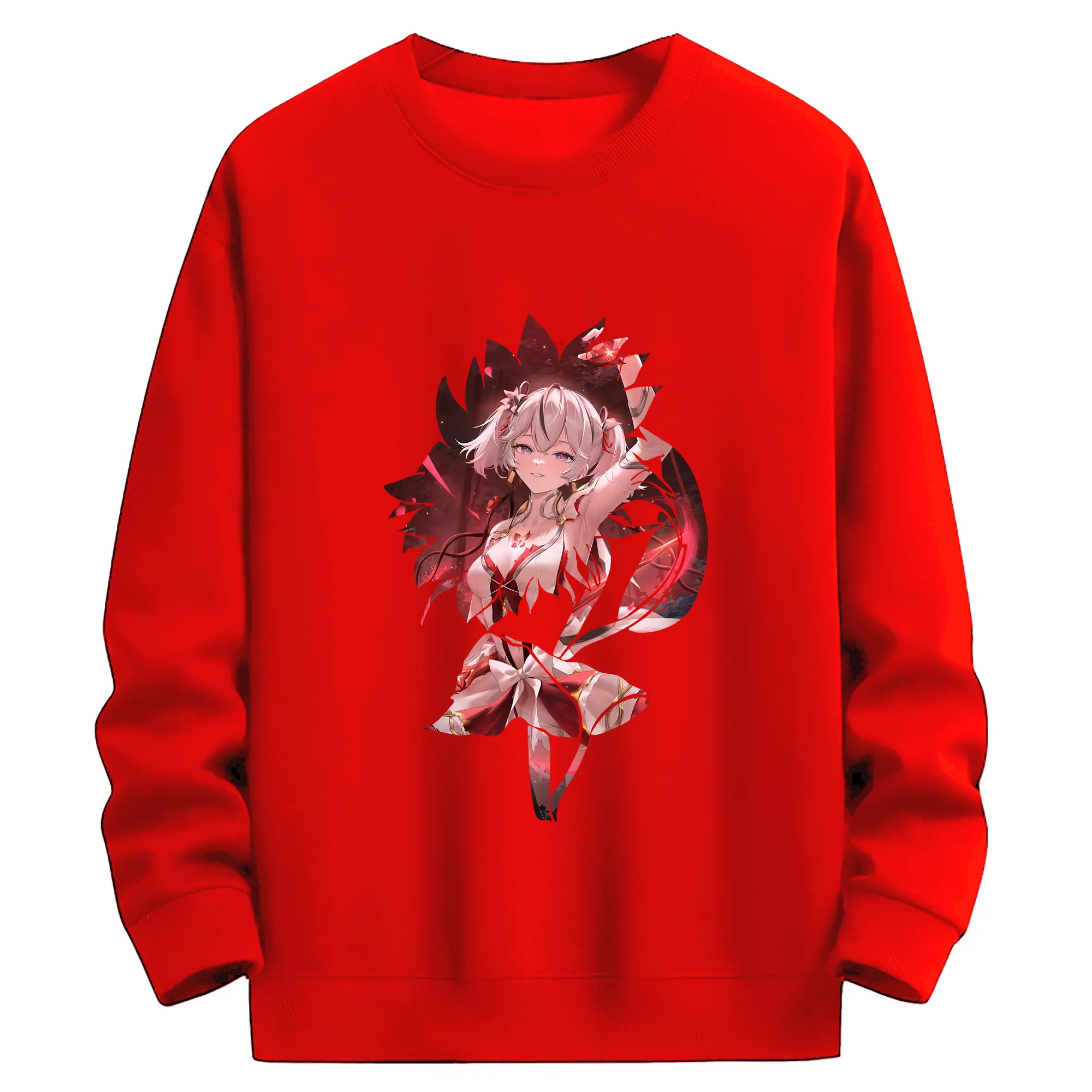 鳴潮 グッズ ツバキ - 薄手 クルーネック スウェット 裏毛260g · ポリエステル 春秋向け カジュアル 男女兼用 · トレーナー デイリー スポーツ 散歩に最適