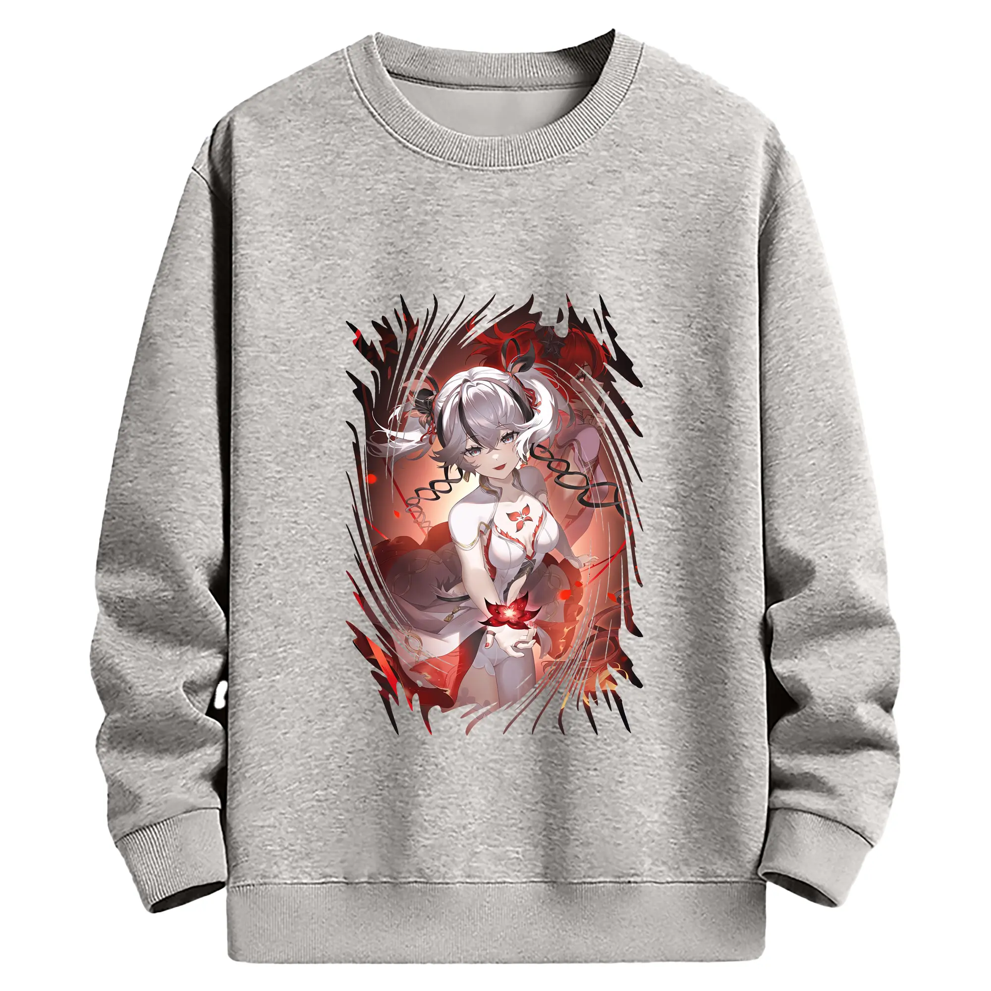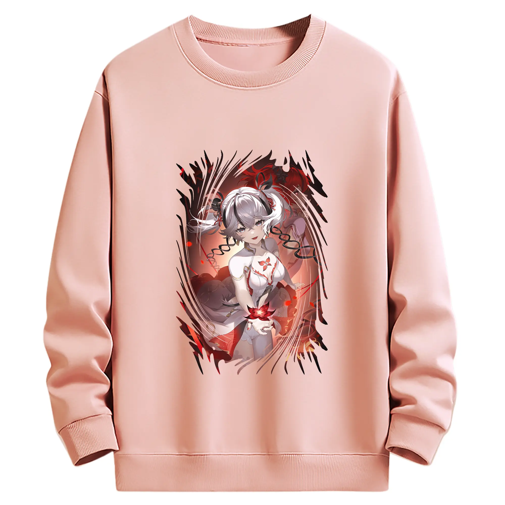 鳴潮 グッズ ツバキ - 薄手 クルーネック スウェット 裏毛260g · ポリエステル 春秋向け カジュアル 男女兼用 · トレーナー デイリー スポーツ 散歩に最適