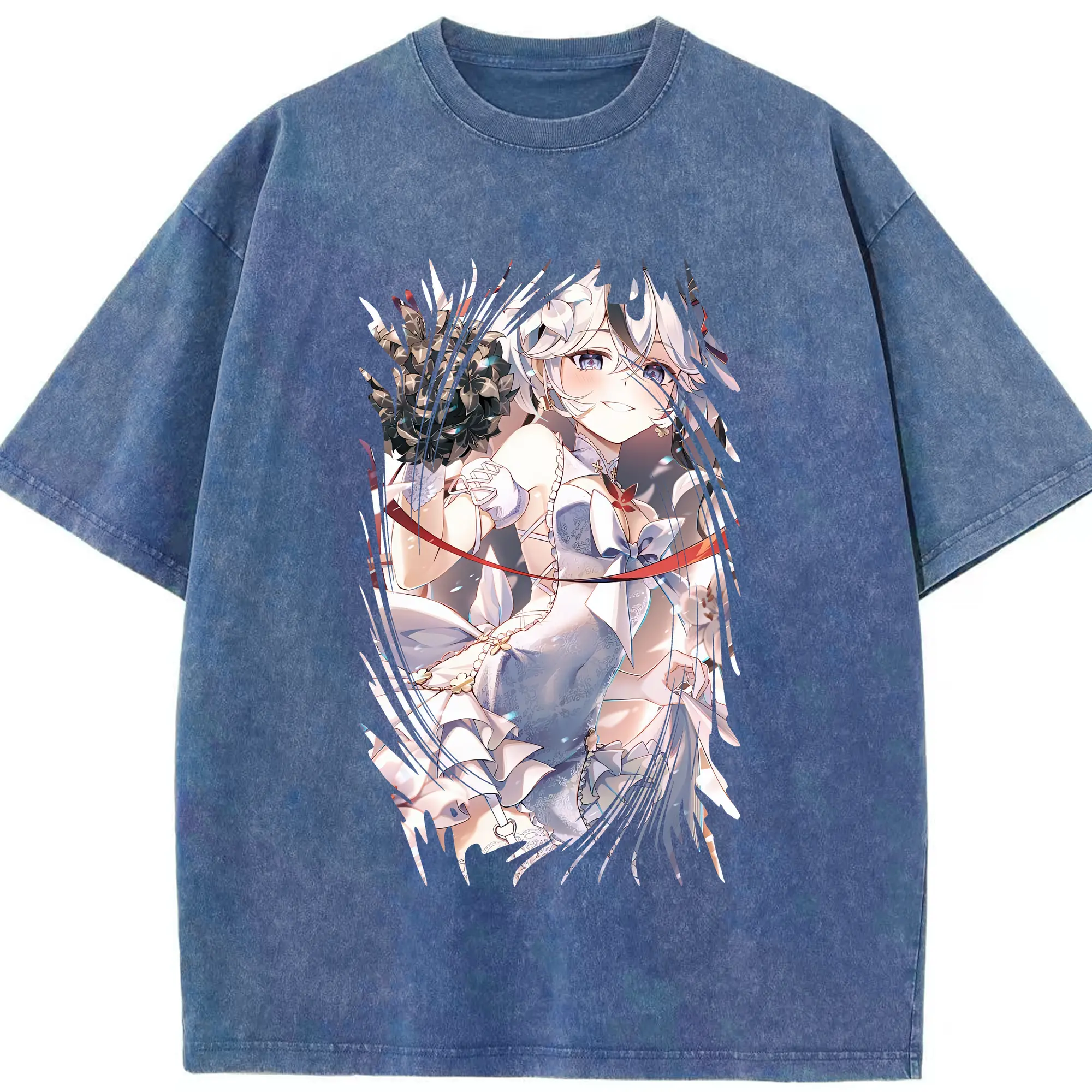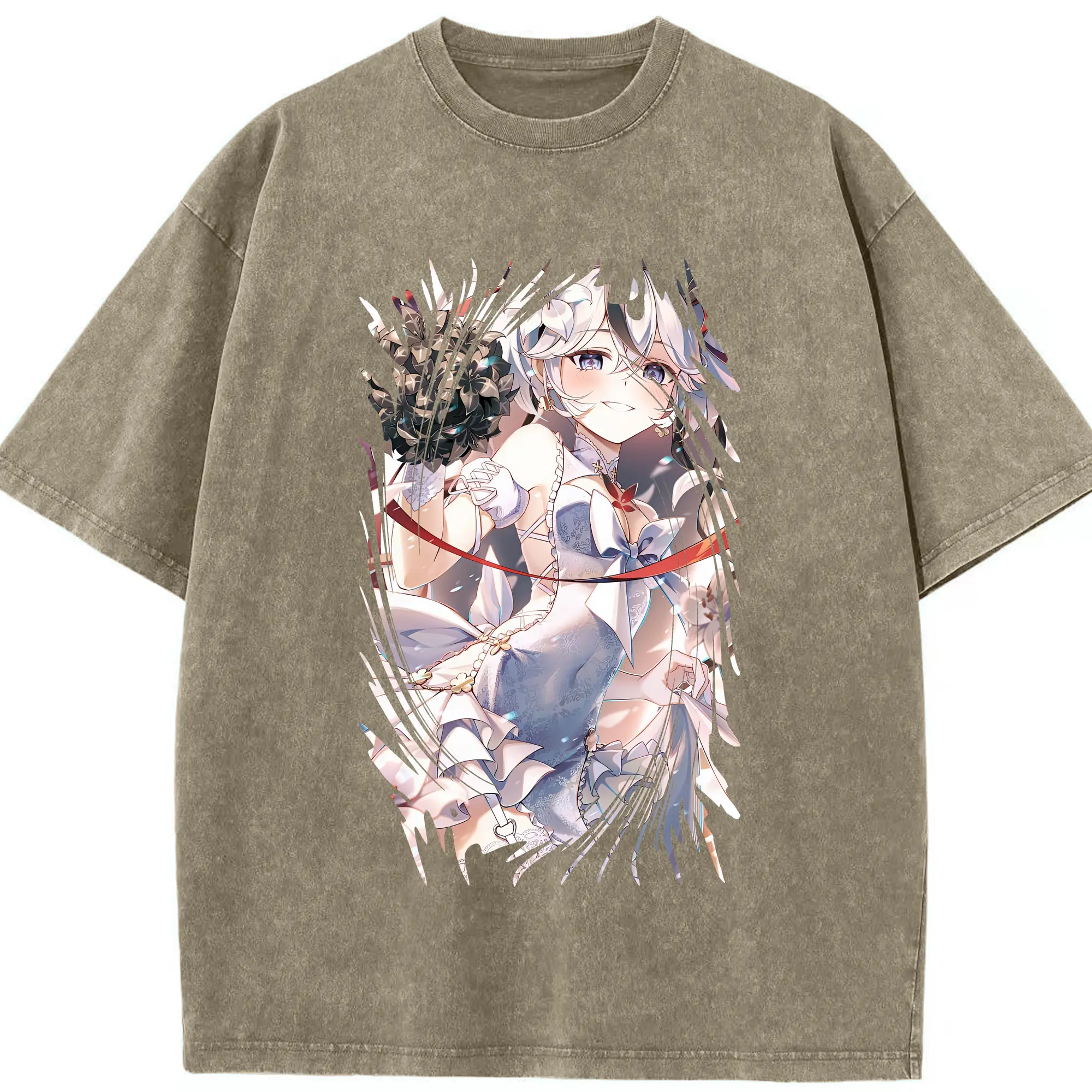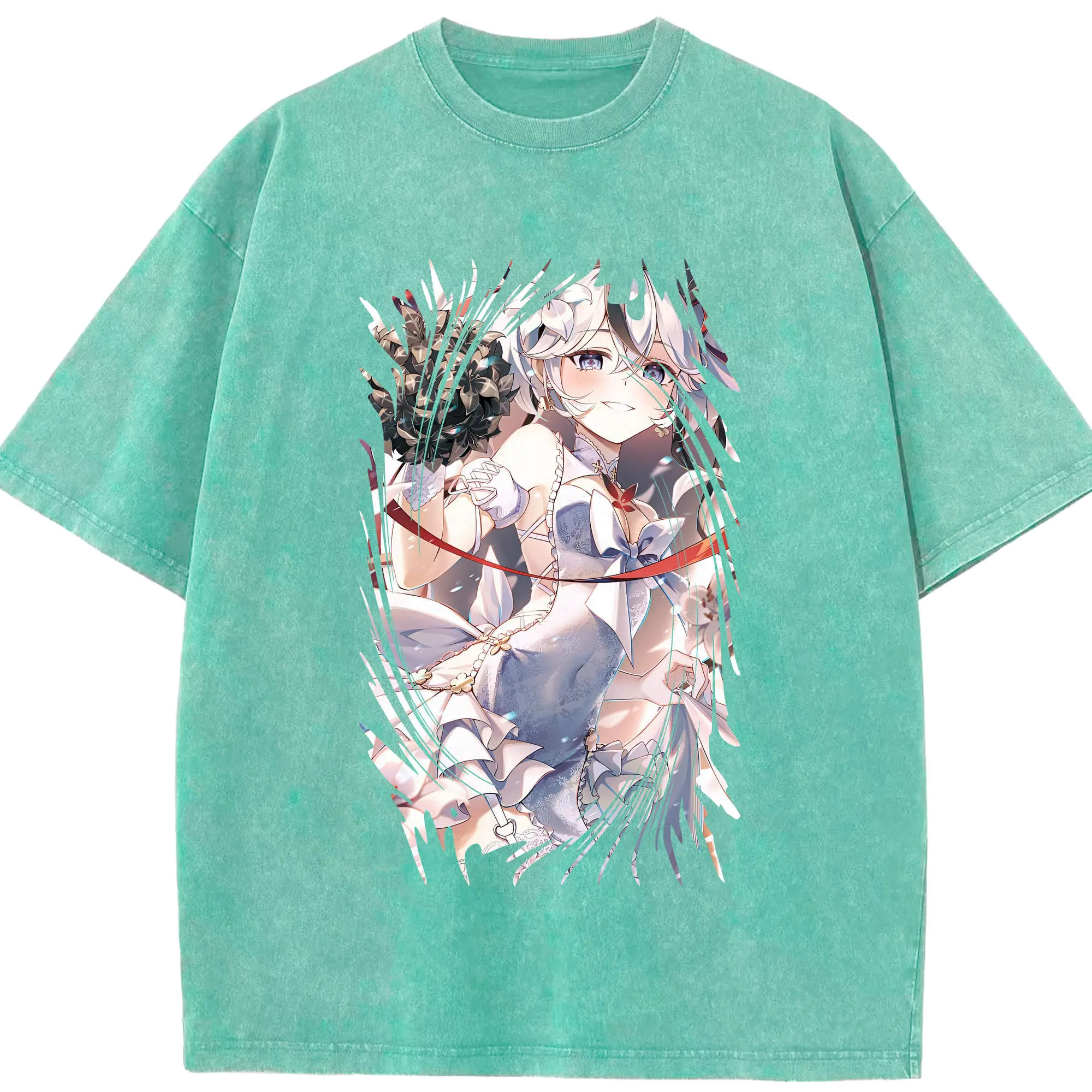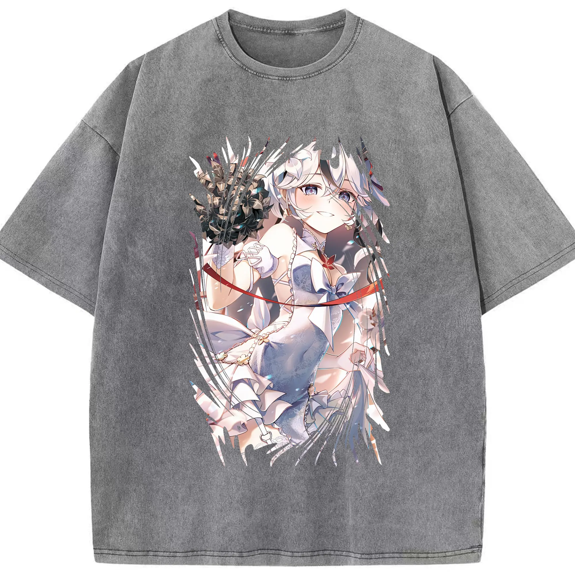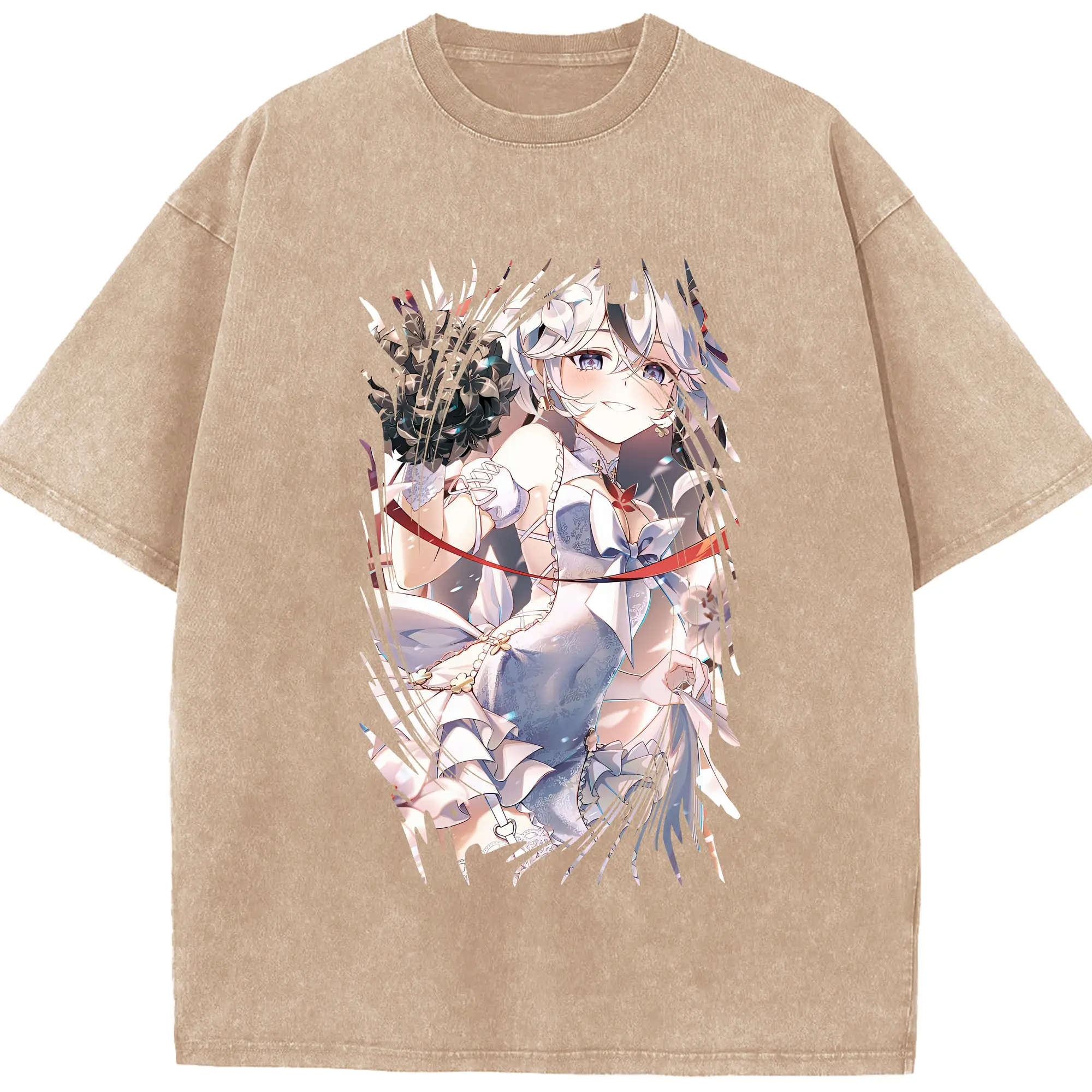 鳴潮 グッズ ツバキ - 綿100% ヴィンテージ風 半袖Tシャツ ・ 背面プリント ・ 柔らか肌触り ・ 通気性 快適 ・ スポーツ カジュアル 外出用